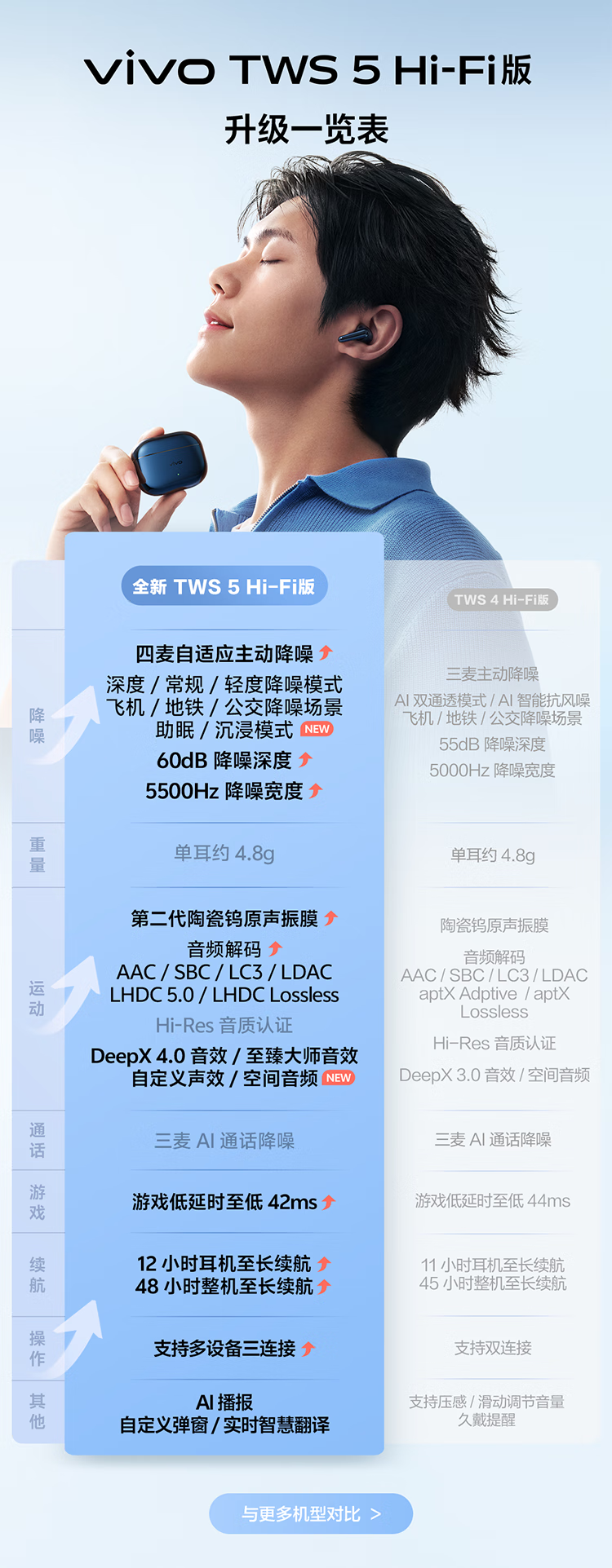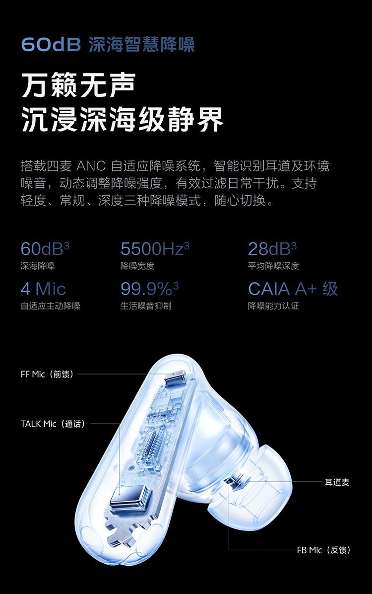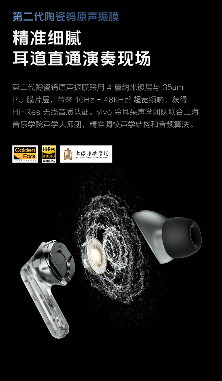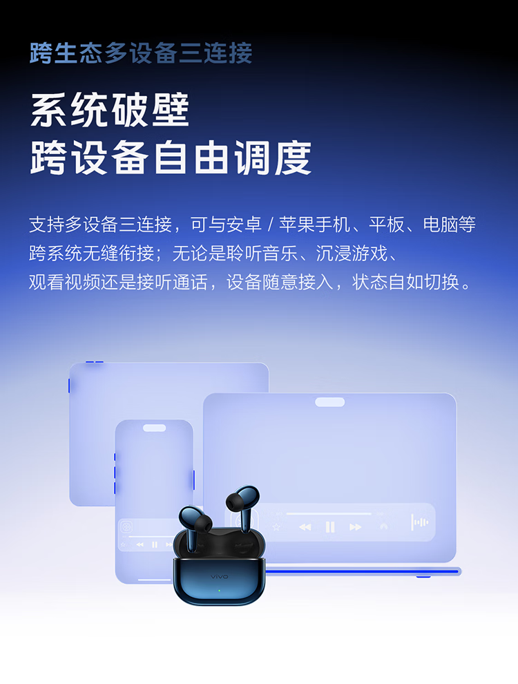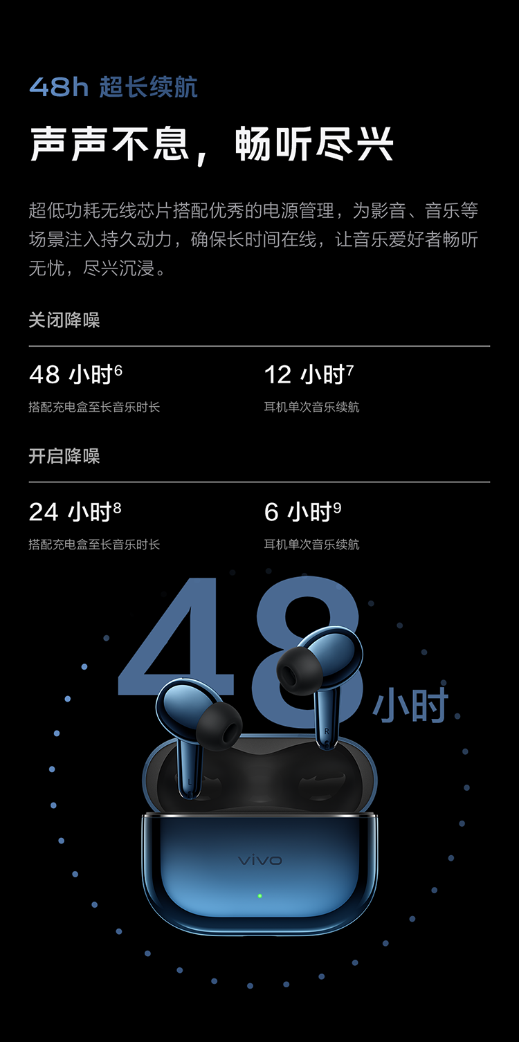 Vivo TWS 5 Hi-Fi Edition Deep Ocean Blue Full Link Ultimate Hi-Fi Master 60dB Deep Sea Smart Noise Reduction Cross-ecological Seamless Three Connections Bluetooth Headset