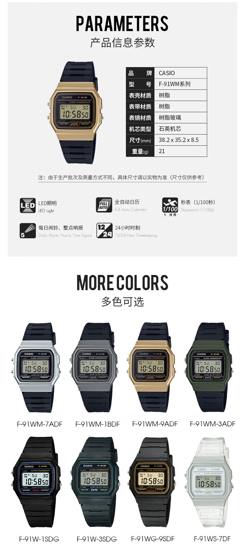 CASIO watch F-91W internet celebrity doing big things electronic watch male and female couple student sports small square F-91 watch genuine F-91WS-7DF