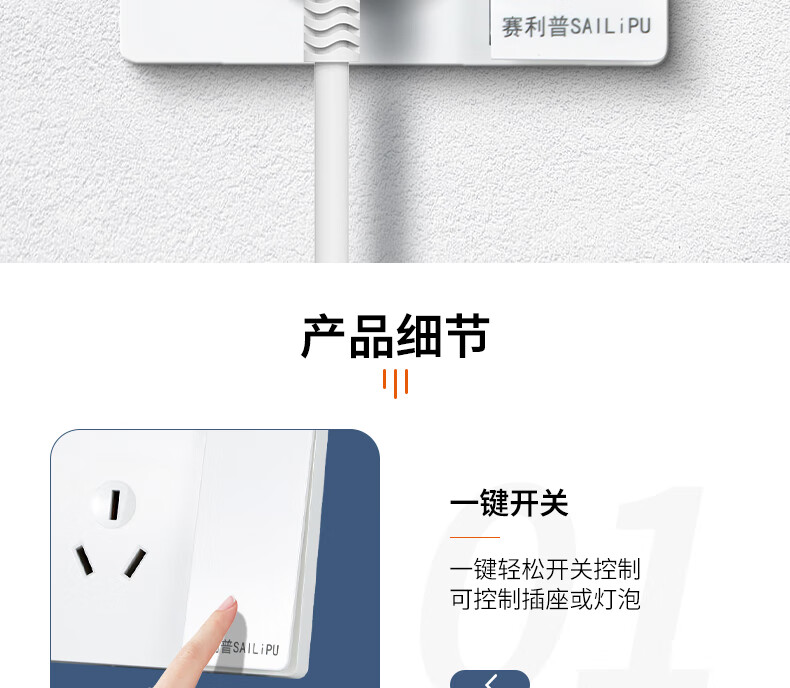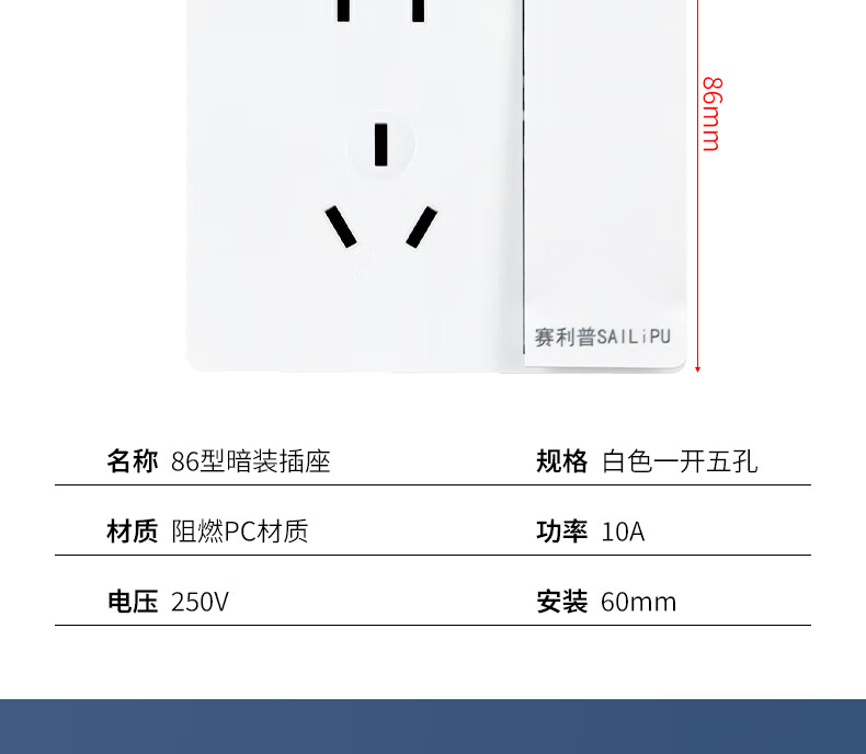 SAILiPU switch socket panel 86 type one open five-hole socket wall concealed multi-hole power supply panel two or three plugs one open single control five-hole socket 10A white
