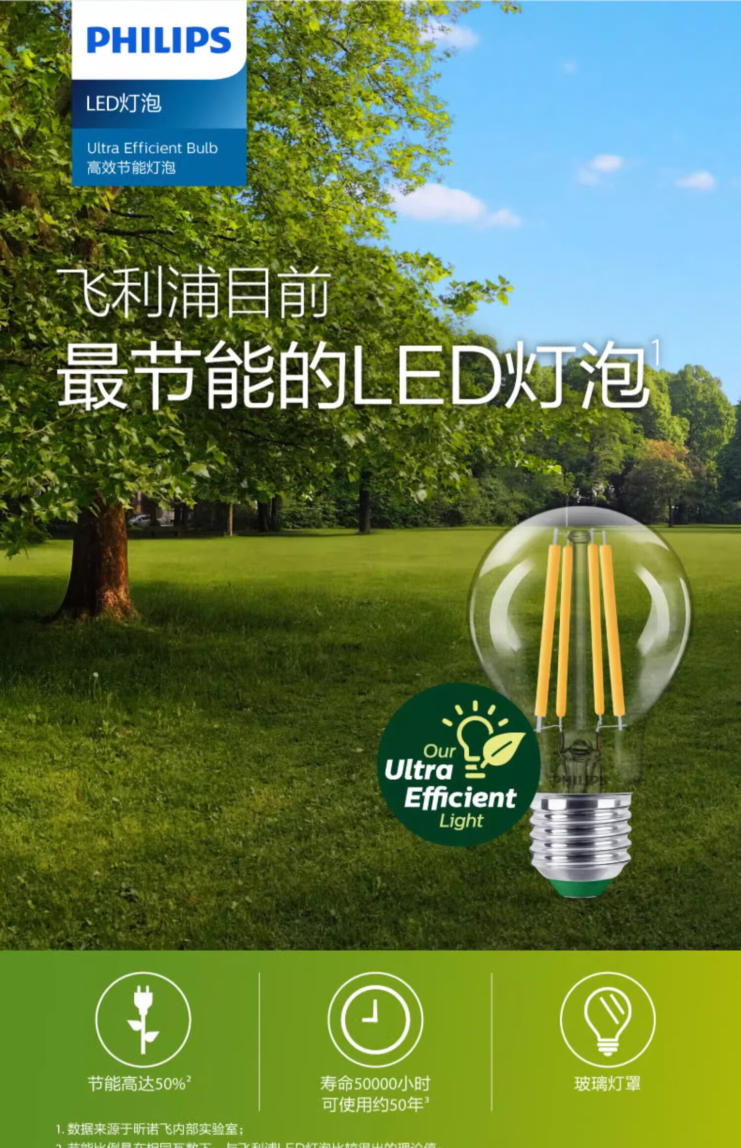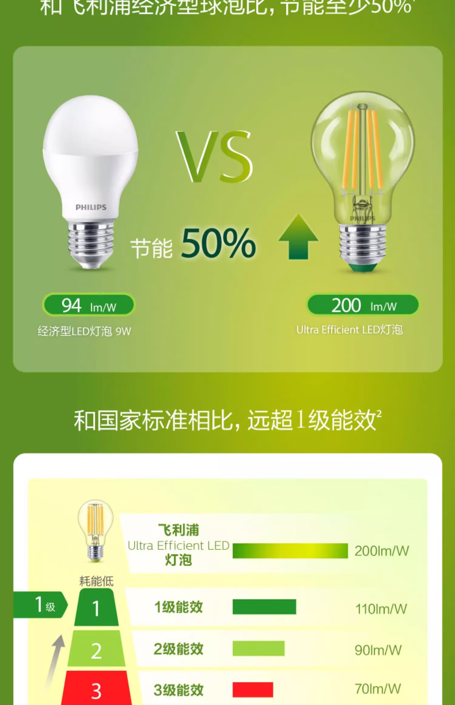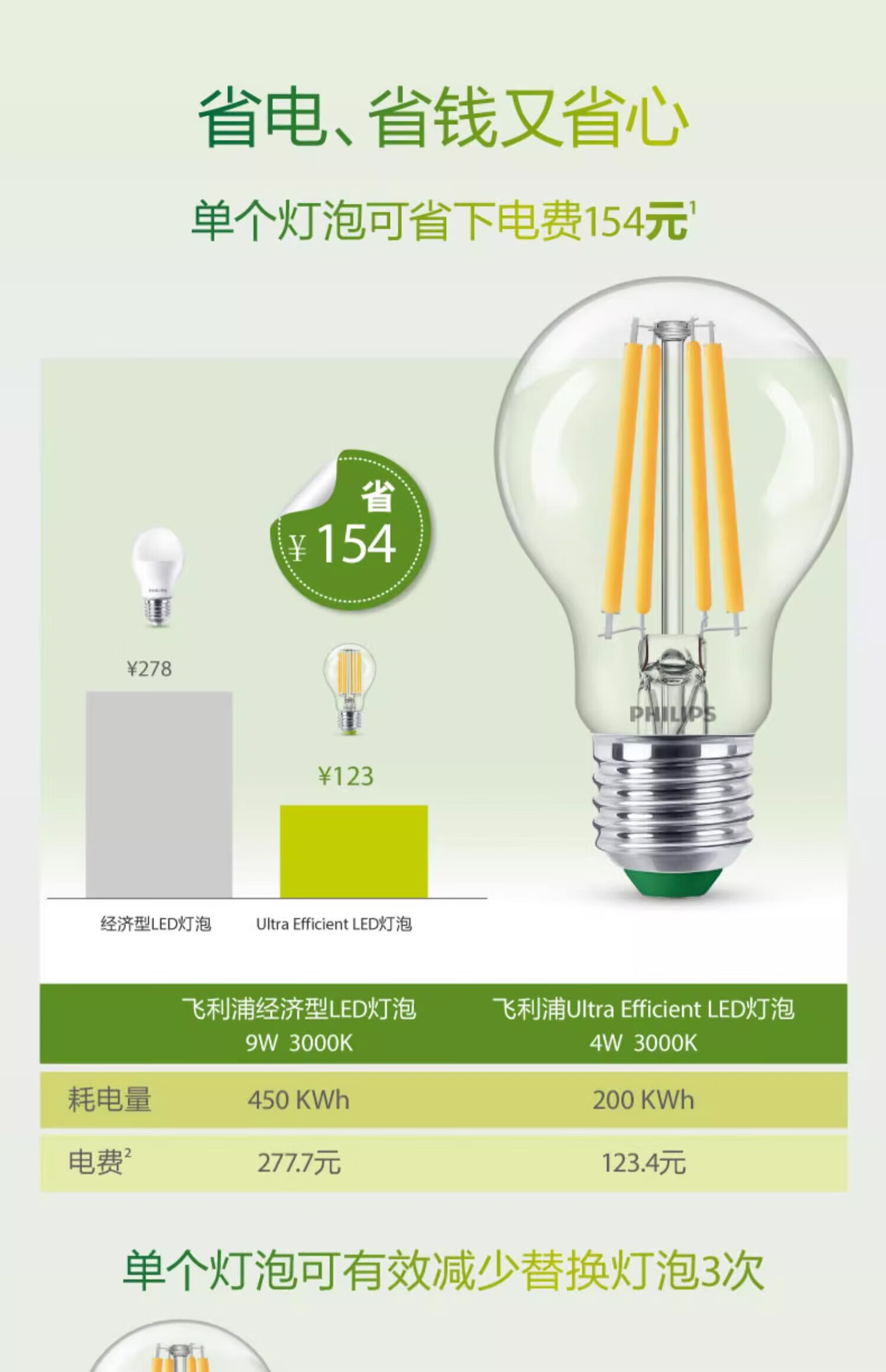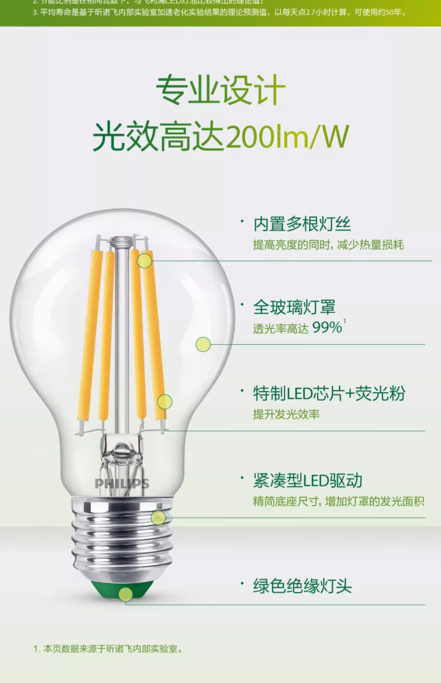 Philips (PHILIPS) high-efficiency energy-saving lamp led light bulb e27 screw household super bright chandelier screw mouth 2.5w4w bulb E27 7.5W warm white light
