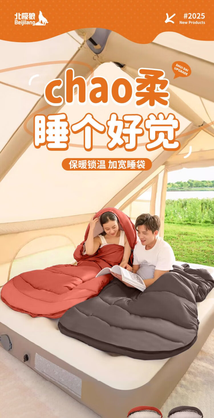 Arctic Wolf (BeiJiLang) sleeping bag outdoor autumn and winter thickened and widened warm sleeping bag tent camping office lunch break warm and cold-resistant quilt sleeping bag
