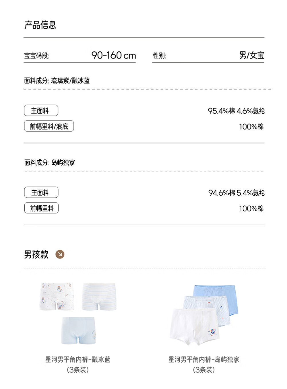 YEEHOO children's underwear, boxer briefs that do not pinch the buttocks, island exclusive (3 pack for boys) 130 cm
