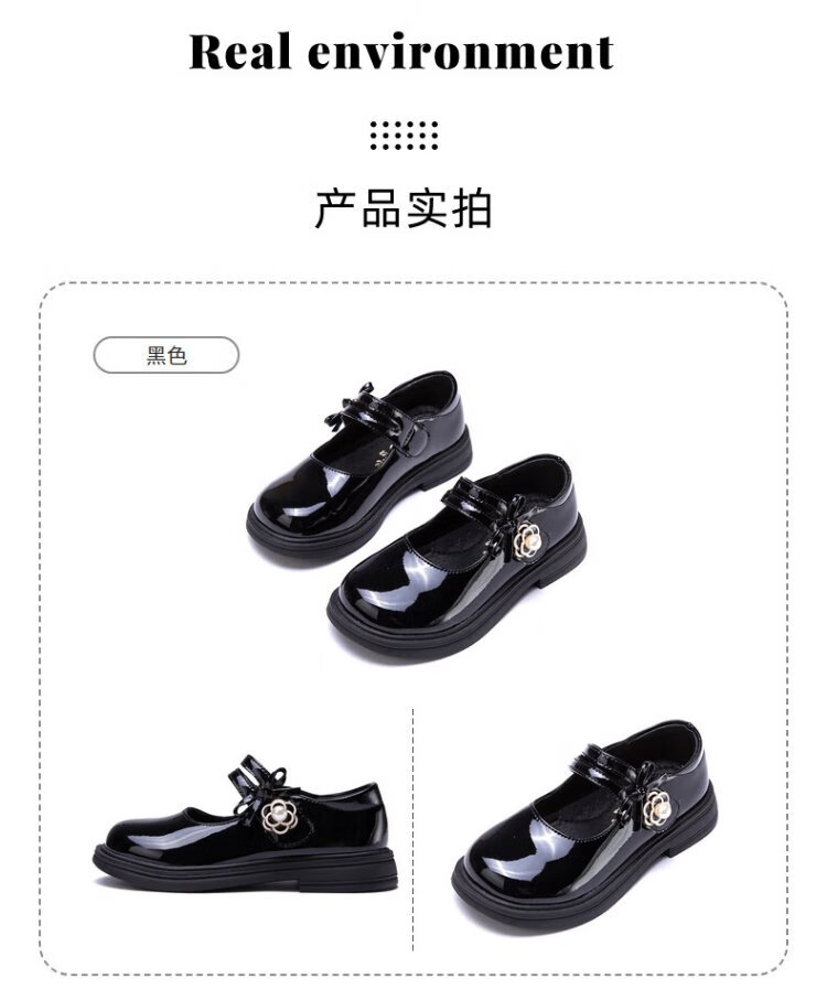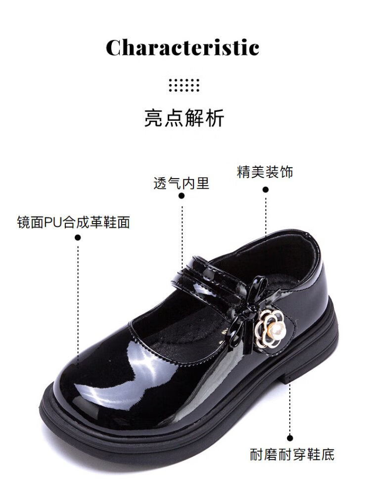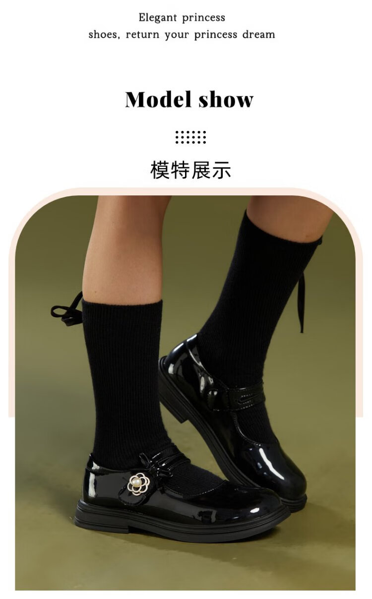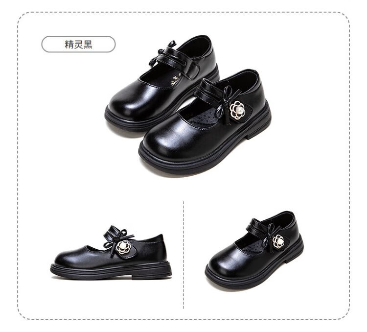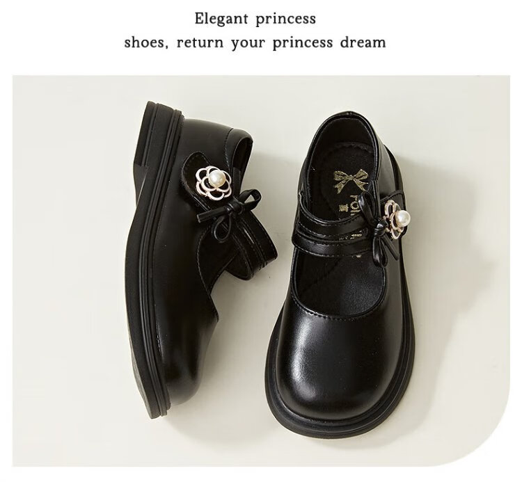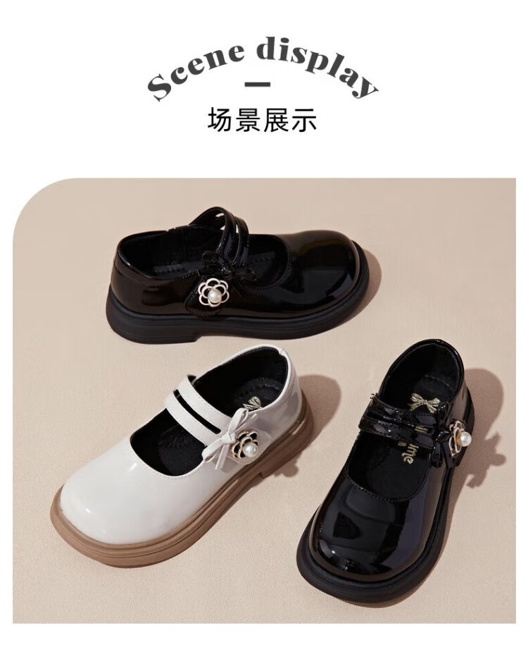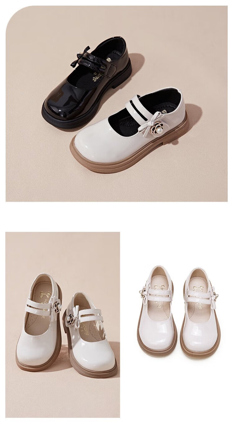 Fuluo Mi Girls' Leather Shoes Spring and Autumn Fashionable and Breathable Little Girls Princess Shoes Campus Performance Dress Shoes Off-White 35