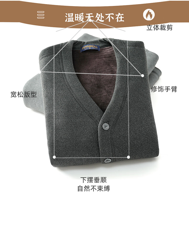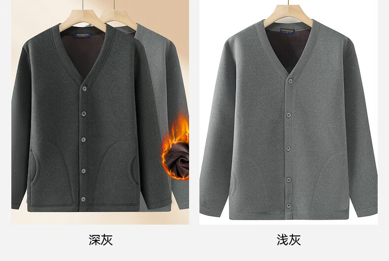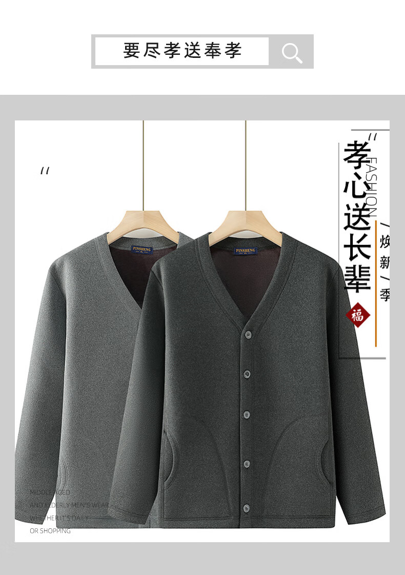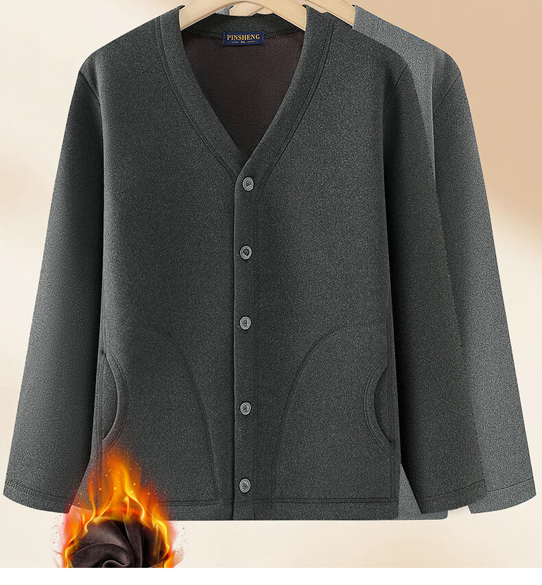 Fengxiao high-end middle-aged and elderly thermal underwear jacket men's tops three-layer quilted thickened large size cardigan stand collar