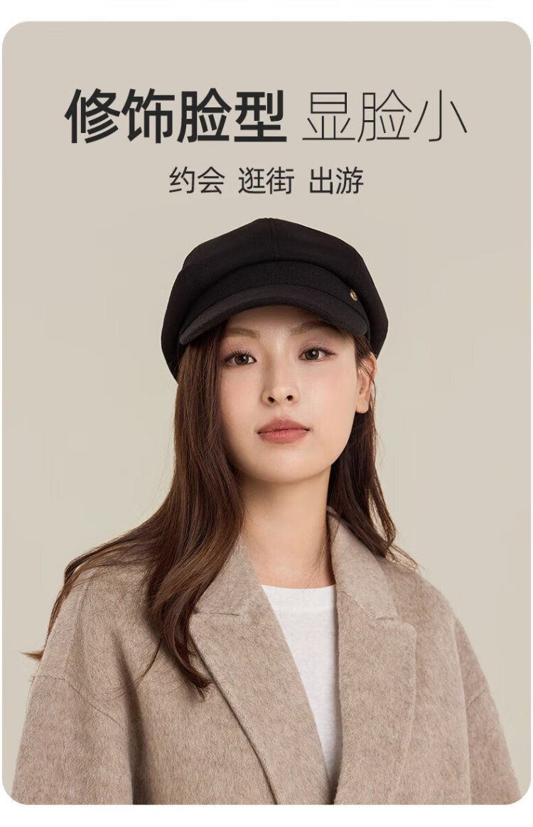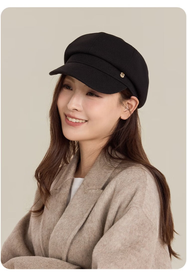 Yu Xiaoduo Hat Women's Autumn and Winter Imitation Wool Beret Korean Version Min Style Black One Size
