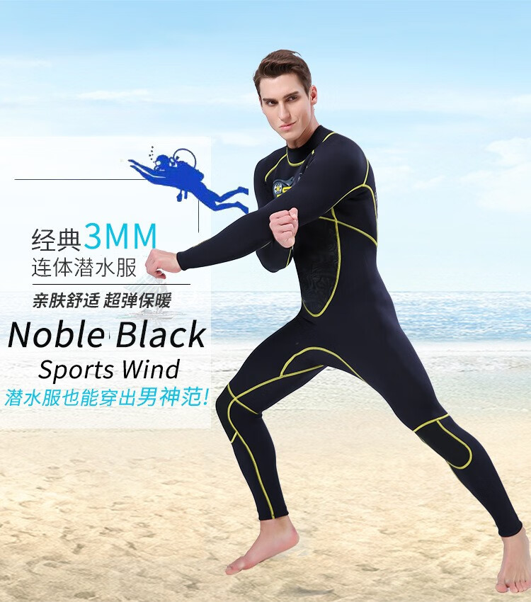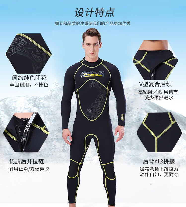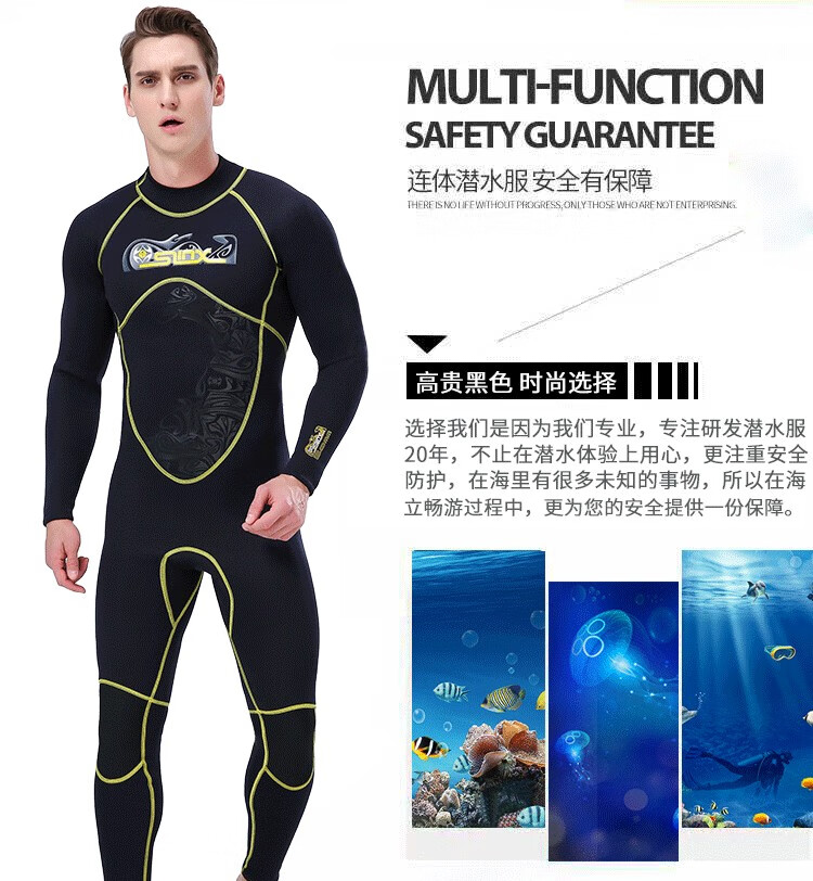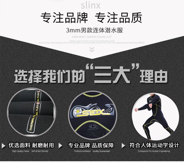 SLINX one-piece men's 3mm Serex warm and super elastic wear-resistant wet suit wetsuit surfing suit jellyfish suit swimsuit black S