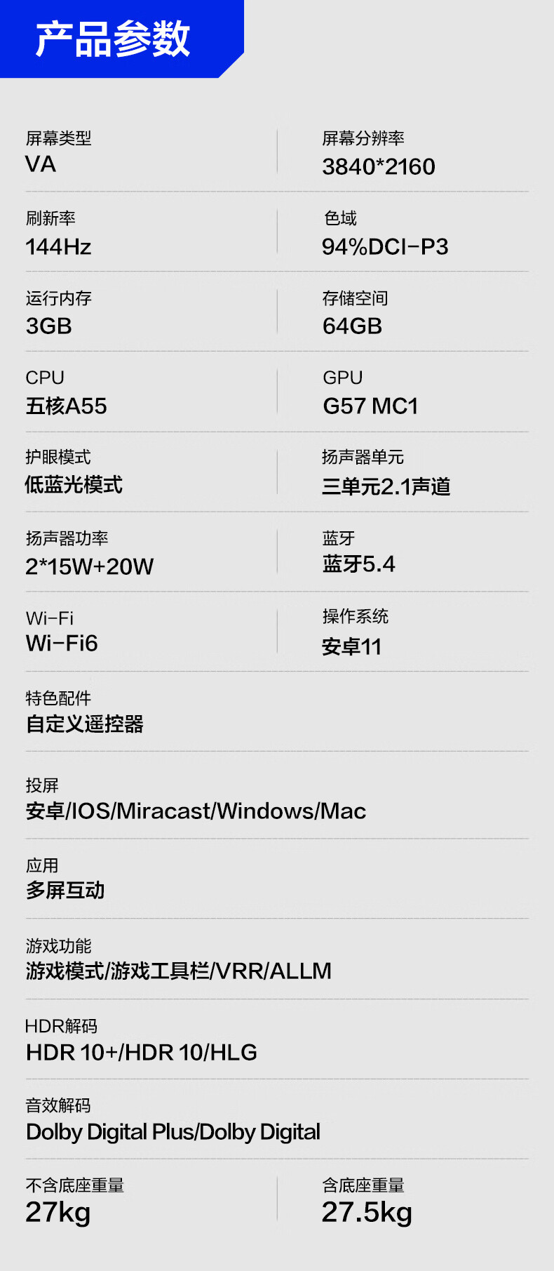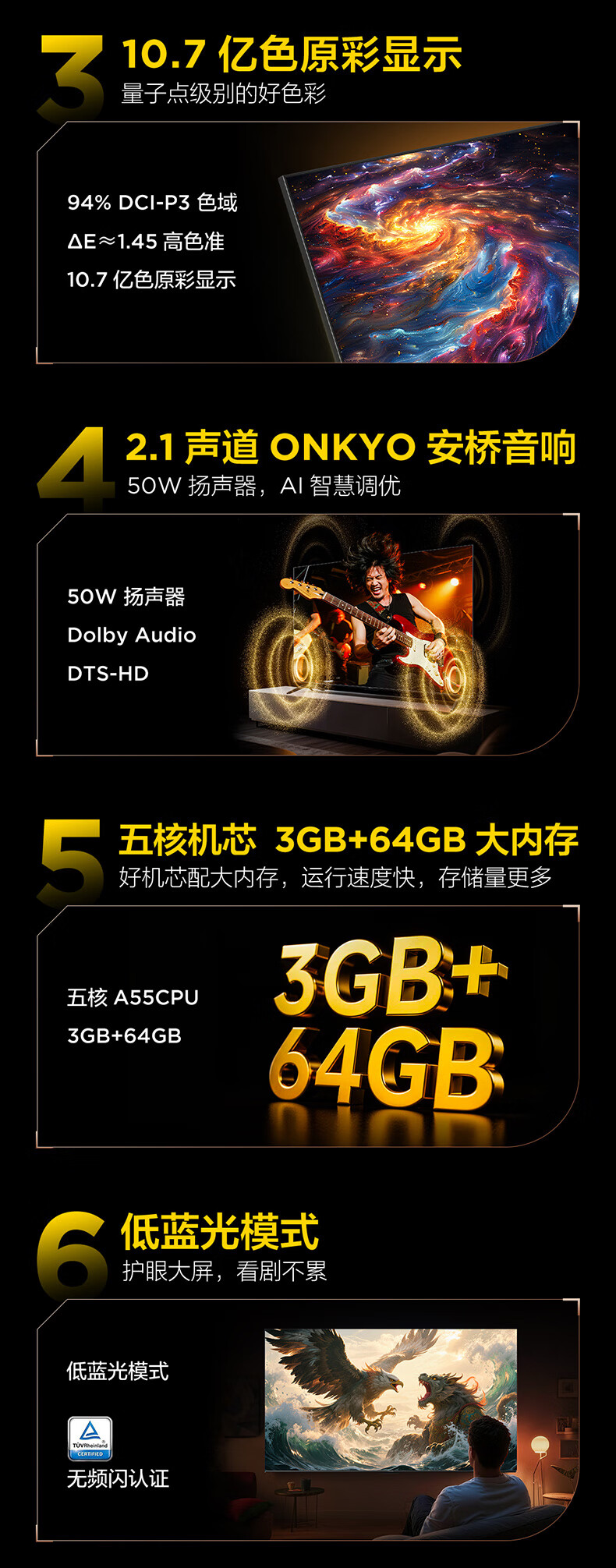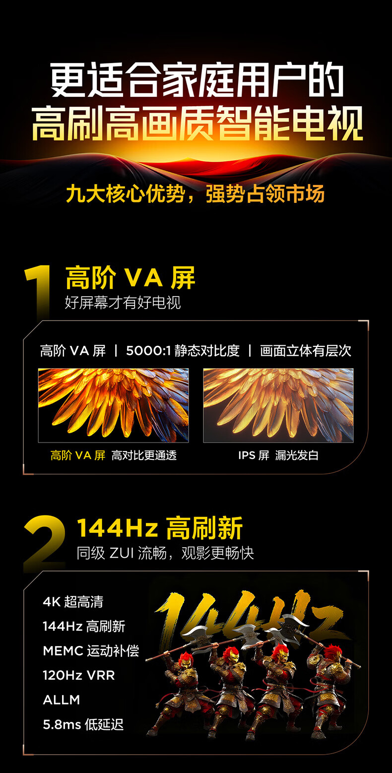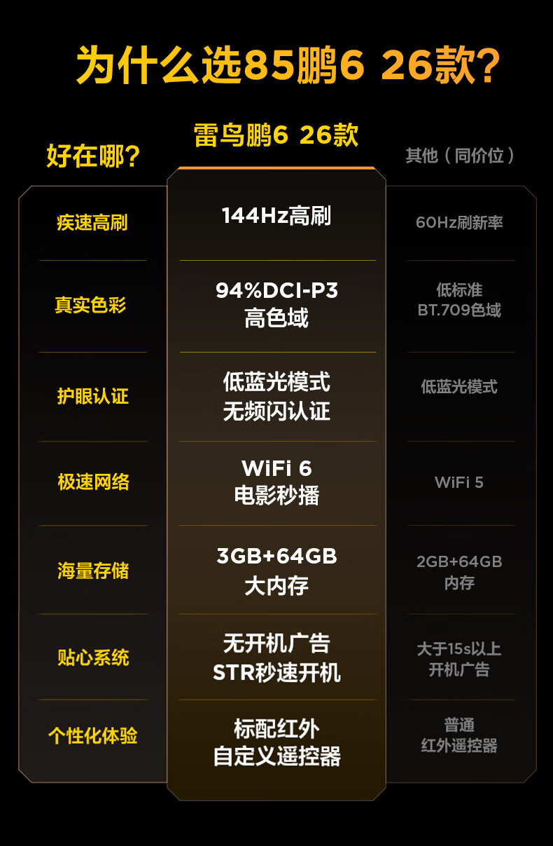 TCL Thunderbird TV Peng 6 26 Modelle 85-Zoll-MEMC-Bewegungskompensation 3+64 GB Speicher 144 Hz hoher Pinsel 94 % DCI-P3-Farbraum-Flachbildfernseher 85S68A
