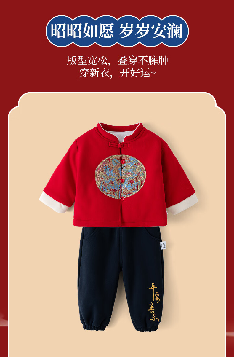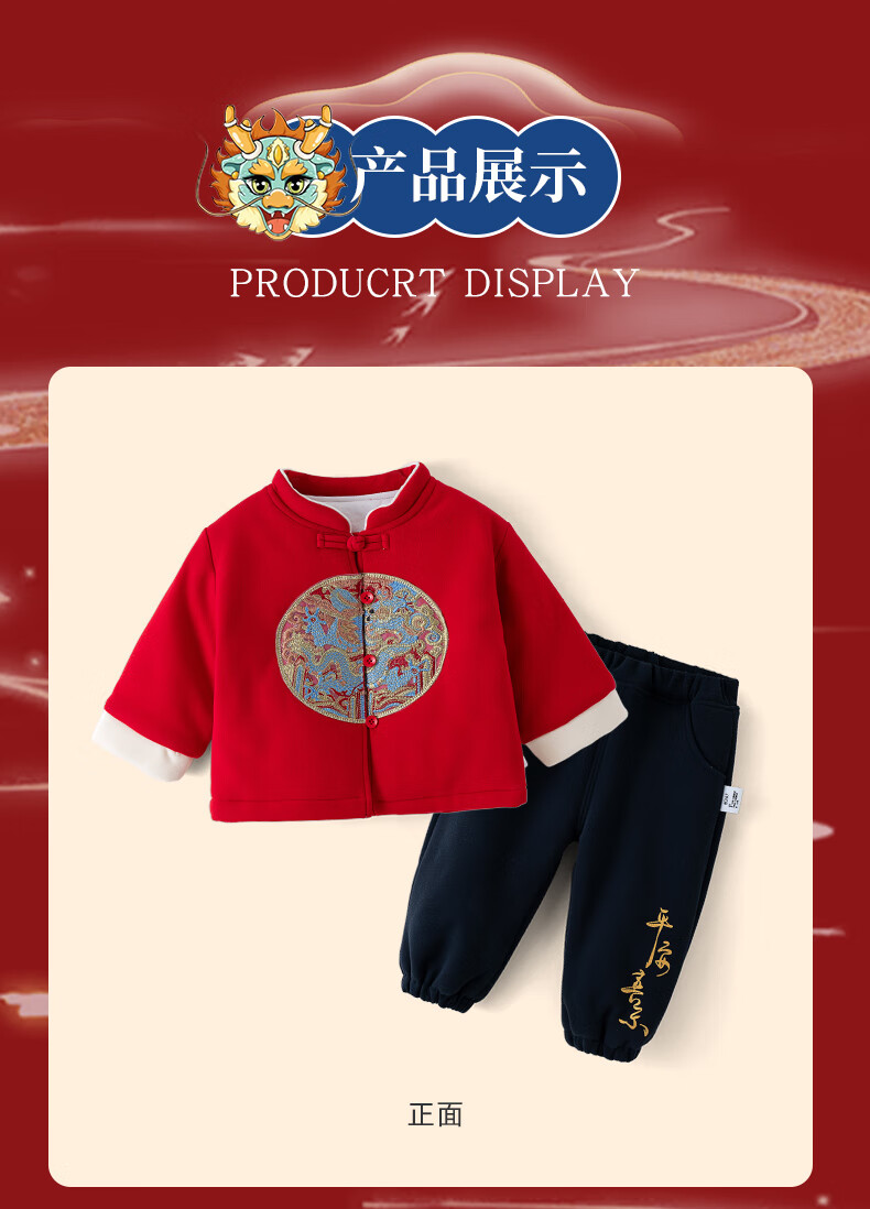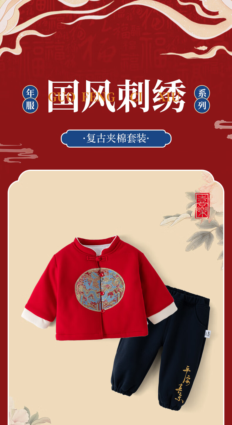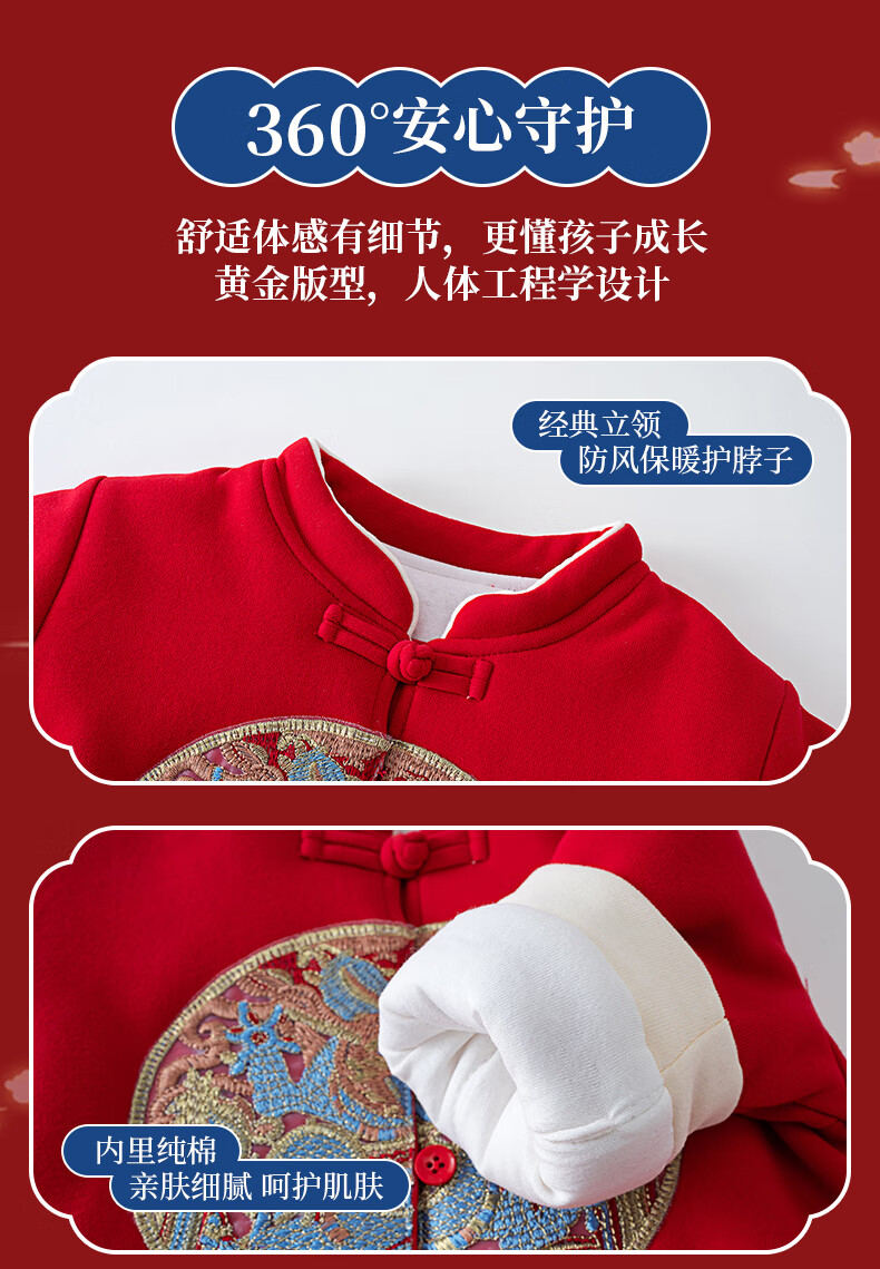 Shu Beiyi baby clothes New Year boys suit red Chinese style little master quilted thickened one year old baby autumn and winter 90