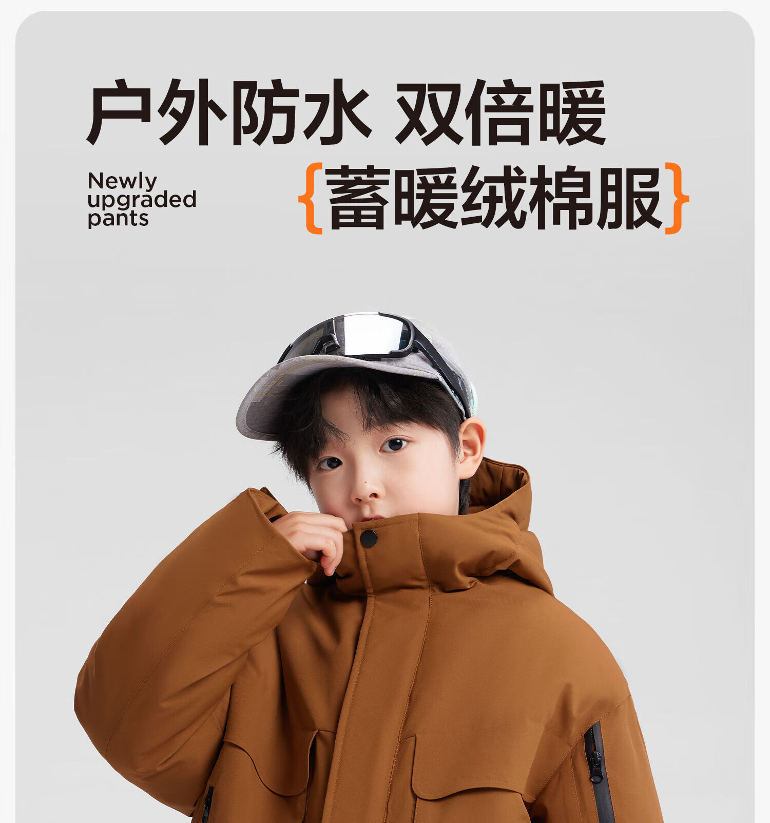 Zuoxi Children's Clothing Boys' Charge Cotton Jacket 2025 New Jacket Children's Velvet Thickened Boy's Top Orange 150