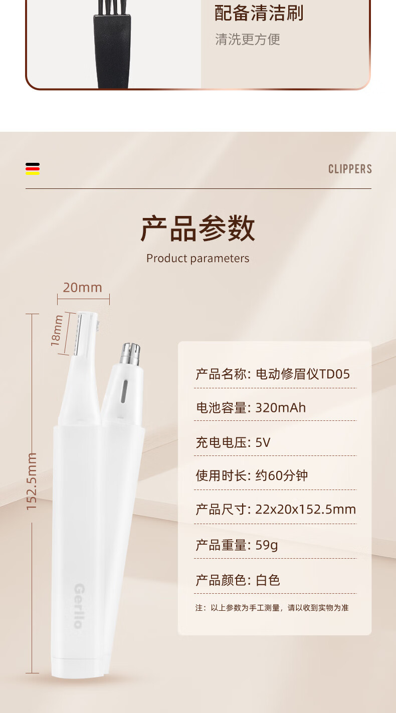 Gerllo电动洗脸仪洁面仪洗脸神器 软毛硅胶深层清洁 AM201+电动无线便携修眉刀眉毛鼻毛双刀头两用 TD05