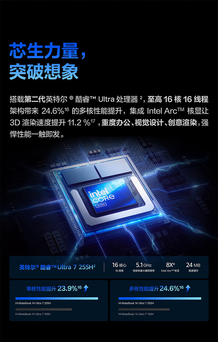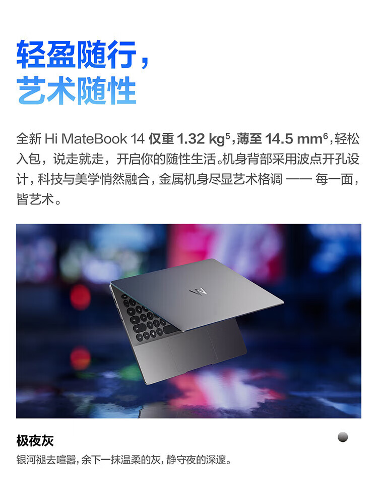 WIKO Hi MateBook 14 Core Ultra 2 Huawei Smart Selection Thin and Light Laptop Second Generation Core Ultra 5 16G 1T Extreme Night Gray Square Keyboard