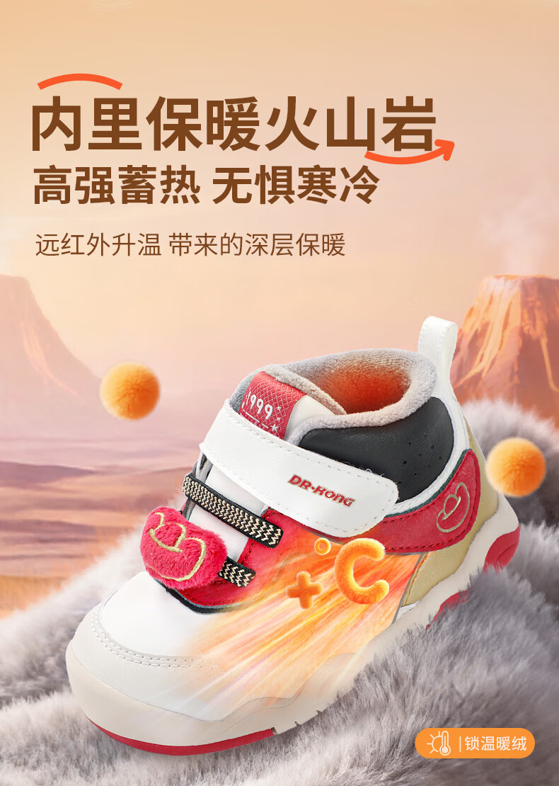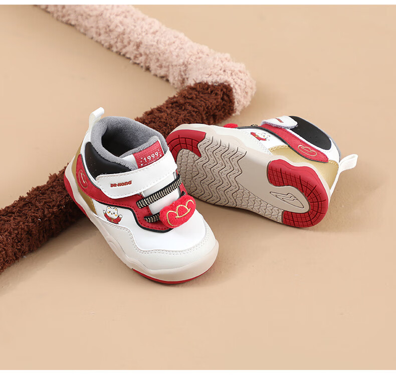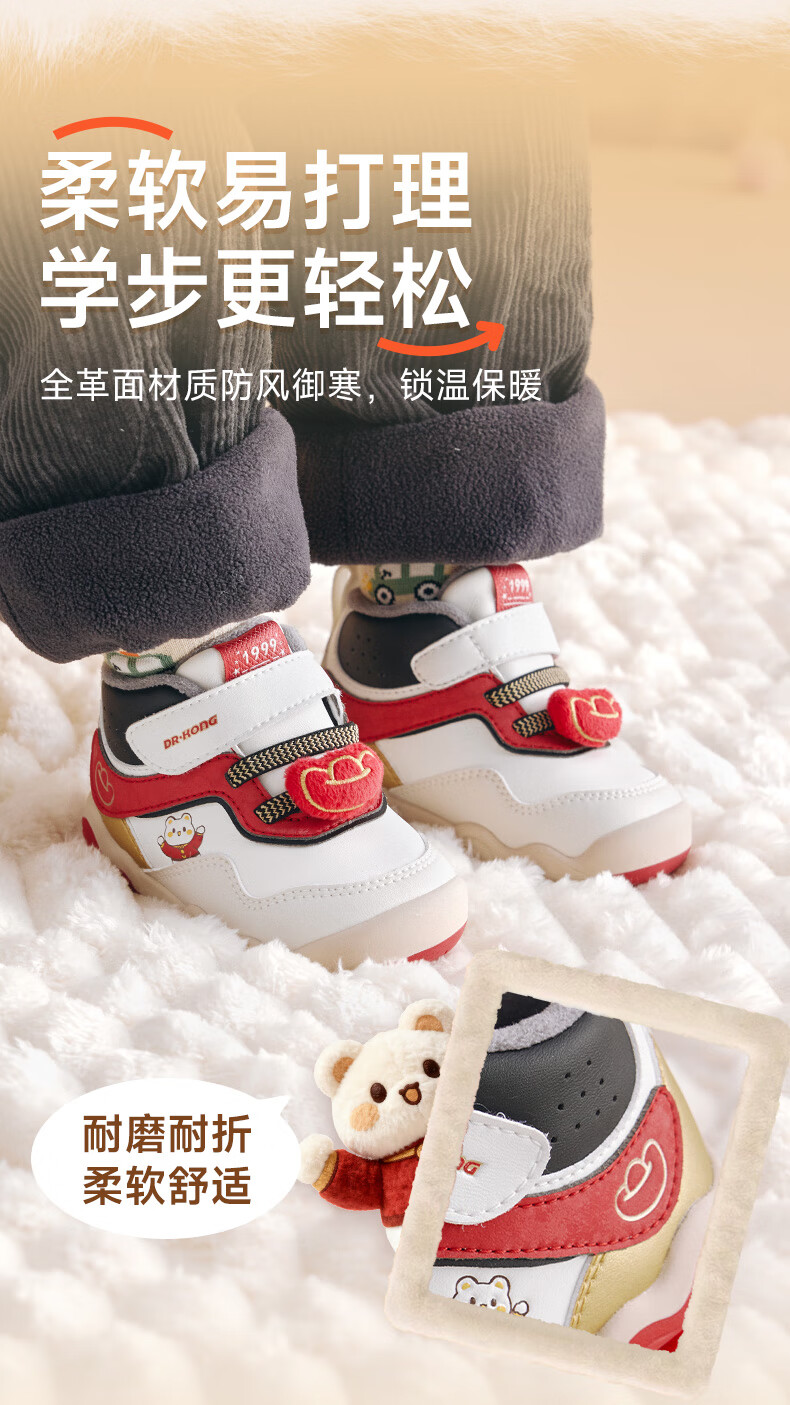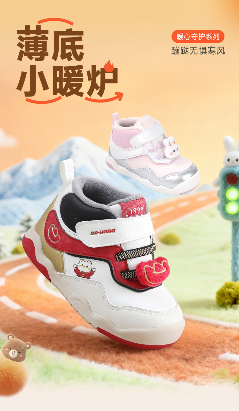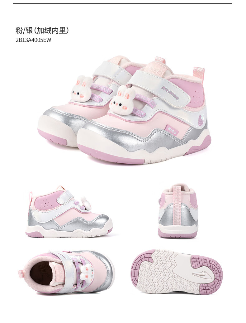 DR KONG Dr. Jiang's winter baby shoes for boys and girls plus velvet, comfortable and warm toddler shoes, pink/silver 22