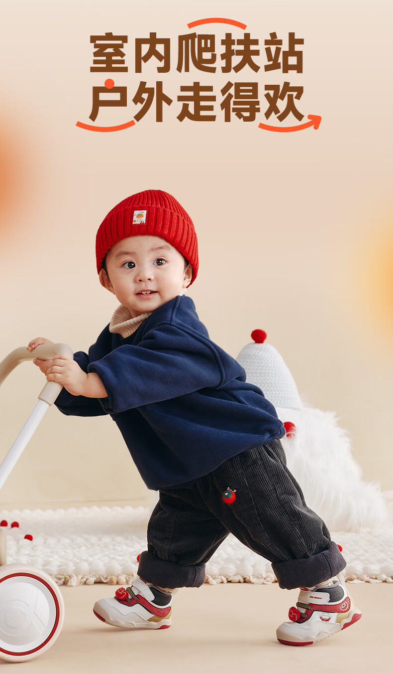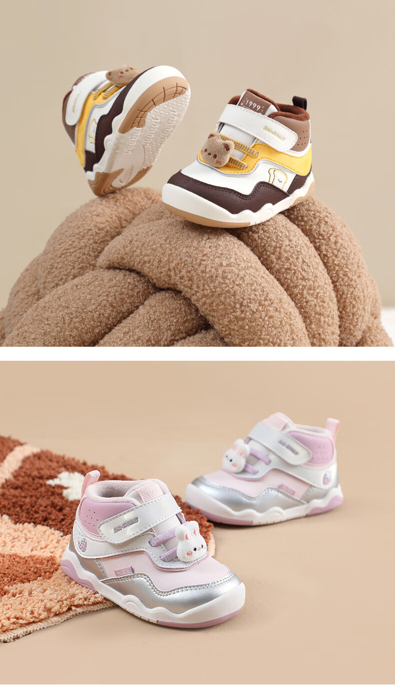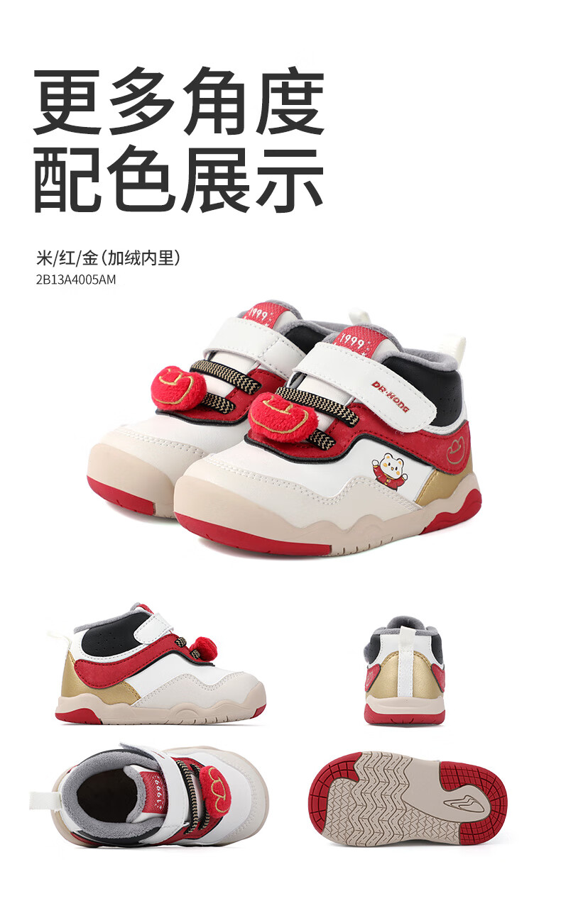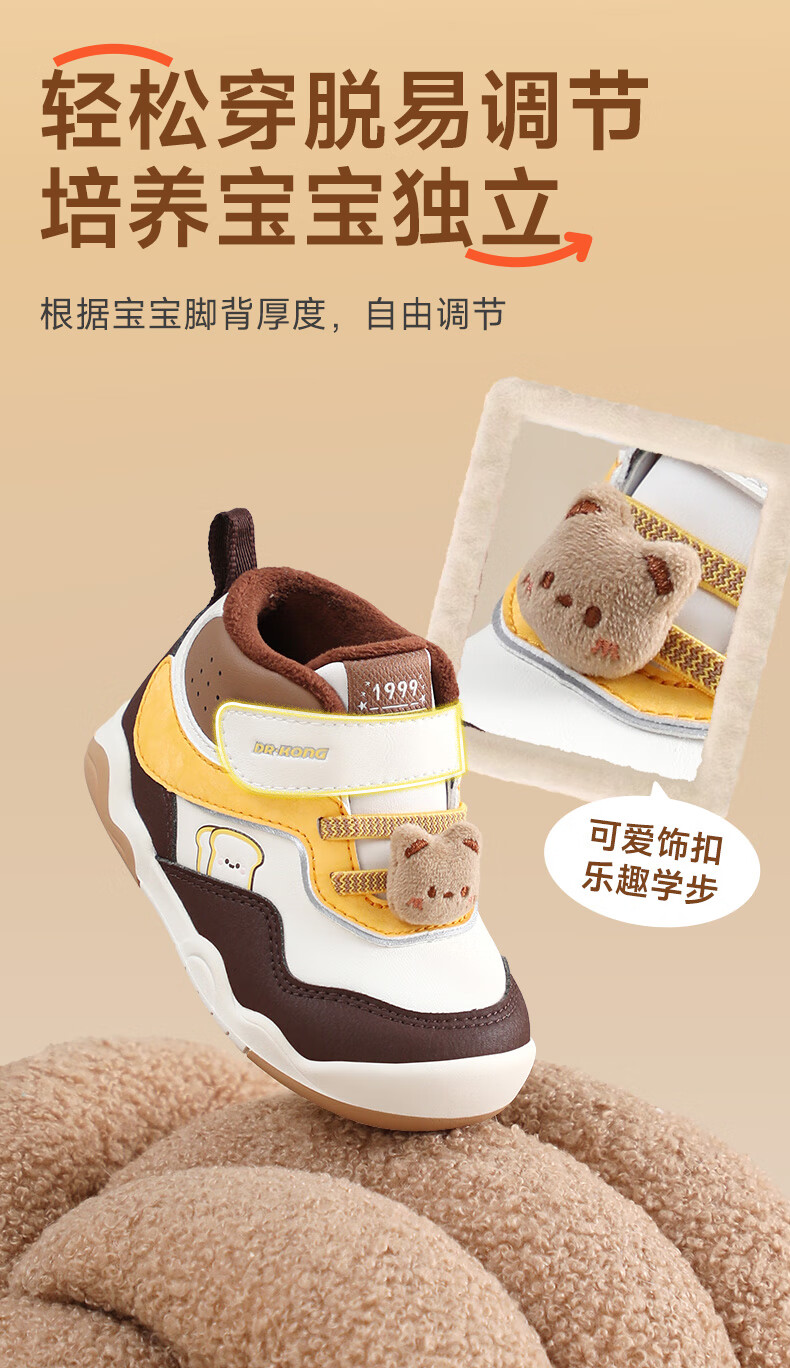 DR KONG Dr. Jiang's winter baby shoes for boys and girls plus velvet, comfortable and warm toddler shoes, pink/silver 22