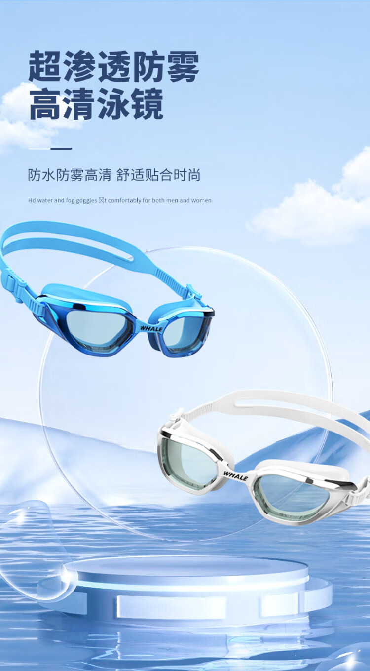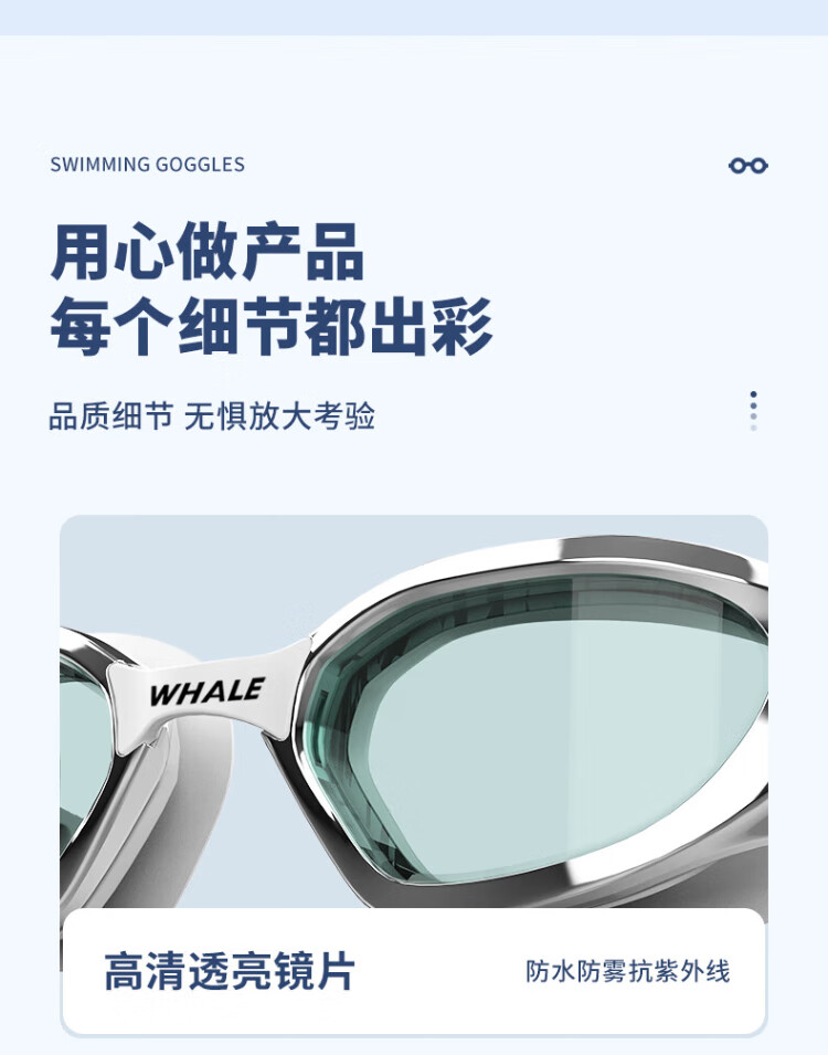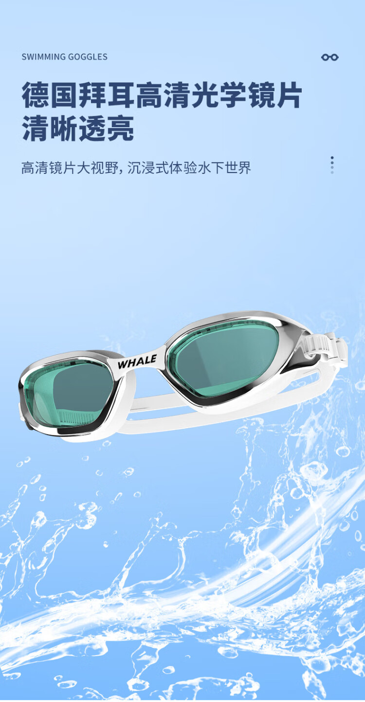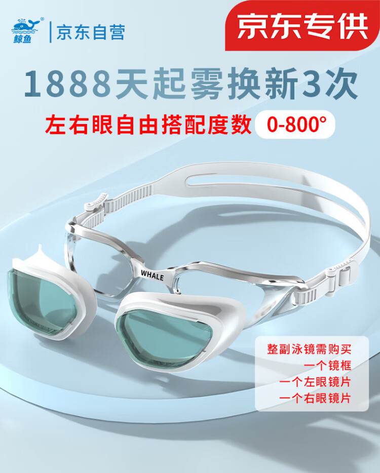 Whale detachable lens myopia anti-fog swimming goggles can be freely matched with different degrees of myopia on the left and right. Exclusively available on JD.com