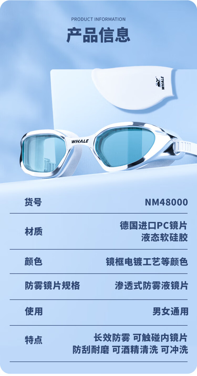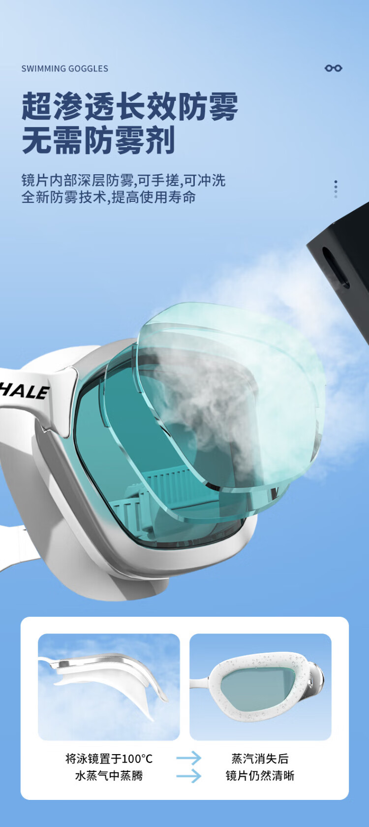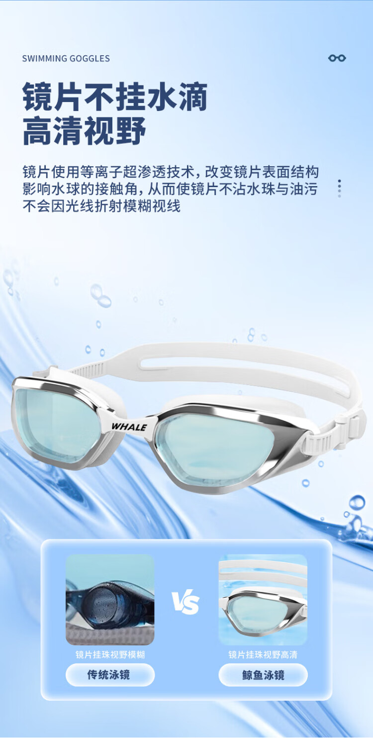 Whale detachable lens myopia anti-fog swimming goggles can be freely matched with different degrees of myopia on the left and right. Exclusively available on JD.com