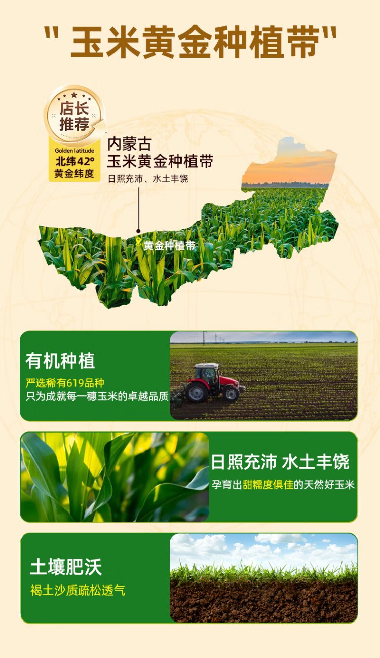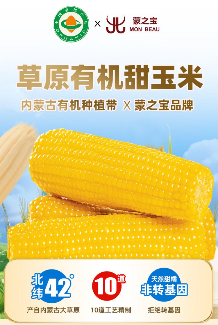 Jingxiansheng & Mengzhibao MON BEAU Inner Mongolia organic sweet waxy corn 200g+-10g x8 sticks 1.6kg straight from the source