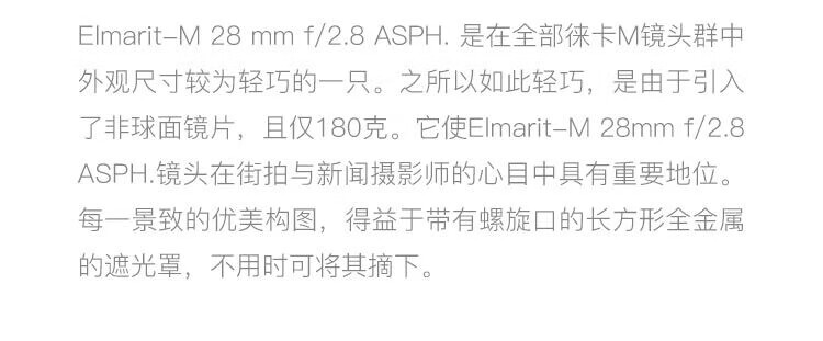 Leica Elmarit-M 28mm F2.8 ASPH SLR lens M28 2.8 black 11677#