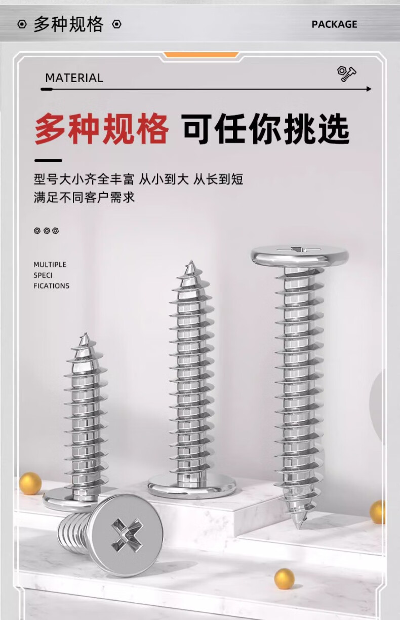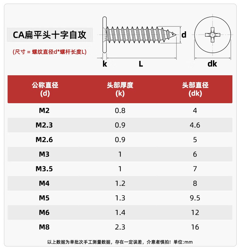 Fengji 304 stainless steel CA flat head self-tapping screws large thin head flat head pointed tail sinking cross MM2M3M4M5M6 M4*14 head diameter 8 50 pcs
