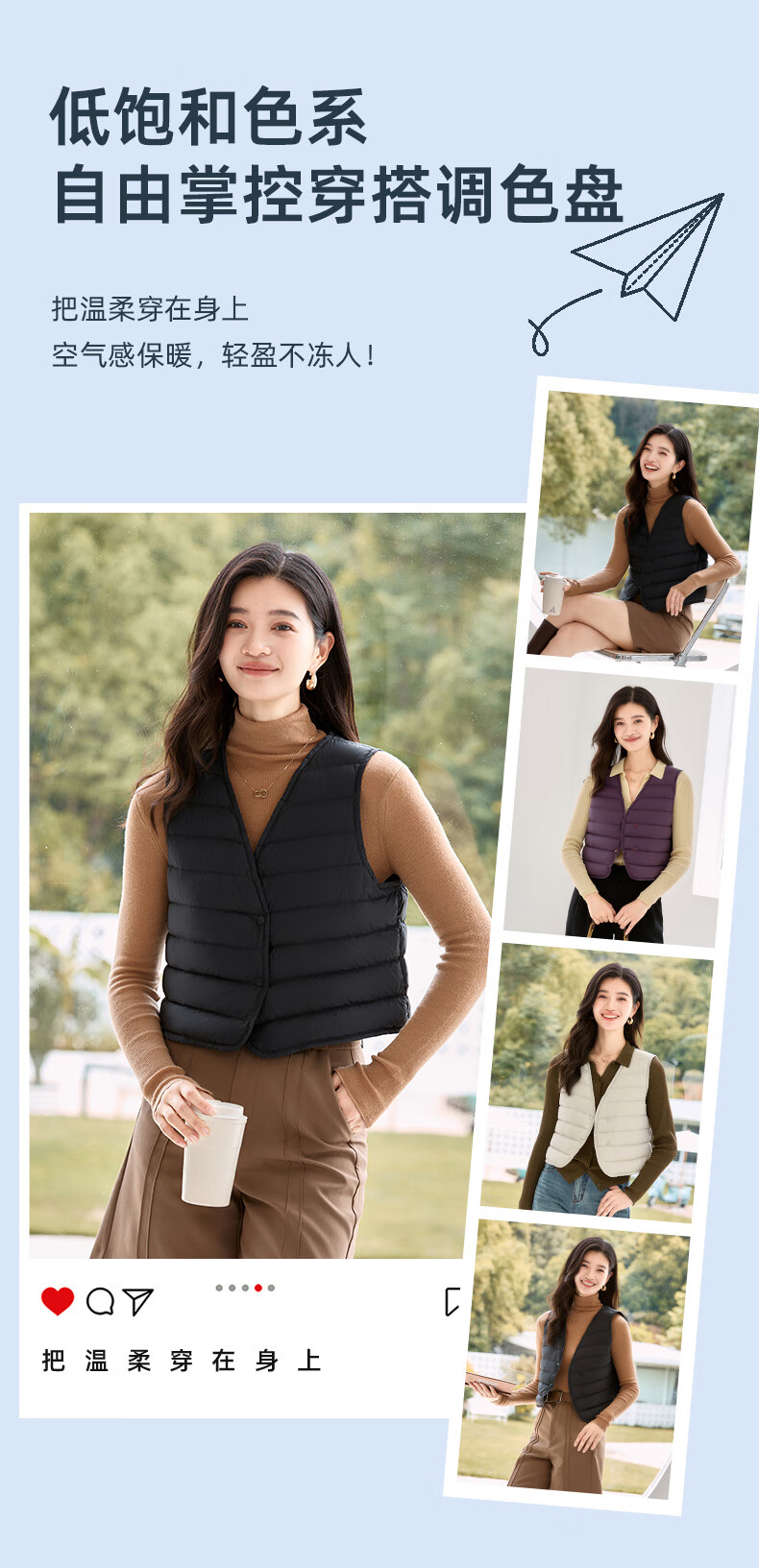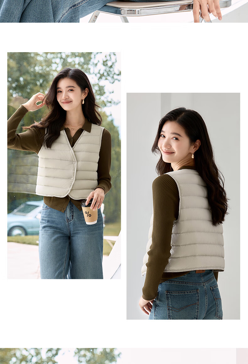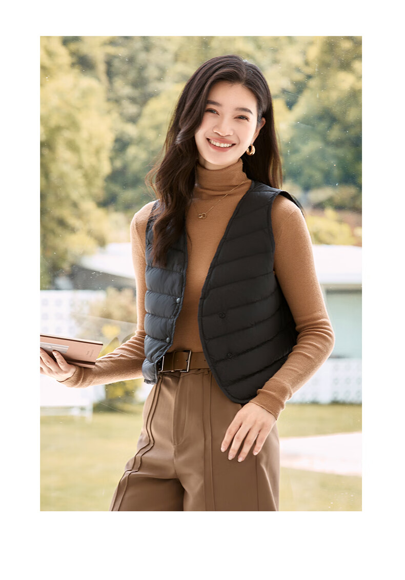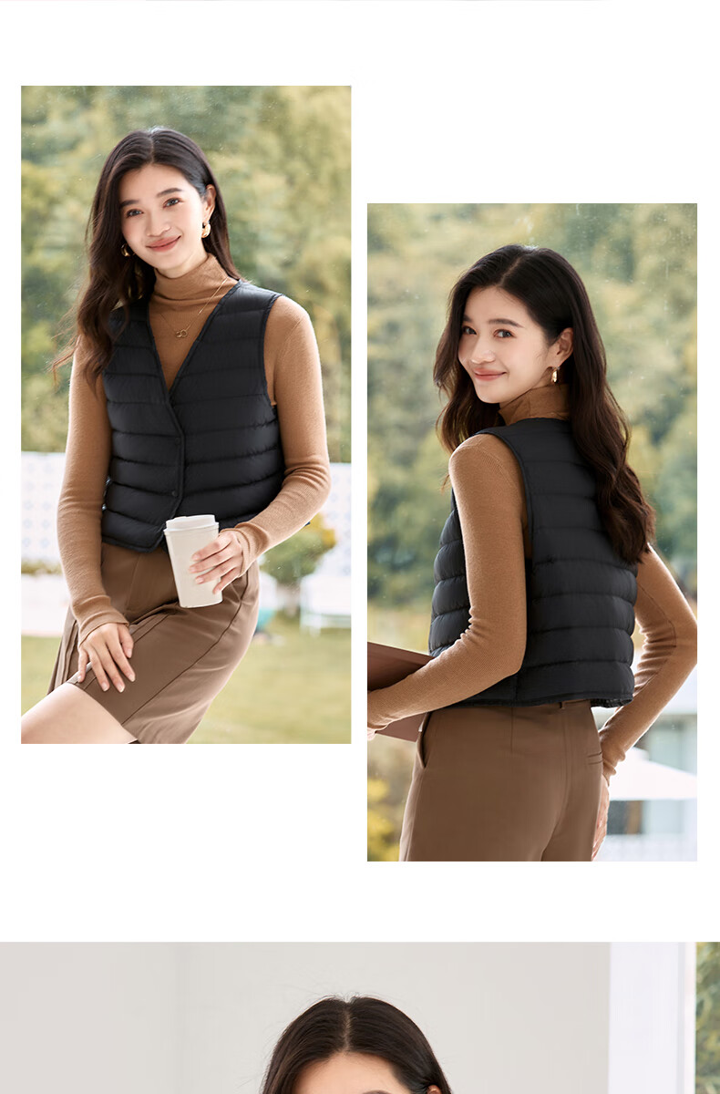 Yalu Down Vest Liner 2025 Autumn and Winter New Thin, Warm and Fashionable V-neck Silhouette Slim Women's Vest