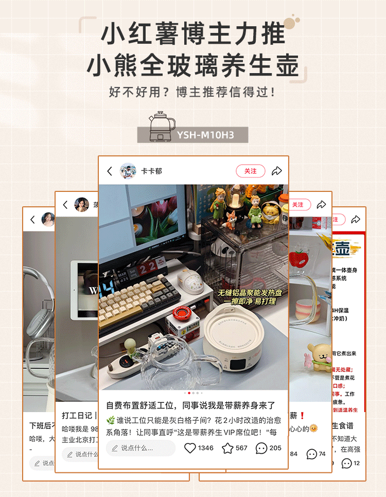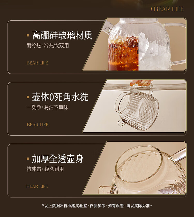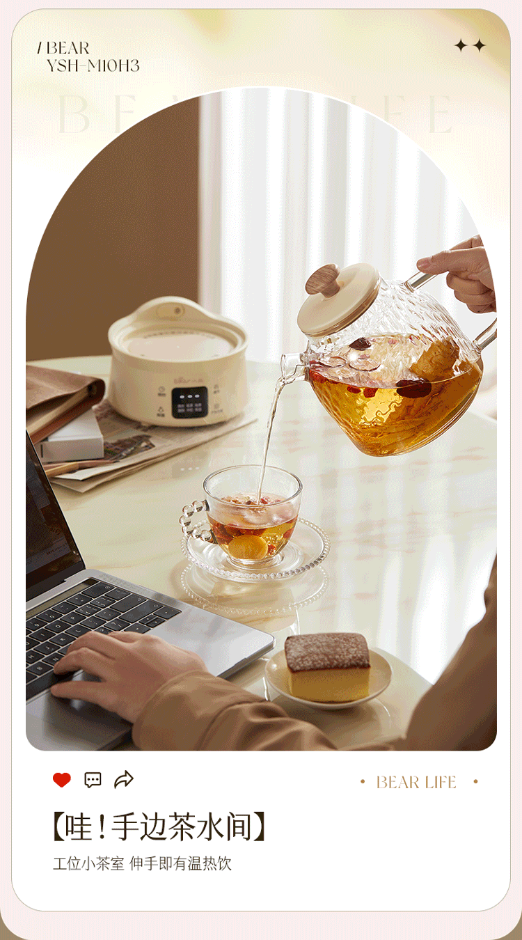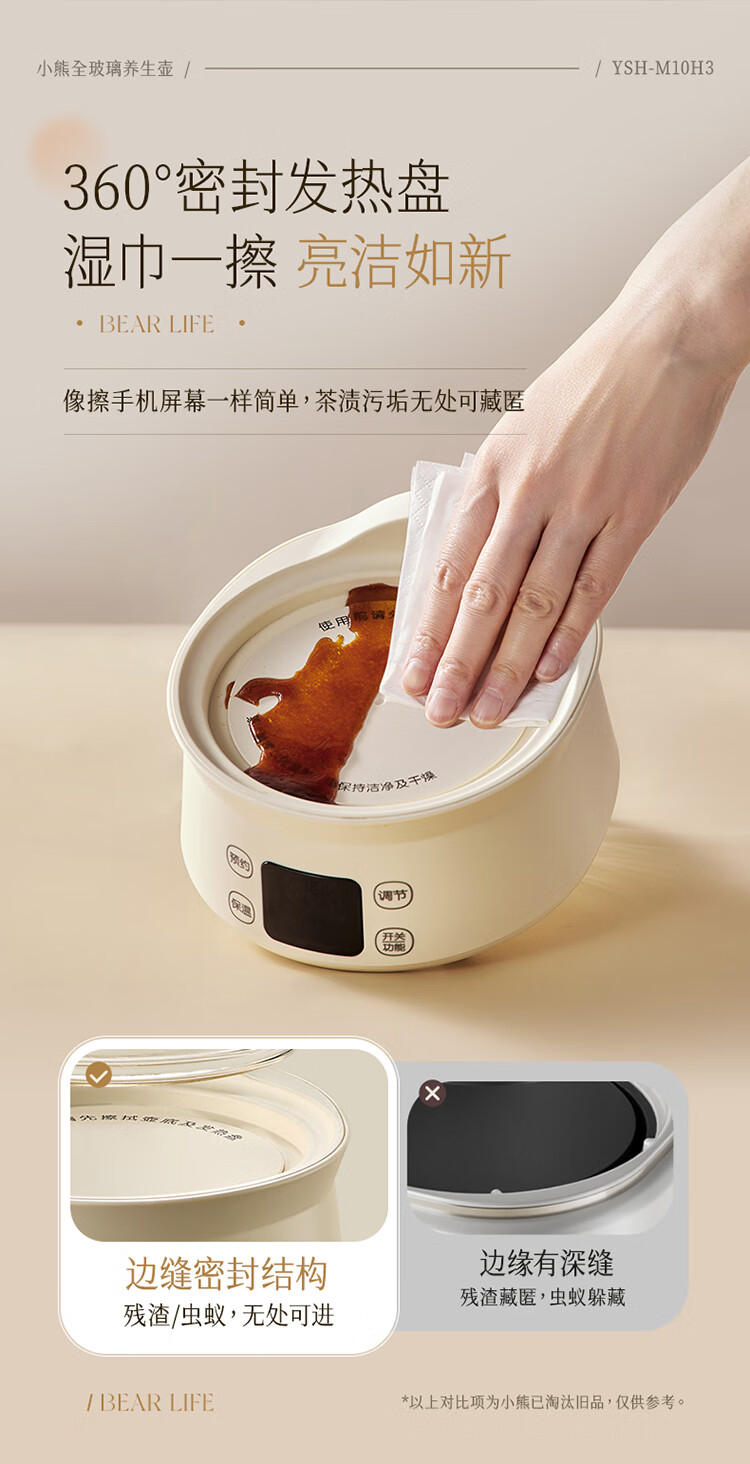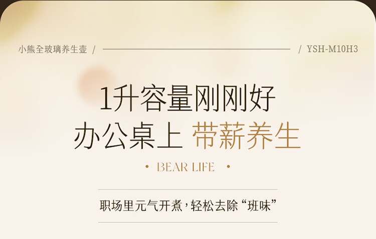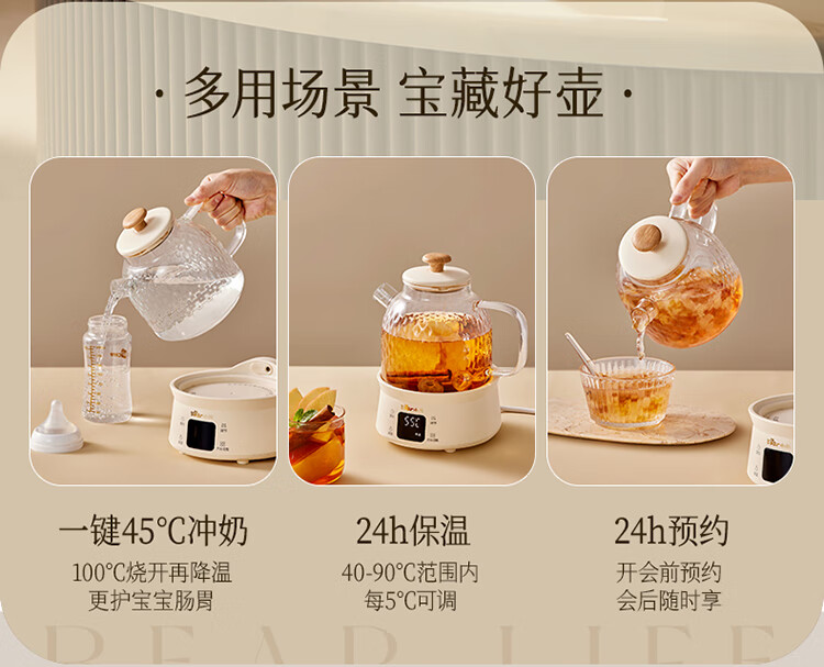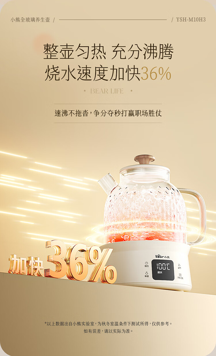 Bear all-glass body health pot thermostatic kettle office multifunctional teapot flower teapot 0 metal health cup 24h reservation 24h heat preservation 1L YSH-M10H3