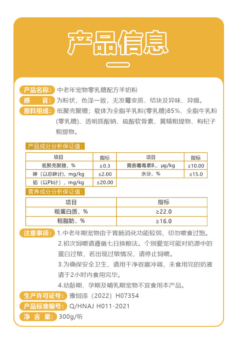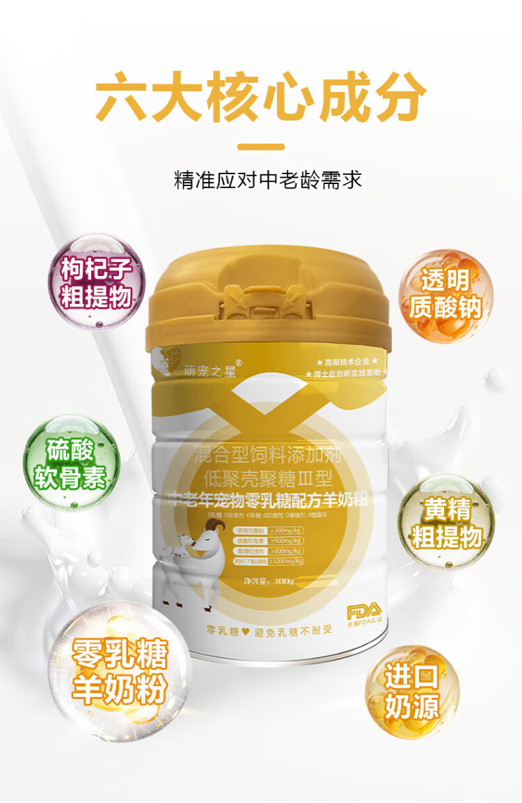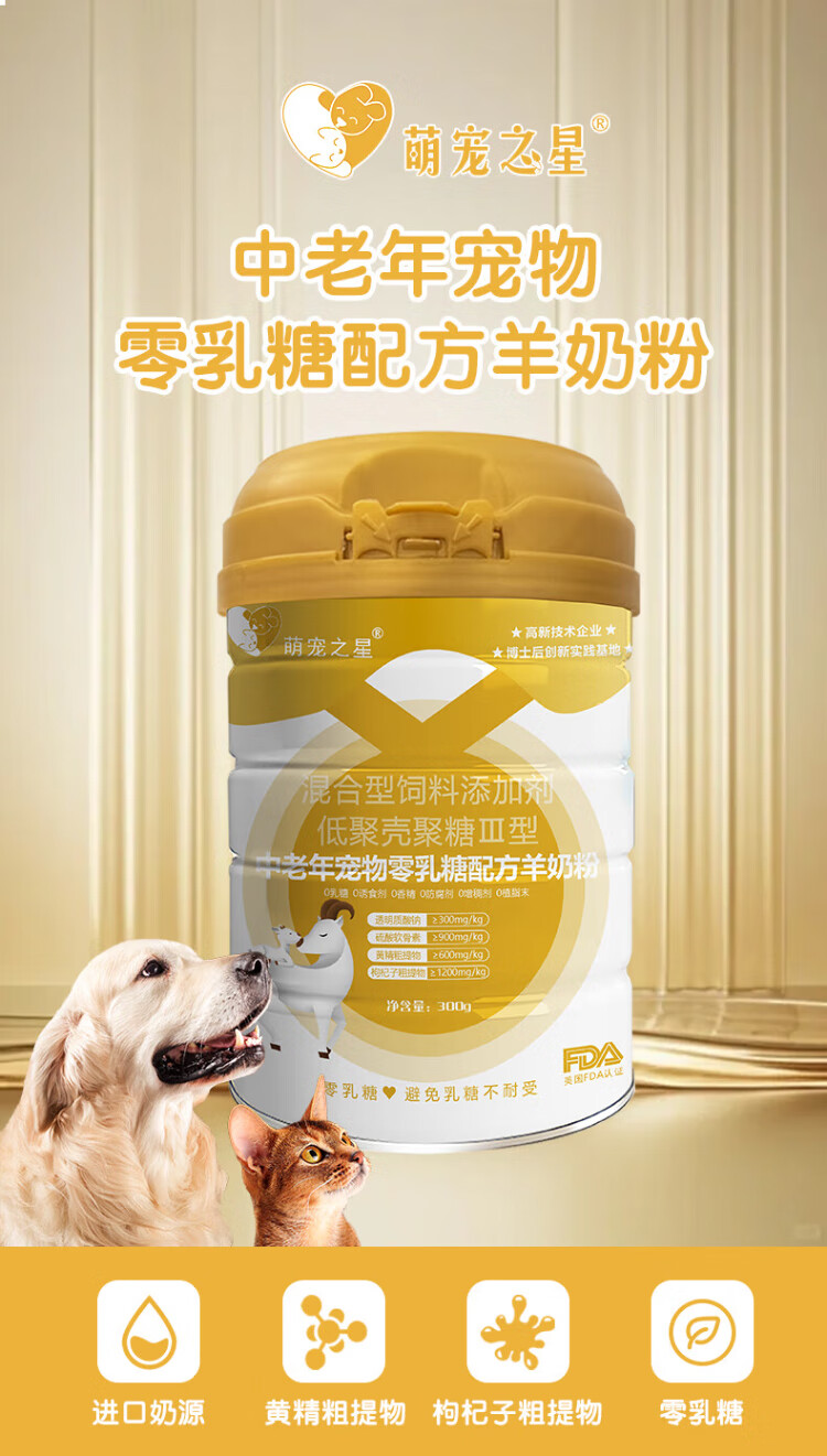 Cute Pet Star 0 Lactose Goat Milk Powder Pet Goat Milk Powder for Middle-aged and Elderly Pets 0 Lactose Formula Goat Milk Powder 300g
