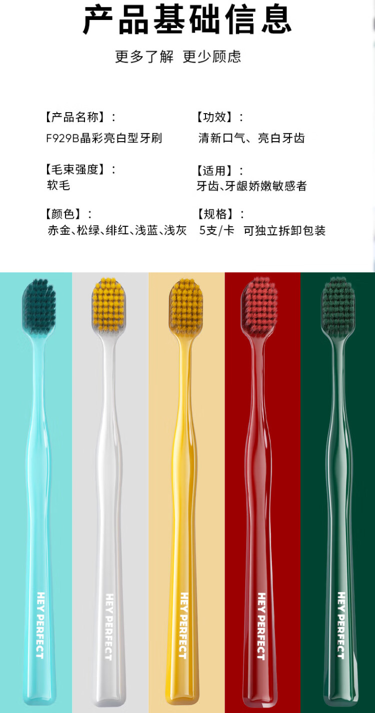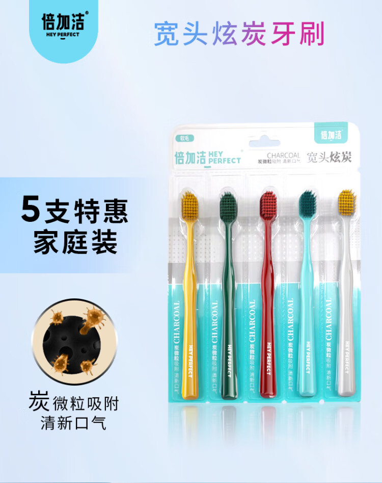 5 wide-head bright white toothbrushes from Pang Dong Lai, the same style, super soft bristles, anti-gum bleeding, family size for adults, men and women