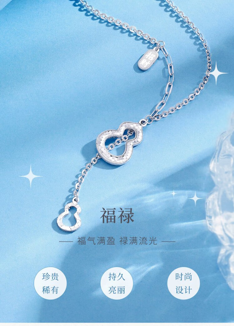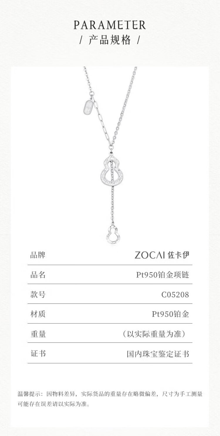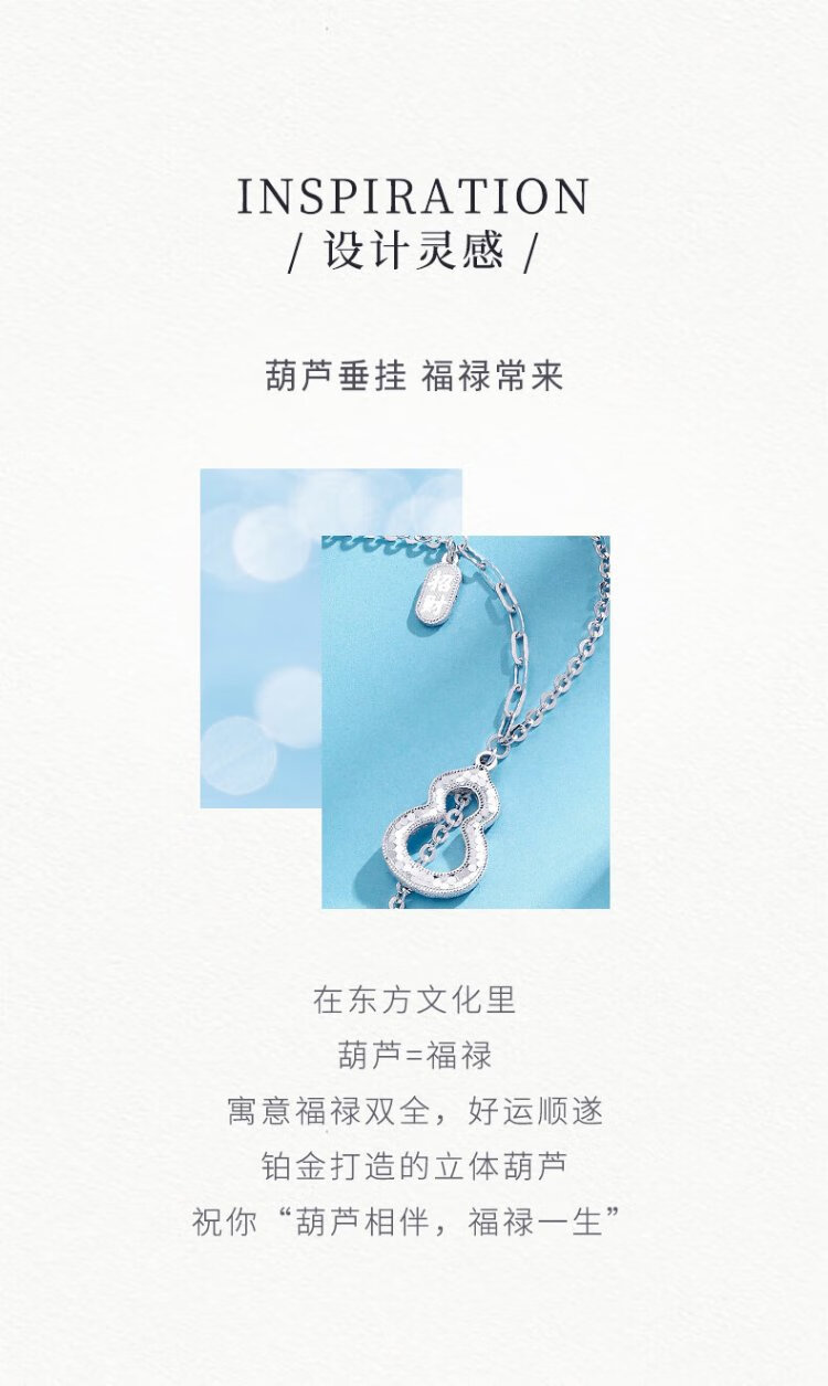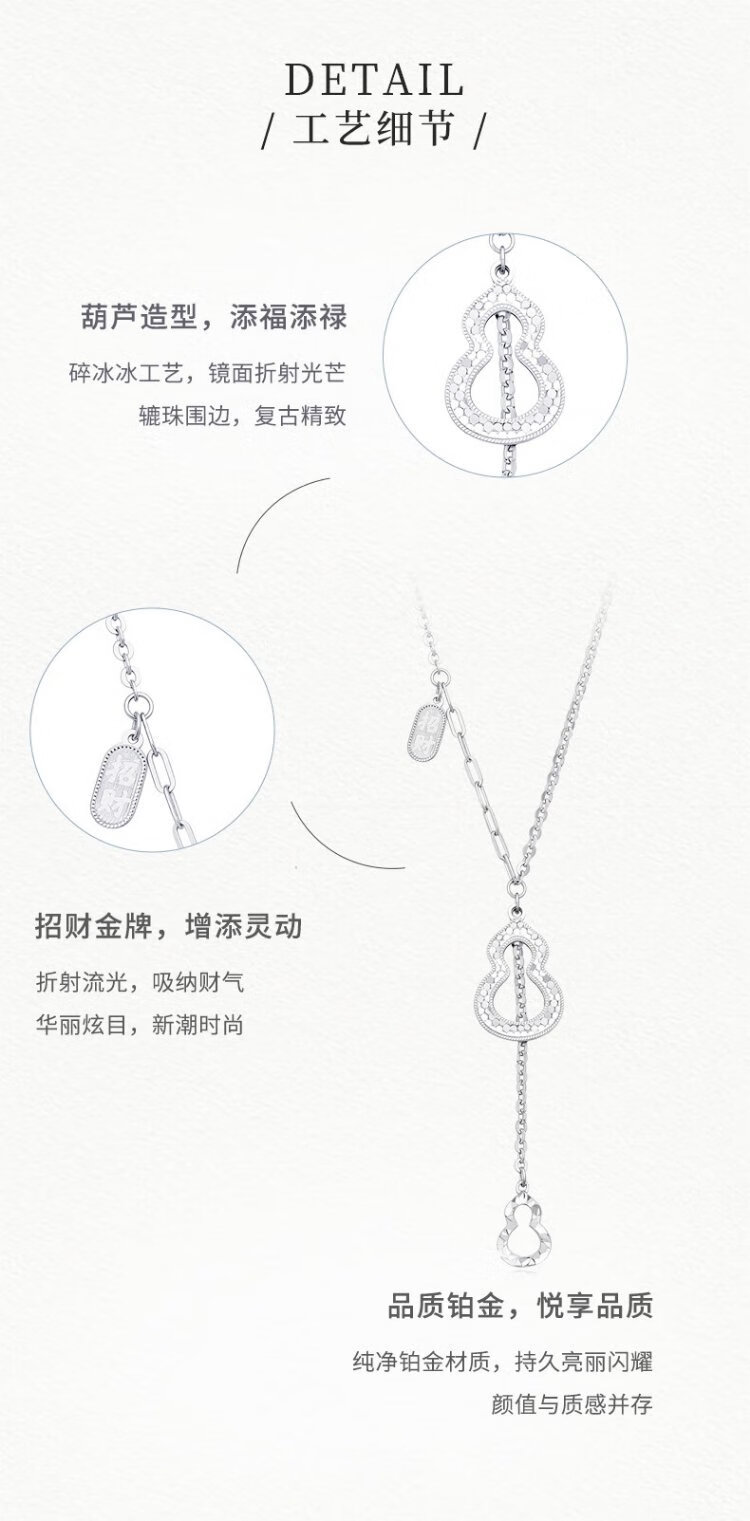 Zokai platinum necklace PT950 lucky gourd necklace Fulu Guo style versatile birthday gift about 6g C05208