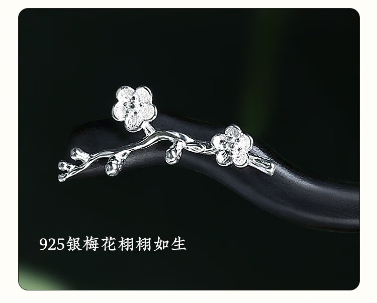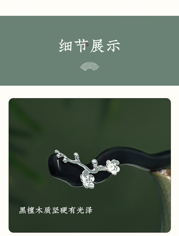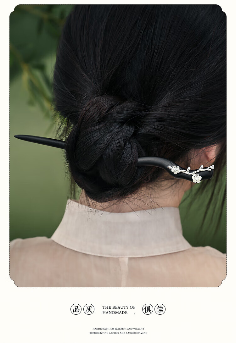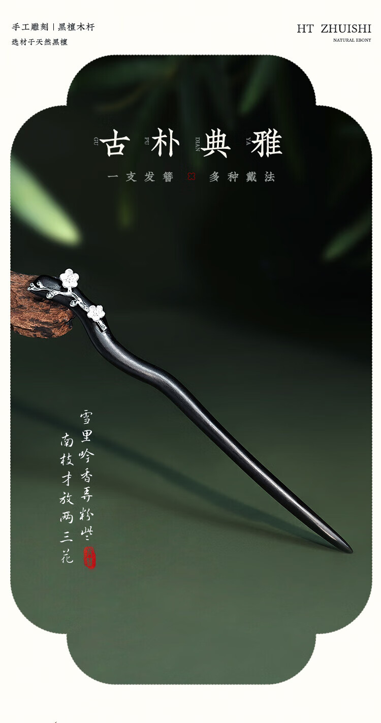 Zhuishi sterling silver 925 hairpin ancient style black sandalwood hairpin new Chinese style simple daily handmade silver hairpin for women