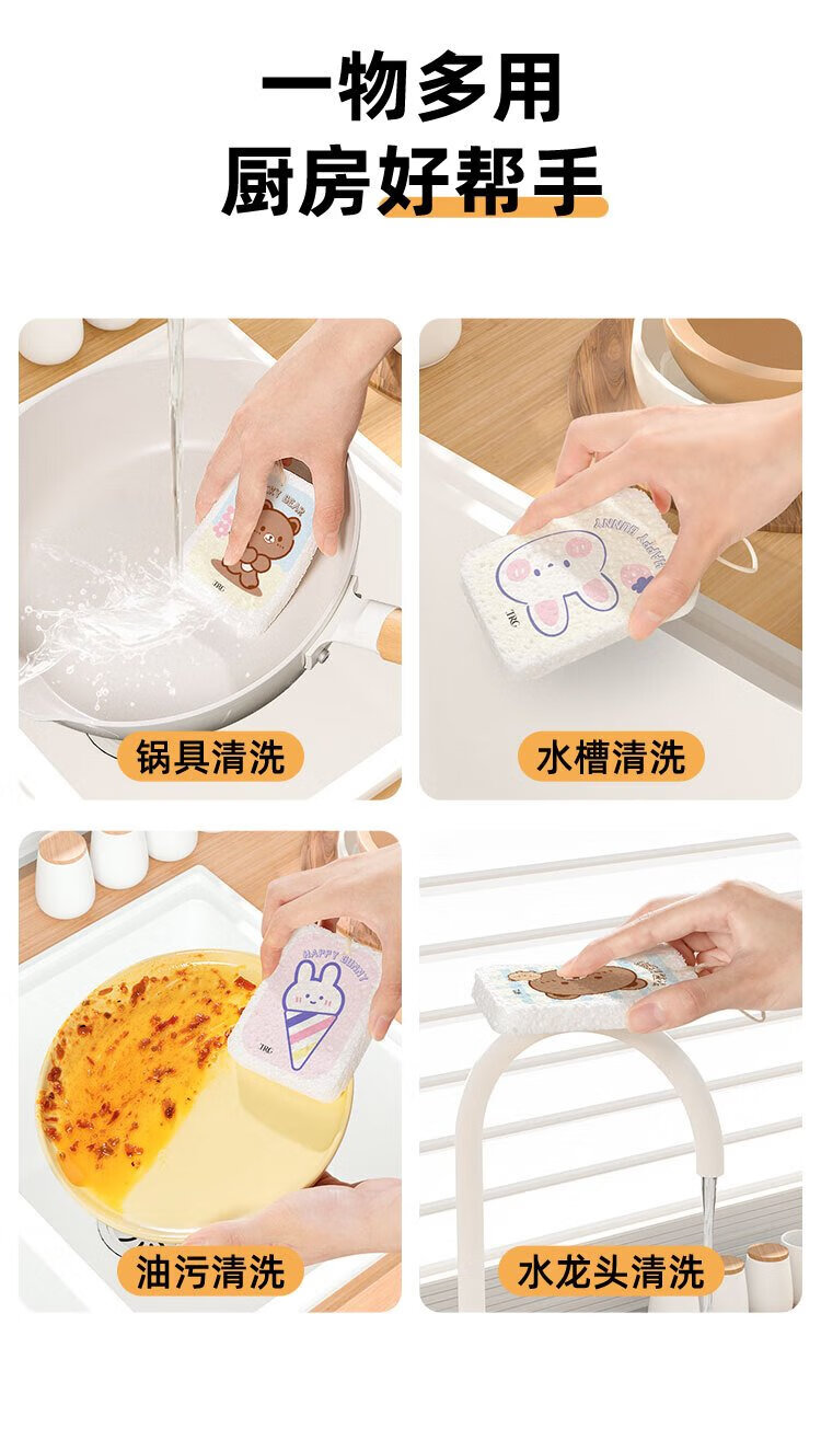 Terijie enlarged wood pulp cotton scouring pad sponge wipe 3 pieces of lazy kitchen magic wiper bowl artifact brush pot is not easy to stain oil