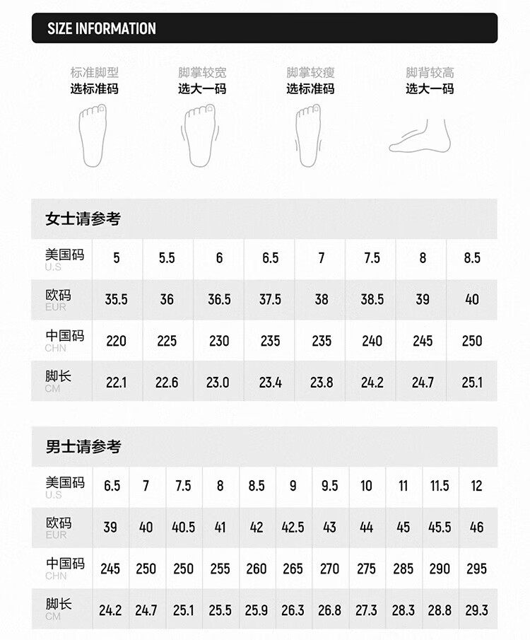 China (cm) 36 - 37 38 - 39 40 - 42 43 - 44 45 - 47