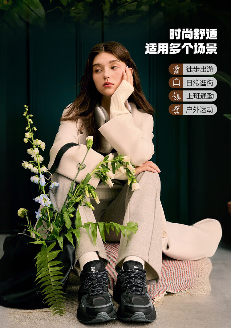 FILA official women's shoes FERN modern sports shoes 2025 fern straw shoes casual shoes dad shoes