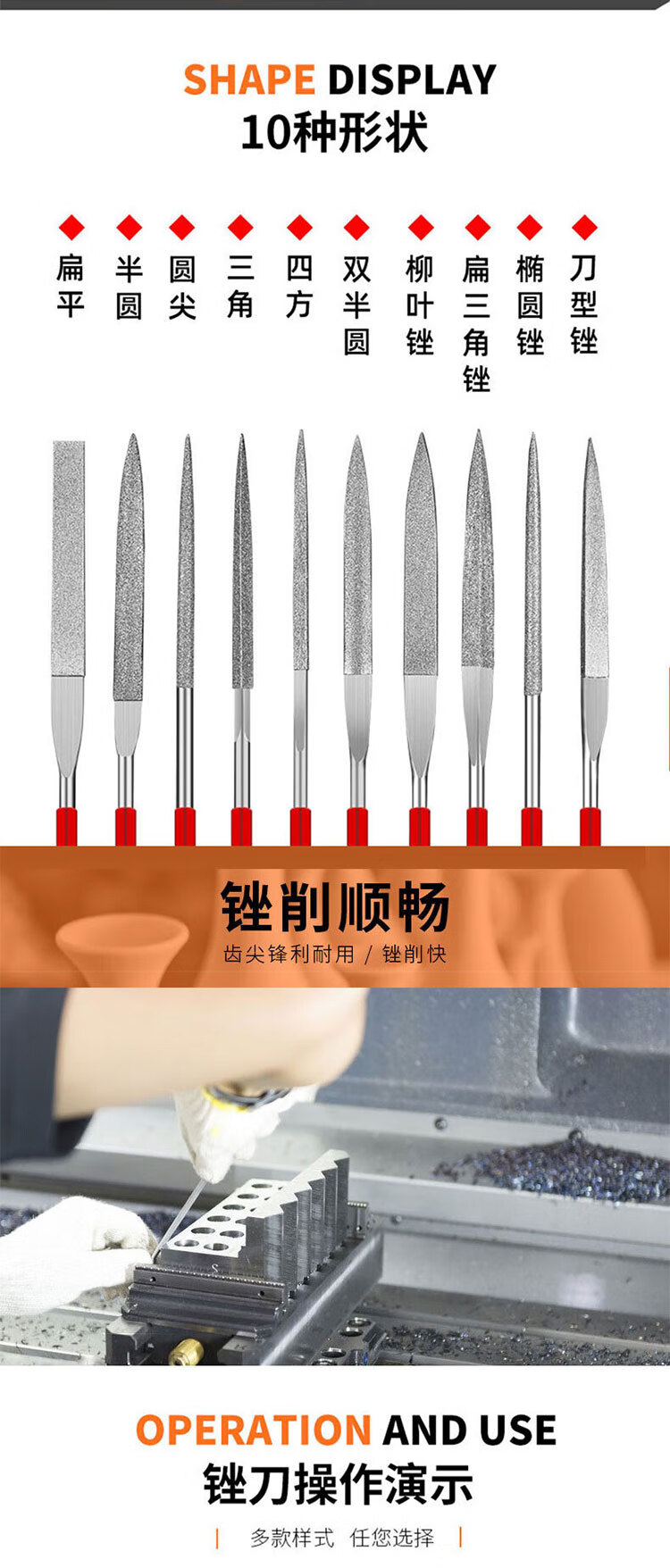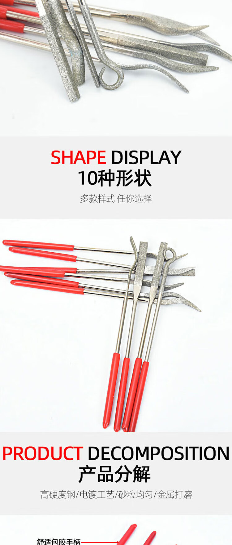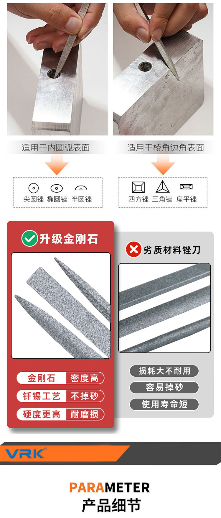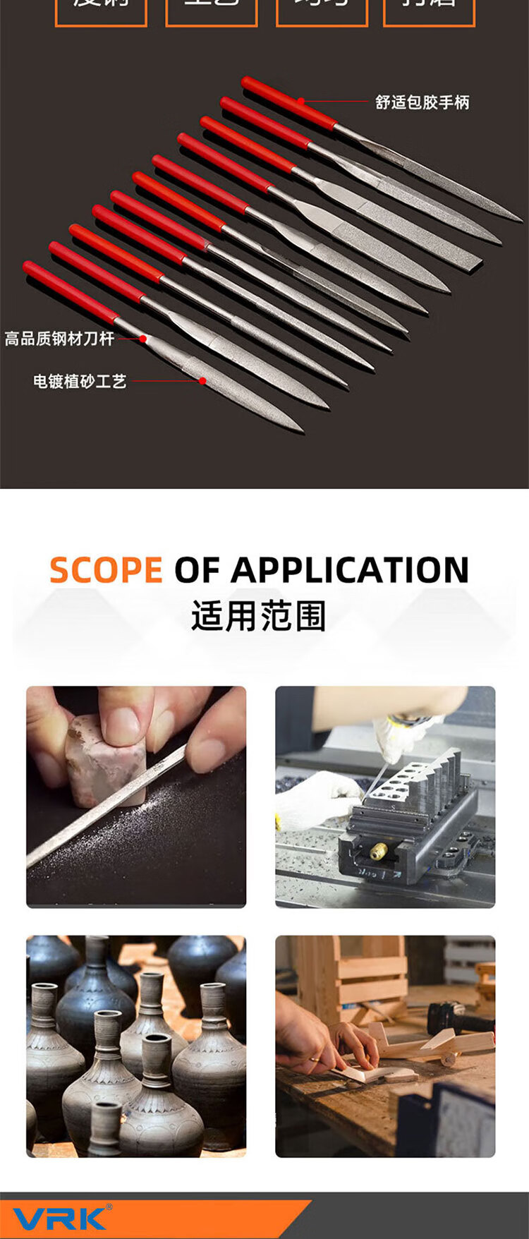 VRK diamond file mixed set 4*160mm long emery file metal grinding and trimming tool jade mold grinding file 10 pieces