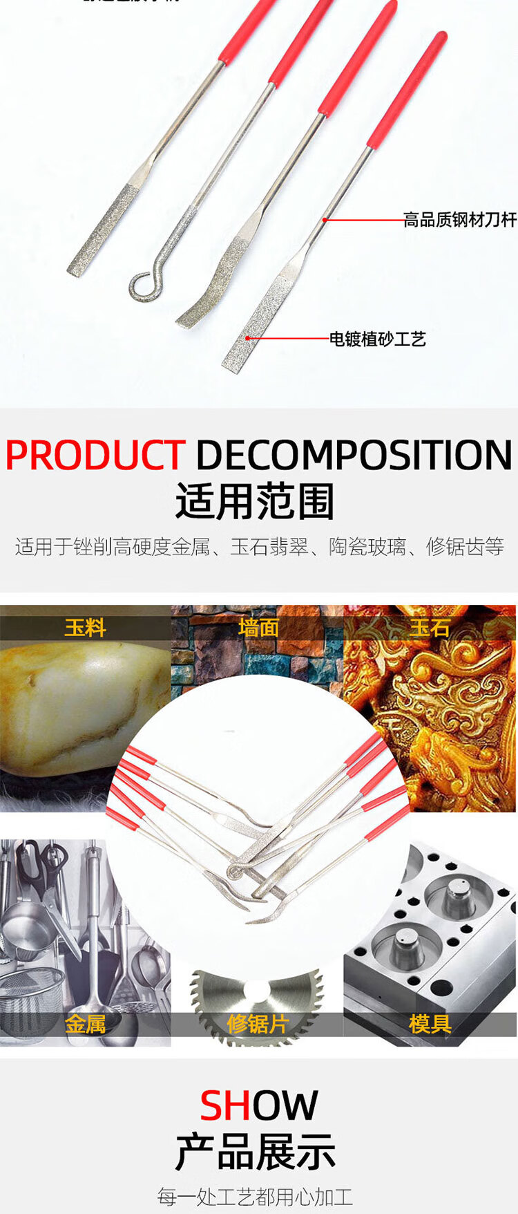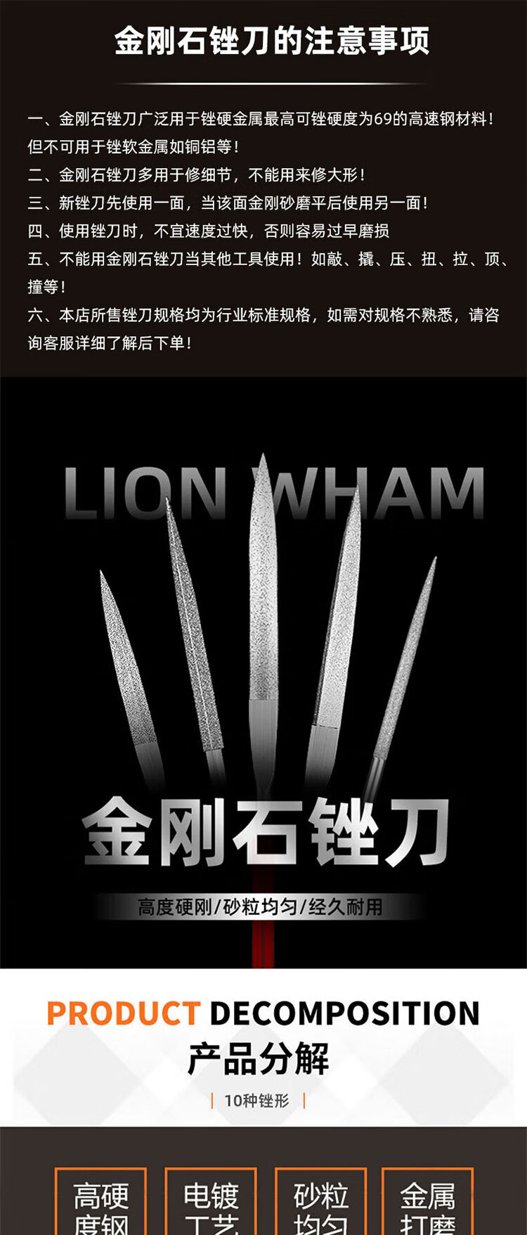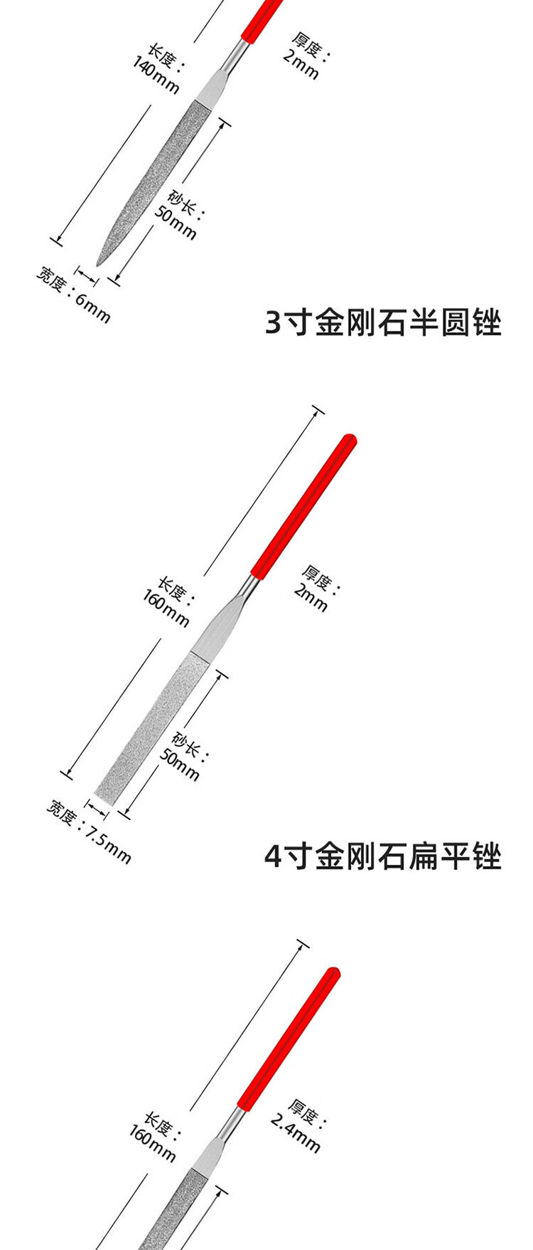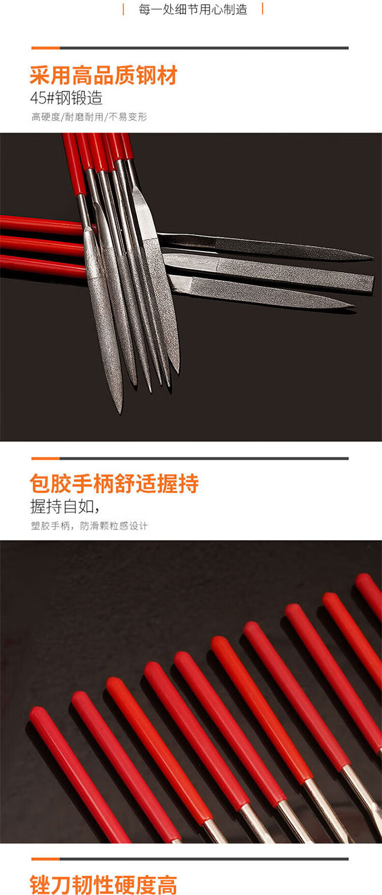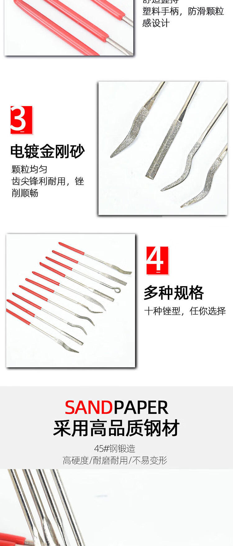 VRK diamond file mixed set 4*160mm long emery file metal grinding and trimming tool jade mold grinding file 10 pieces