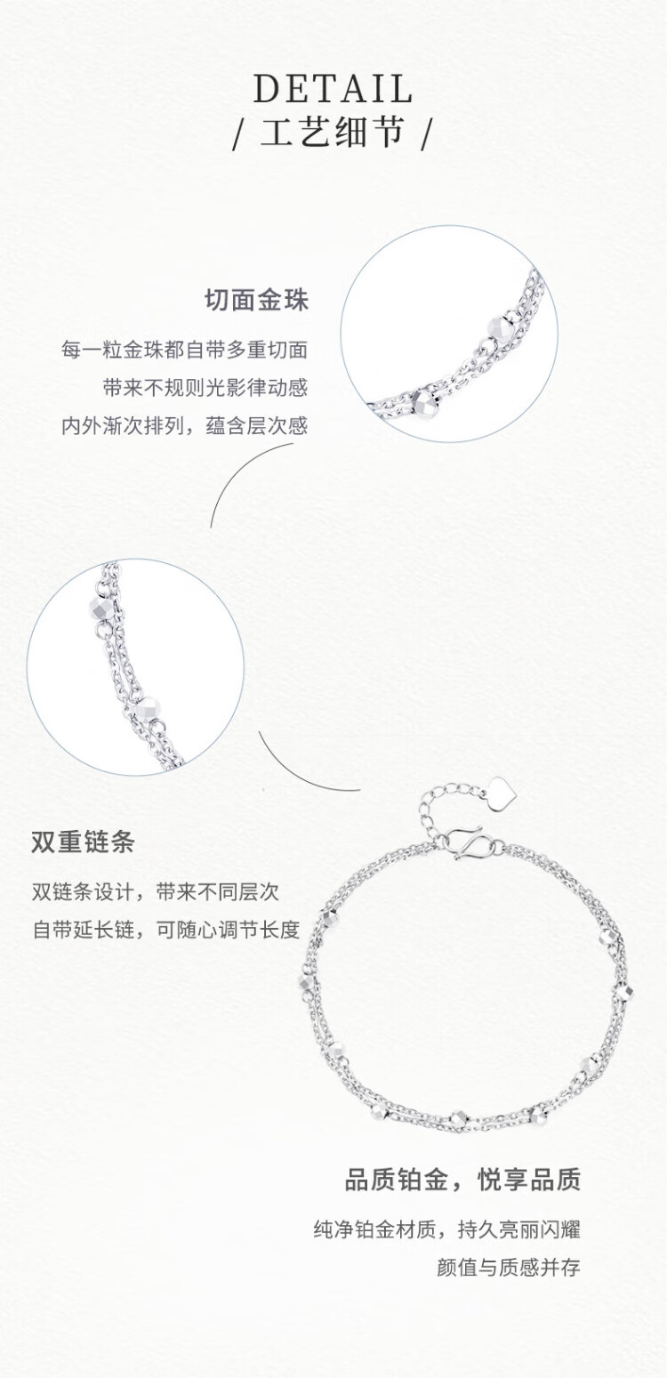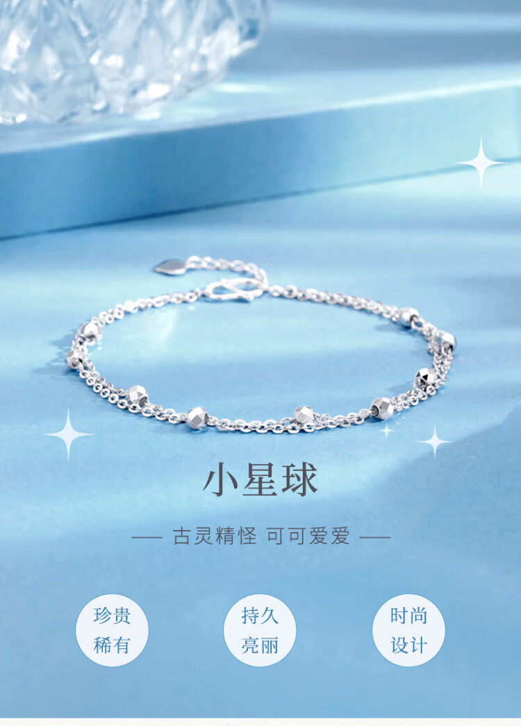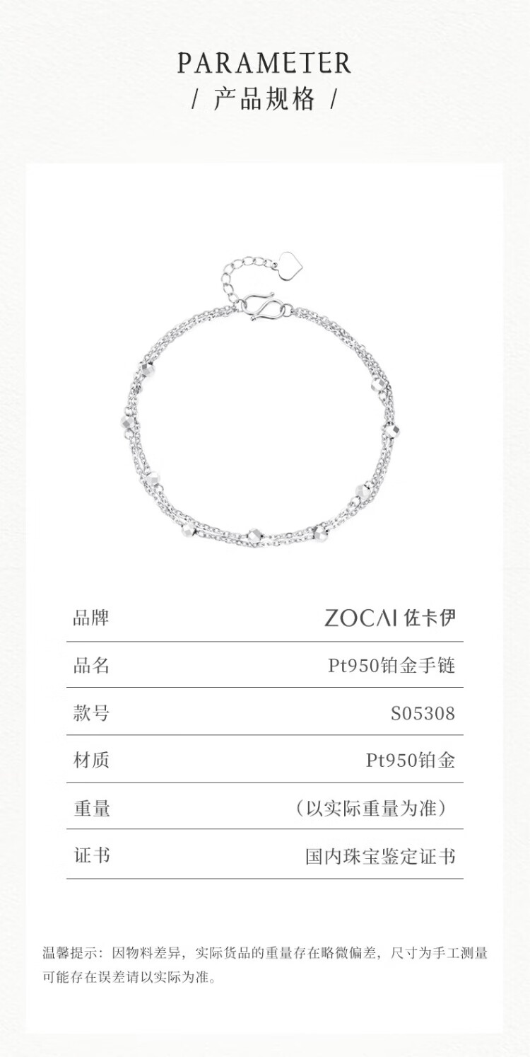 Zokai platinum bracelet PT950 small planet bracelet romantic simple versatile birthday gift about 2.4g S05308
