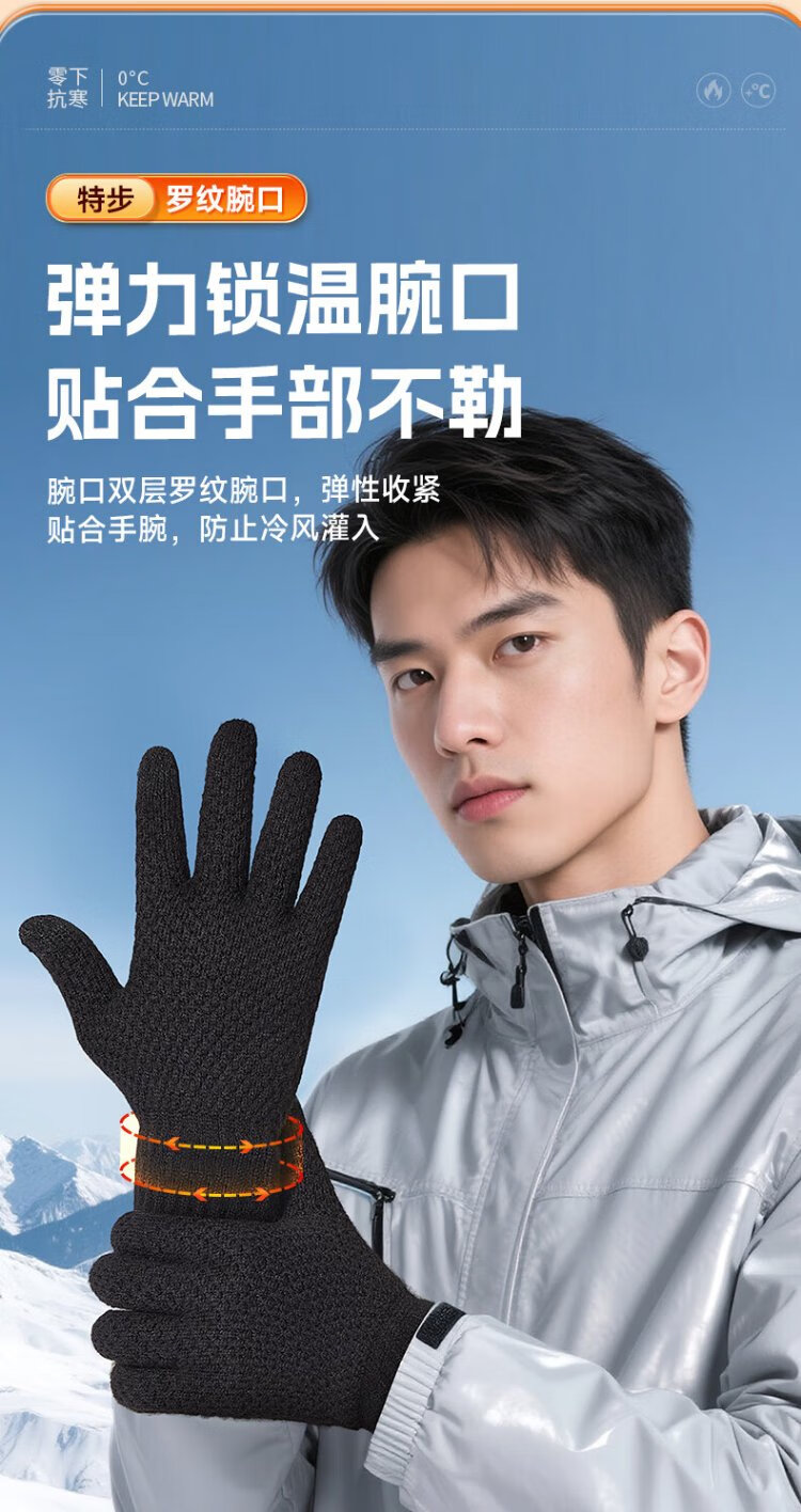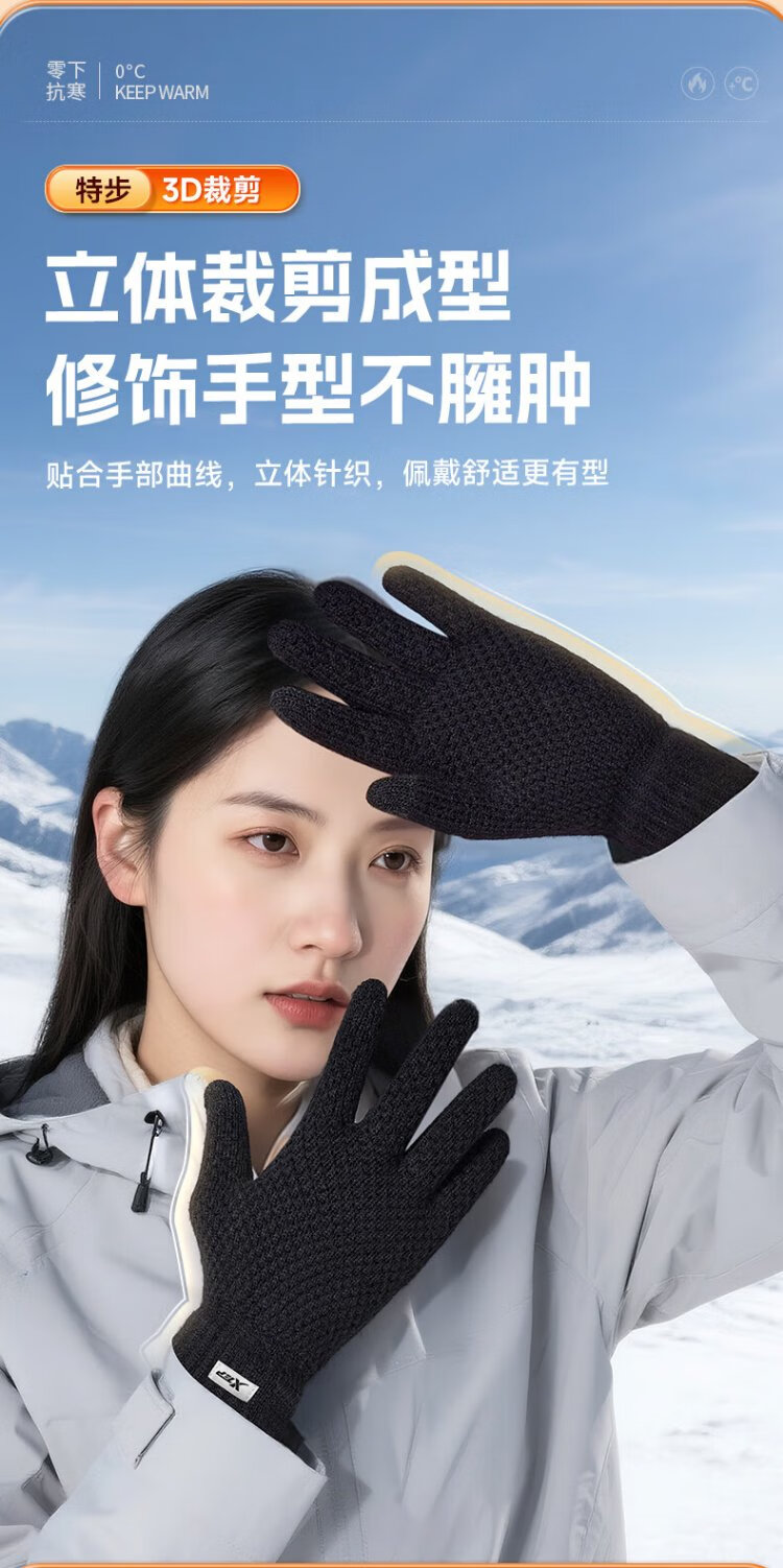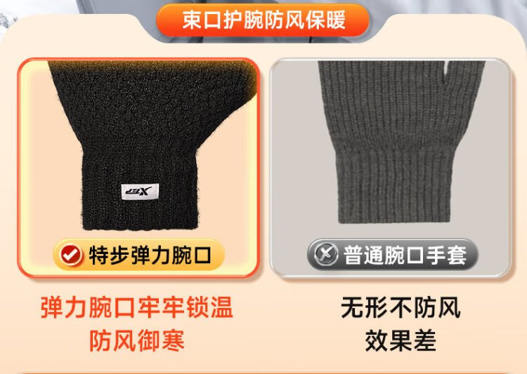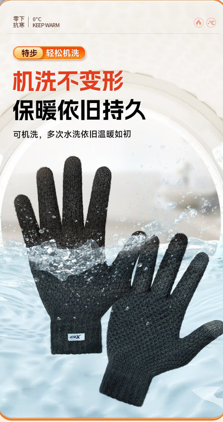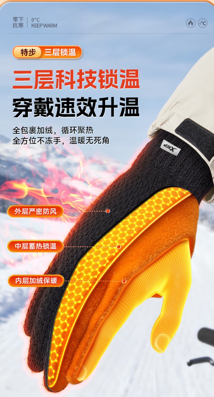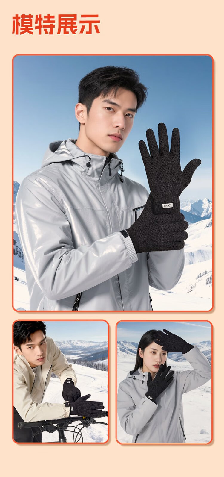 XTEP Cycling Gloves Winter Warm Plus Velvet Men's and Women's Windproof Electric Bicycle Knitted Touch Screen Leather Ski Antifreeze