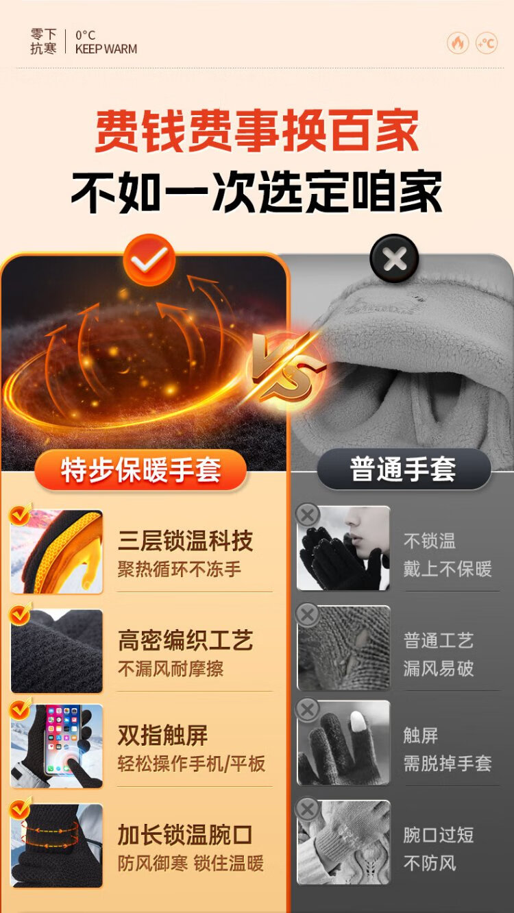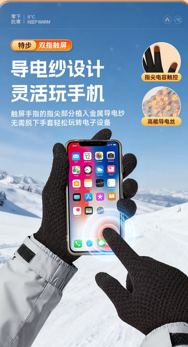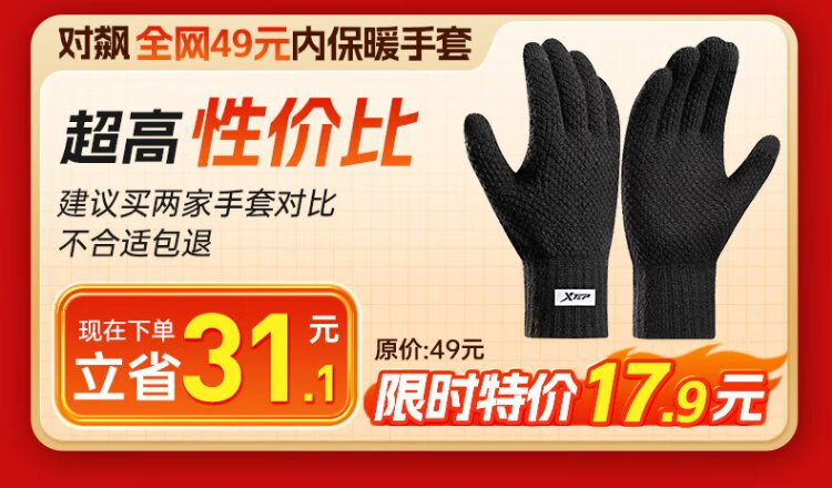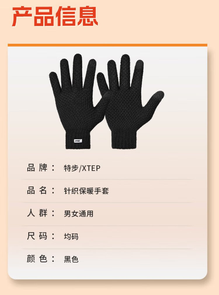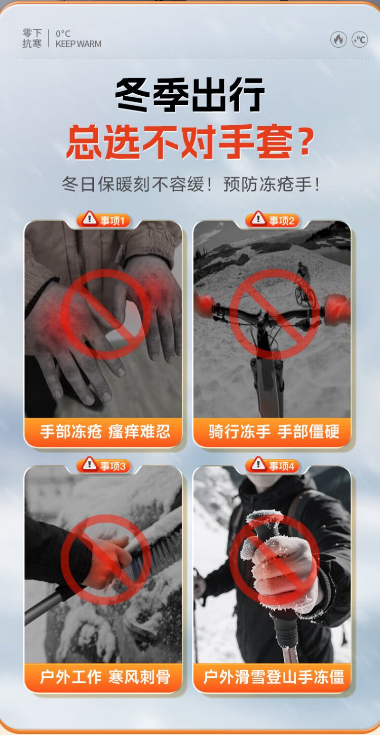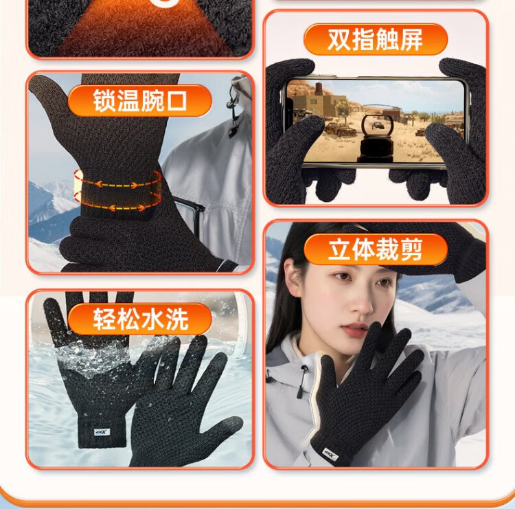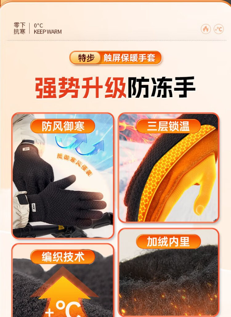 XTEP Cycling Gloves Winter Warm Plus Velvet Men's and Women's Windproof Electric Bicycle Knitted Touch Screen Leather Ski Antifreeze