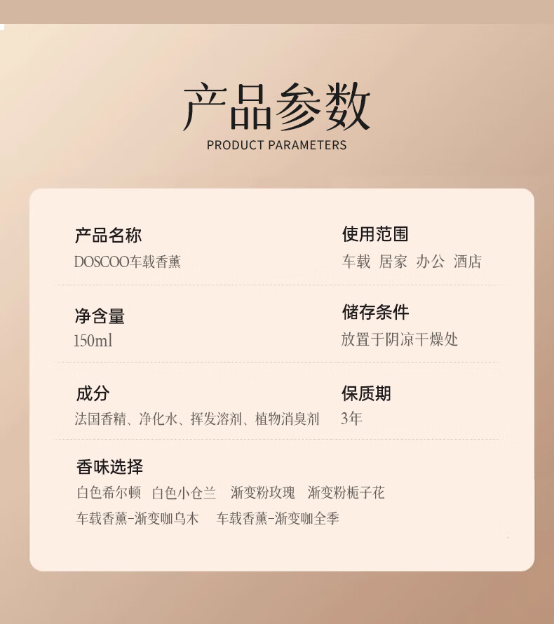 DOSCOO Car Aromatherapy Long-lasting Fragrance Car Special Perfume Used in the Car to Purify the Air to Remove Odors White Hilton