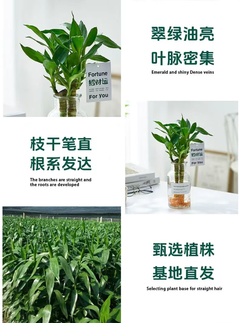 Shuzhimei Hydroponic Plant Lucky Bamboo Trial Pack Hydroponic Lucky Bamboo with Roots 10 Branches 15-20cm Straight from the Source