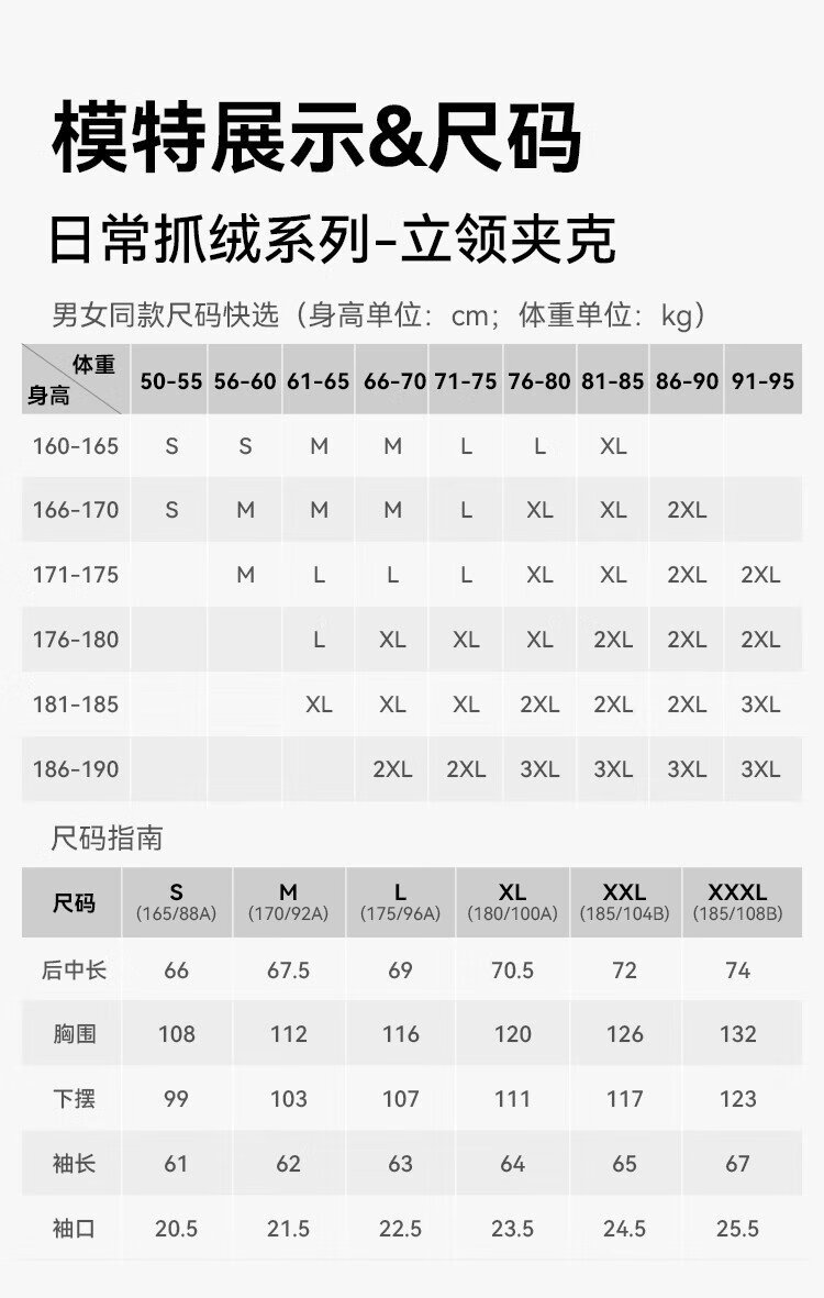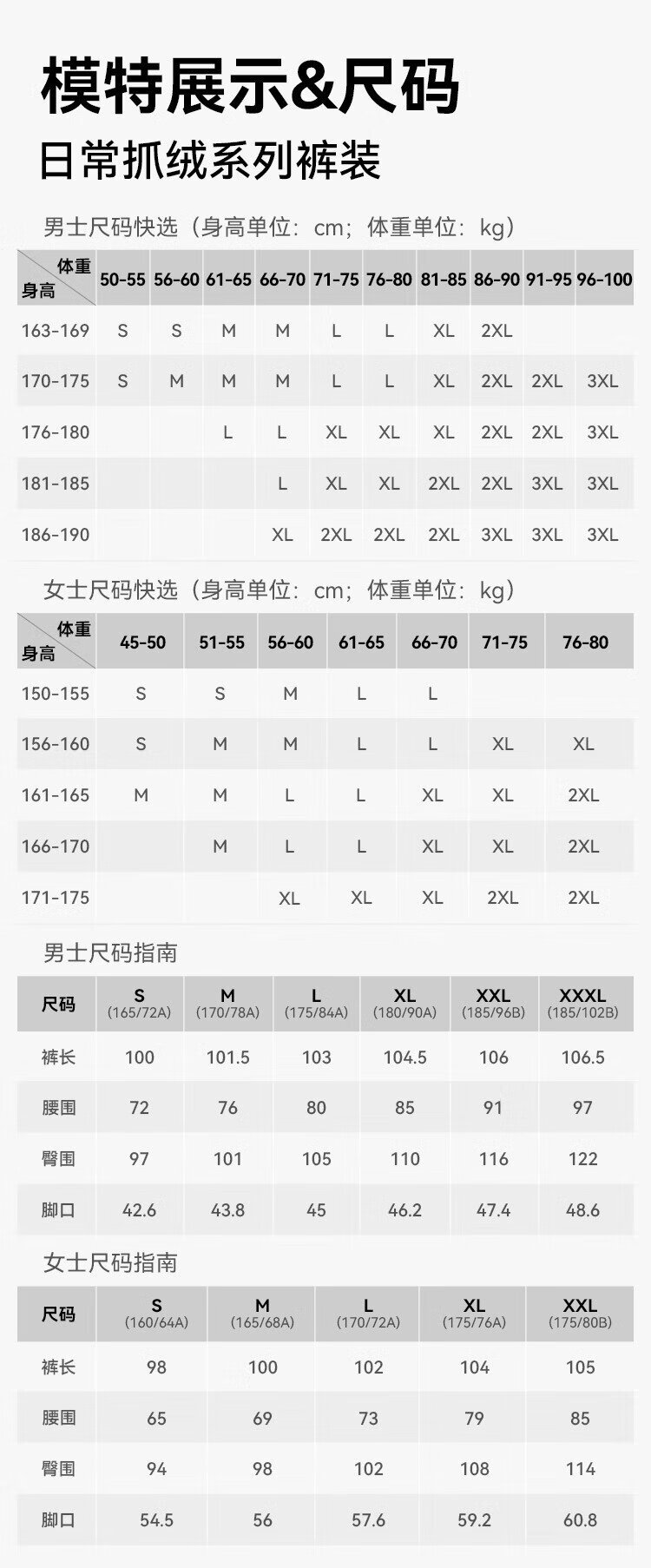 China (cm) 160-165/84-86 165-170 / 88-90 167-172 / 92-96 168-173 / 98-102 170-176 / 106-110
