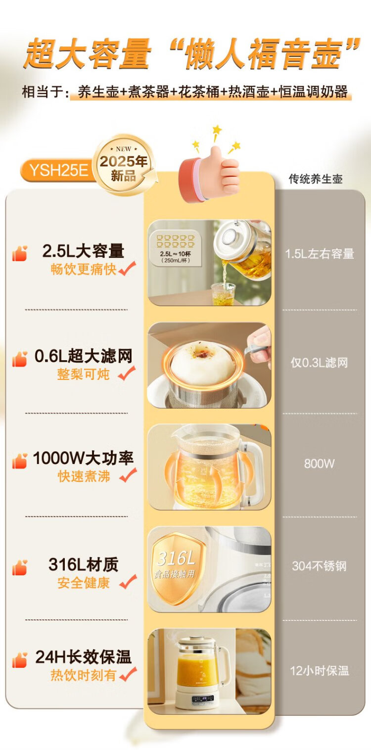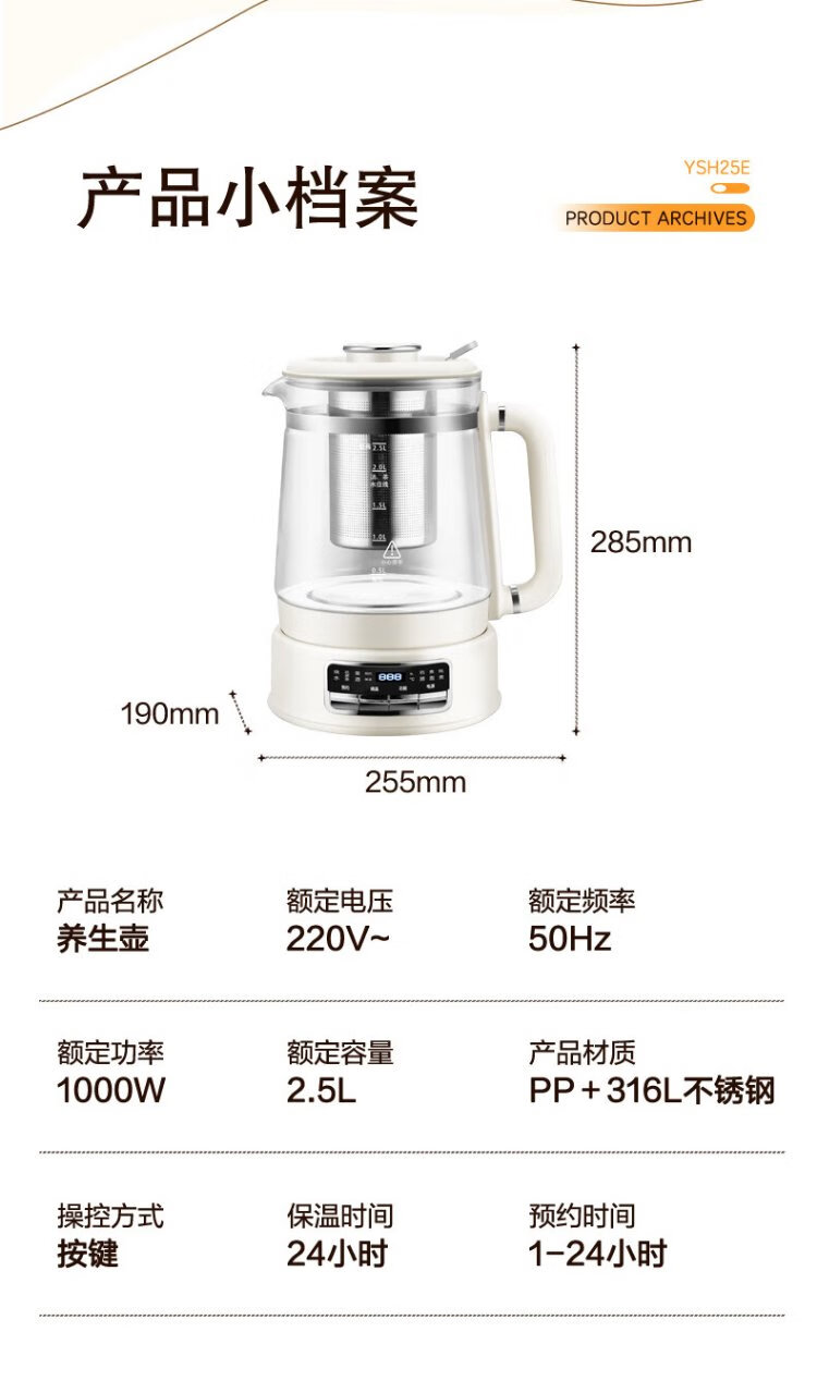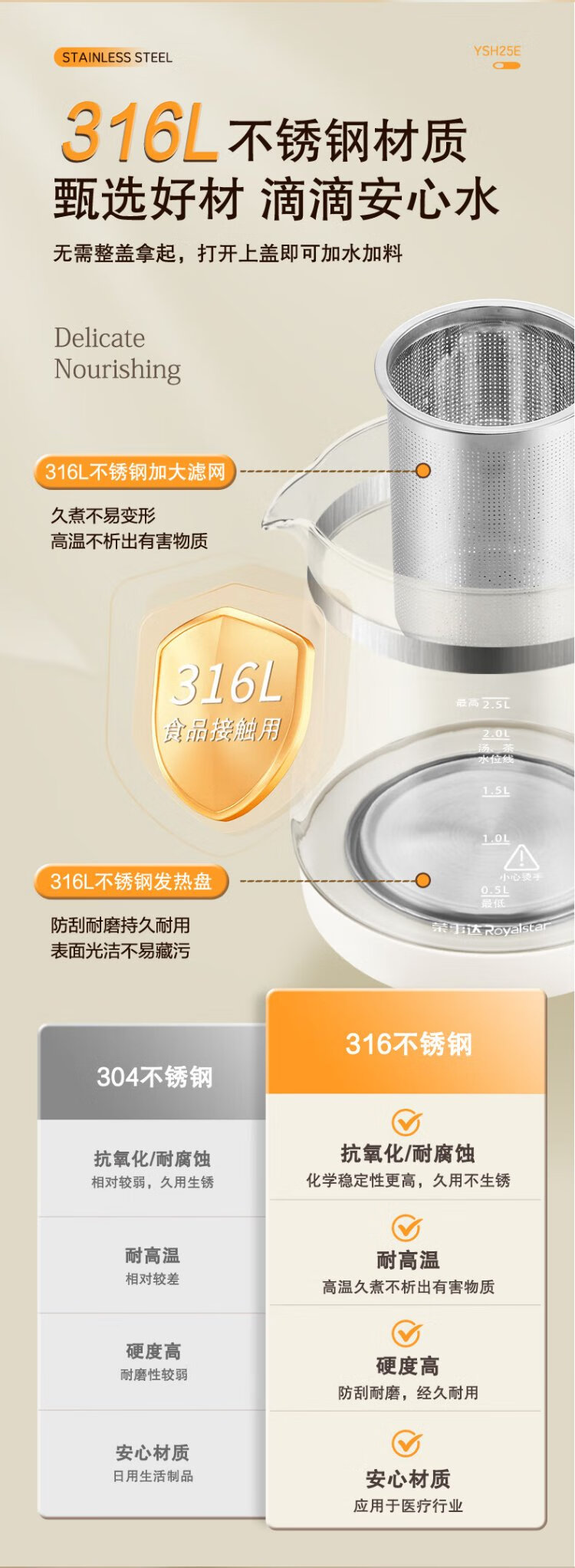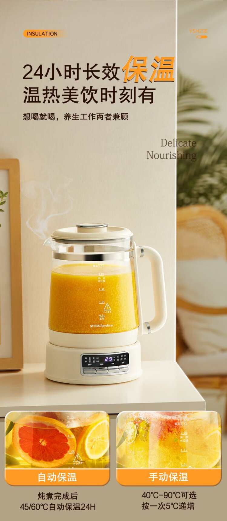 Royalstar health kettle, tea kettle, kettle, household constant temperature kettle, 24H insulation, stew, all-in-one electric kettle, flower tea kettle, enlarged filter, 2.5 liter large capacity YSH25E