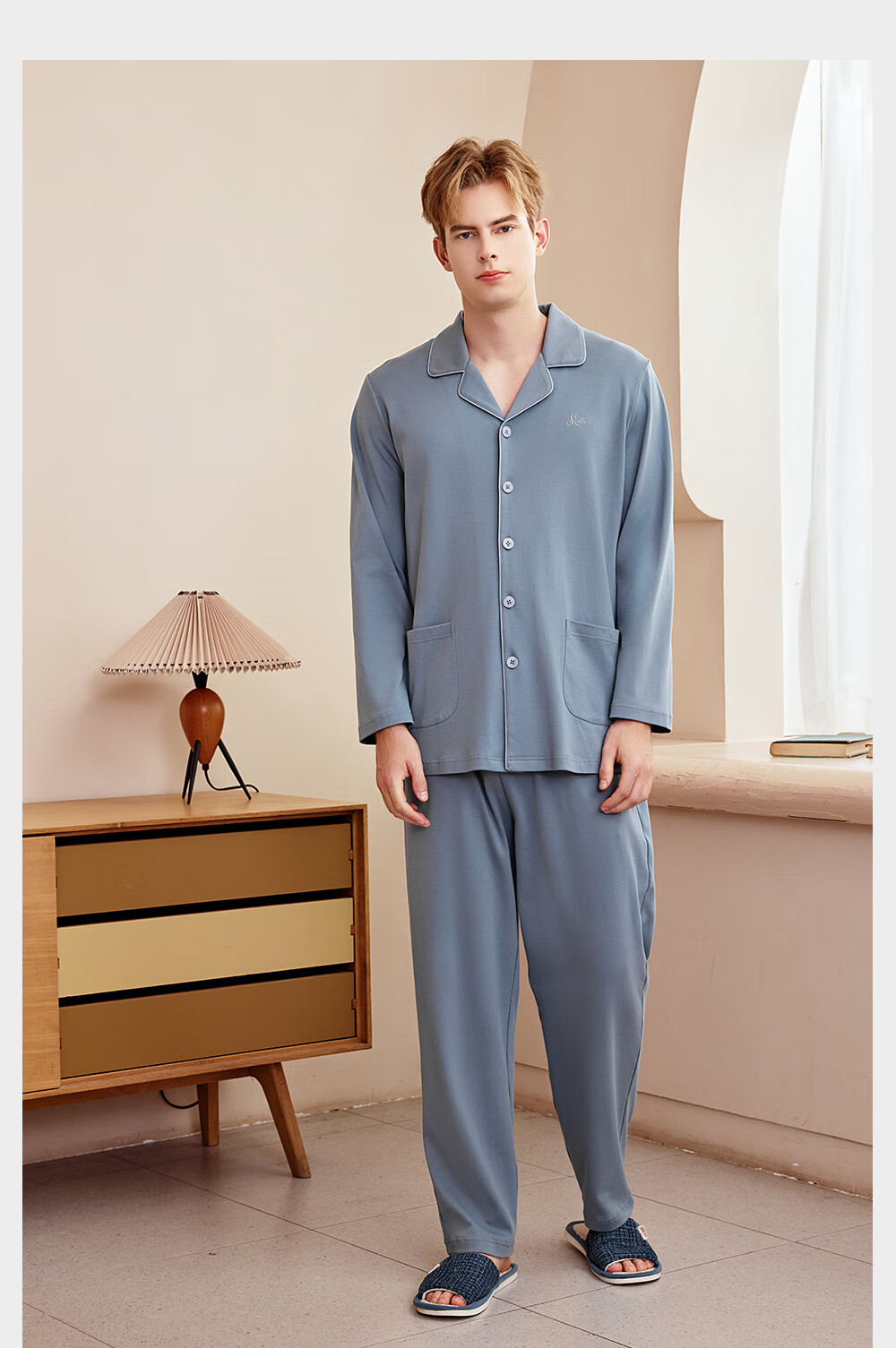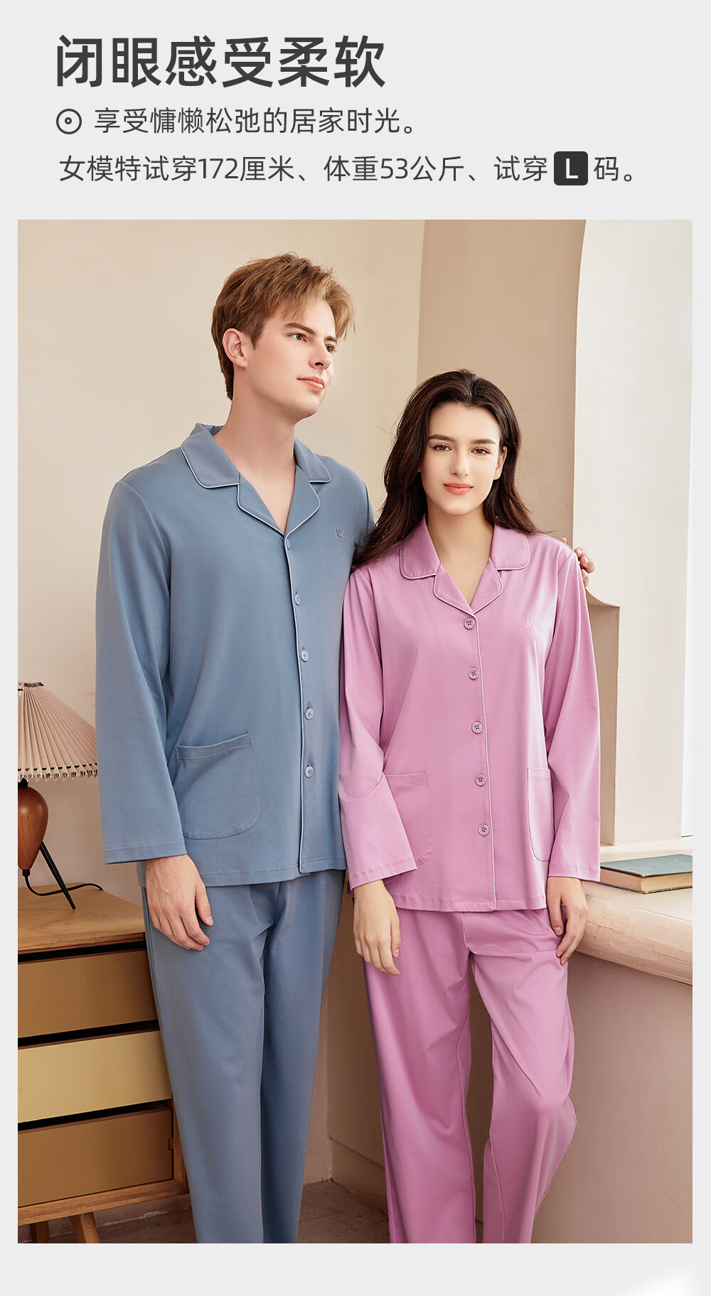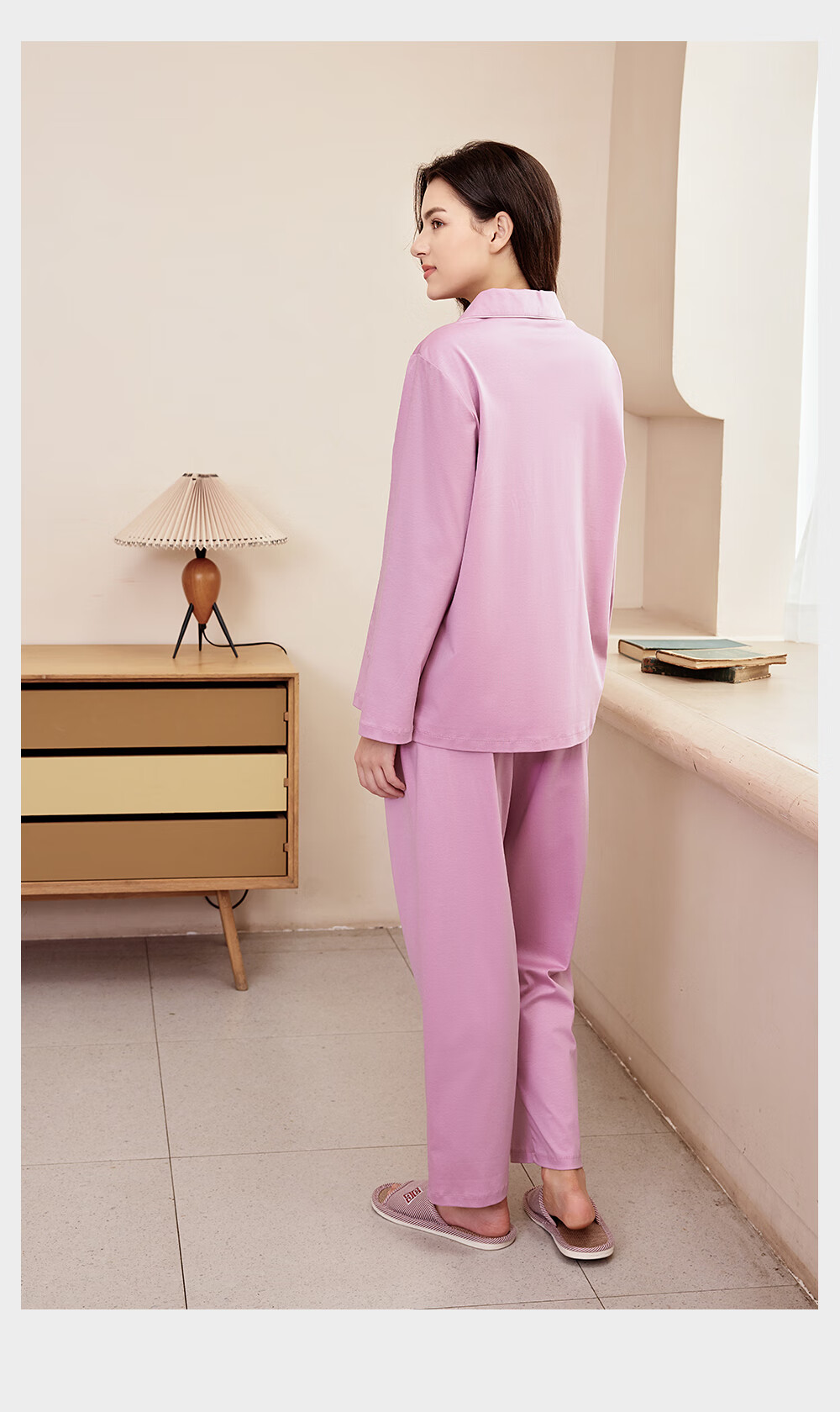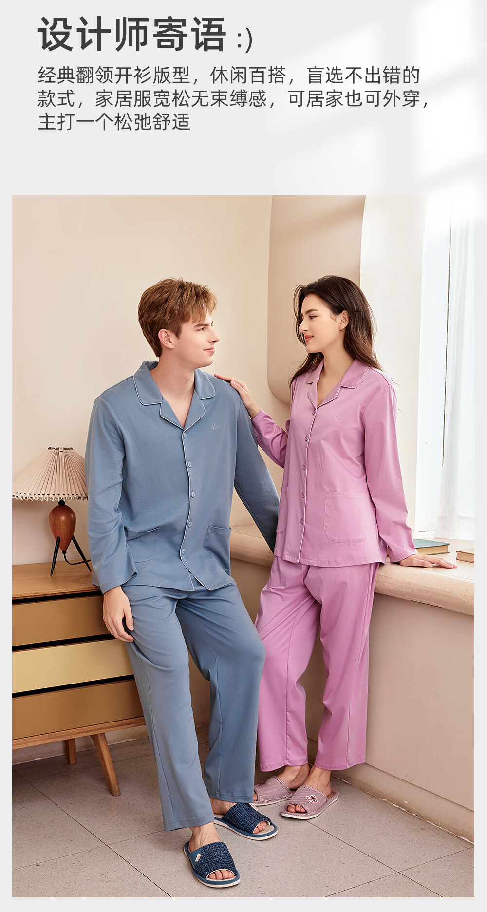 American Standard Cotton Pajamas Women's Autumn and Winter Couple's Long Sleeve Suit Men's Solid Color Cotton Cardigan Home Clothes Bean Paste Purple L