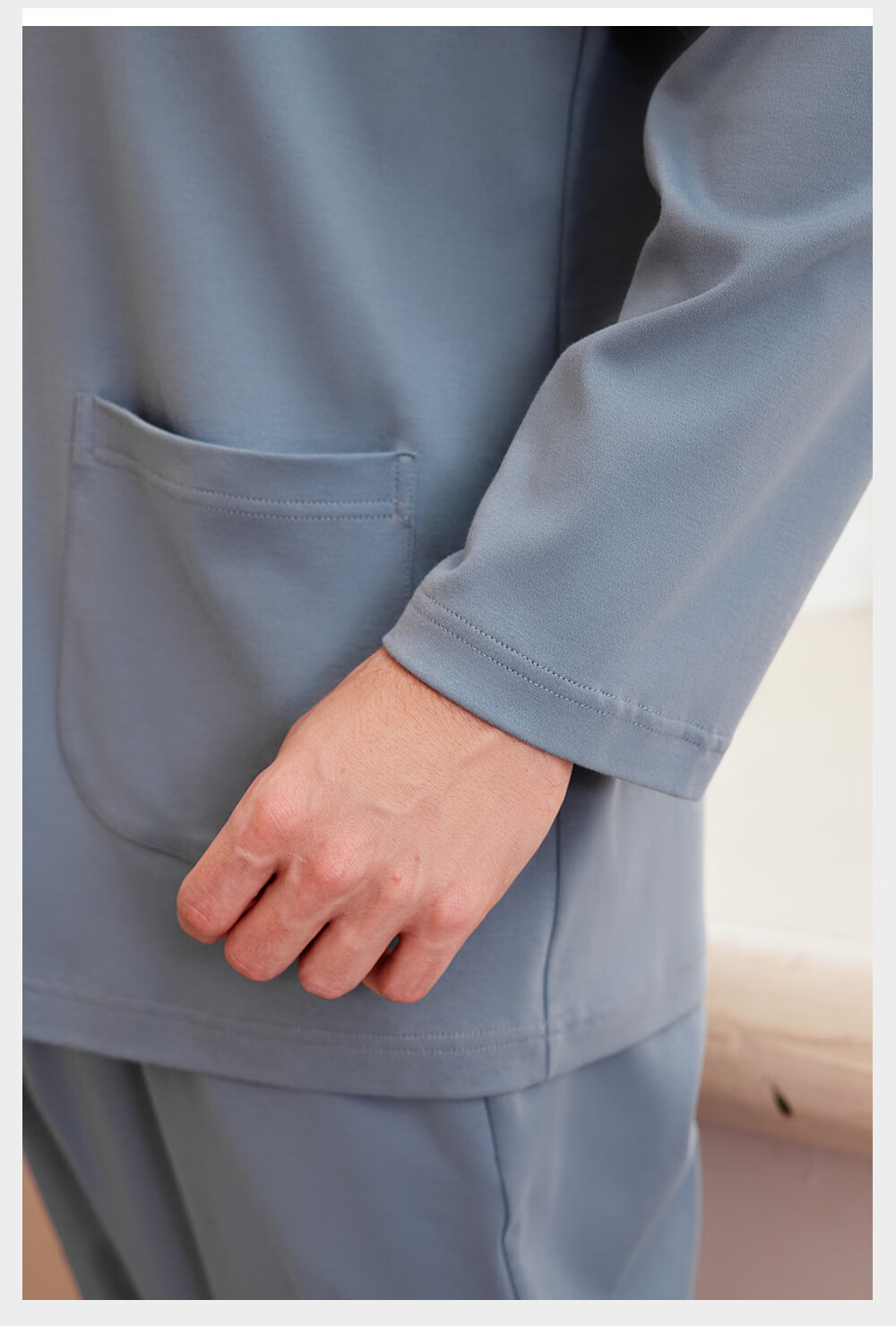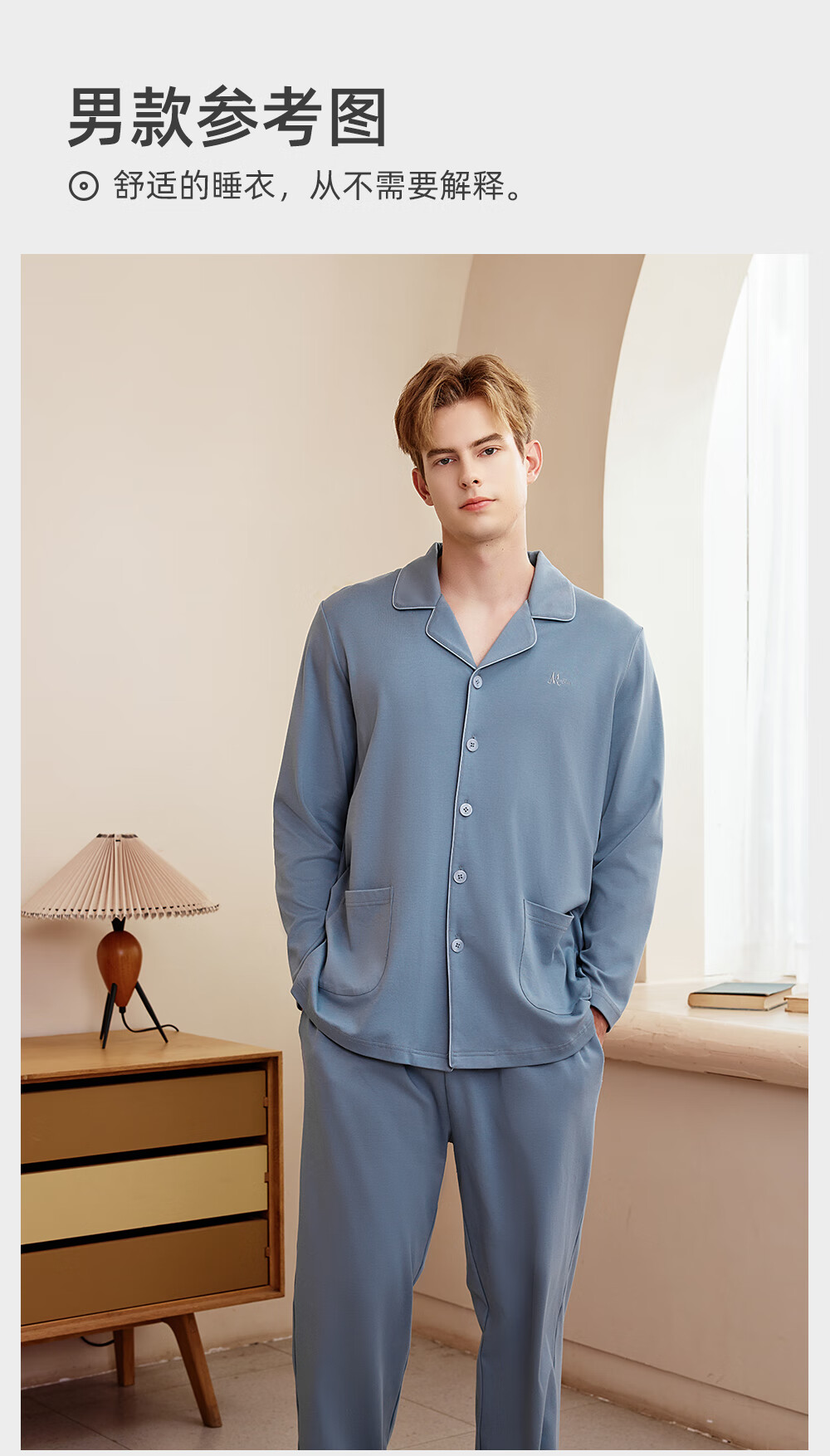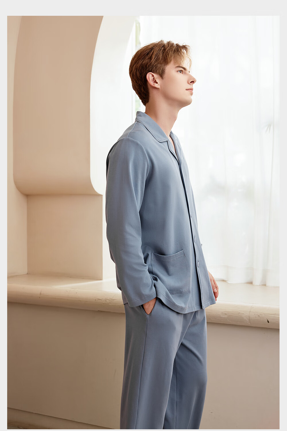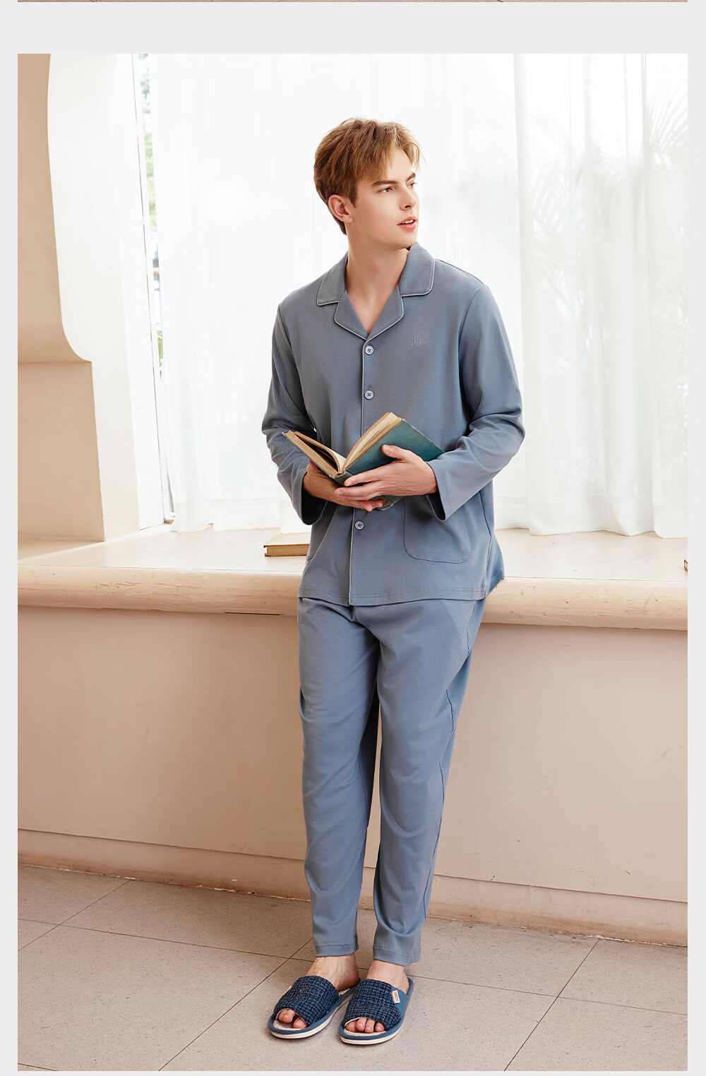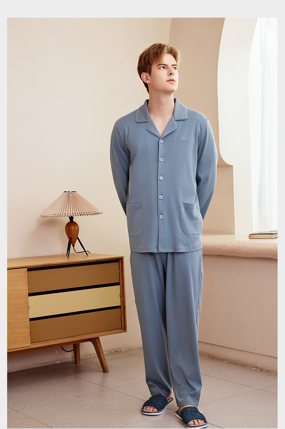 American Standard Cotton Pajamas Women's Autumn and Winter Couple's Long Sleeve Suit Men's Solid Color Cotton Cardigan Home Clothes Bean Paste Purple L