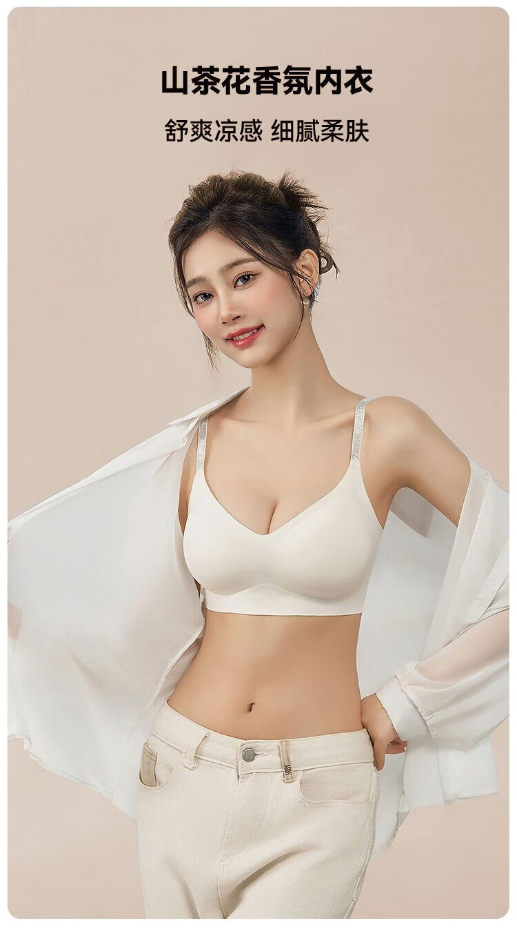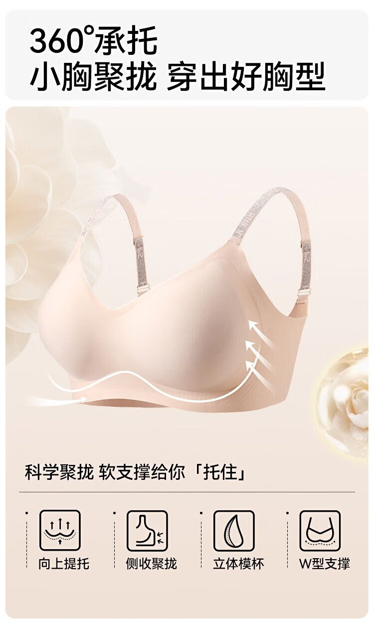 FitonTon anti-gravity push-up auxiliary breast bra camellia fragrance underwear women's anti-sagging seamless semi-fixed bra