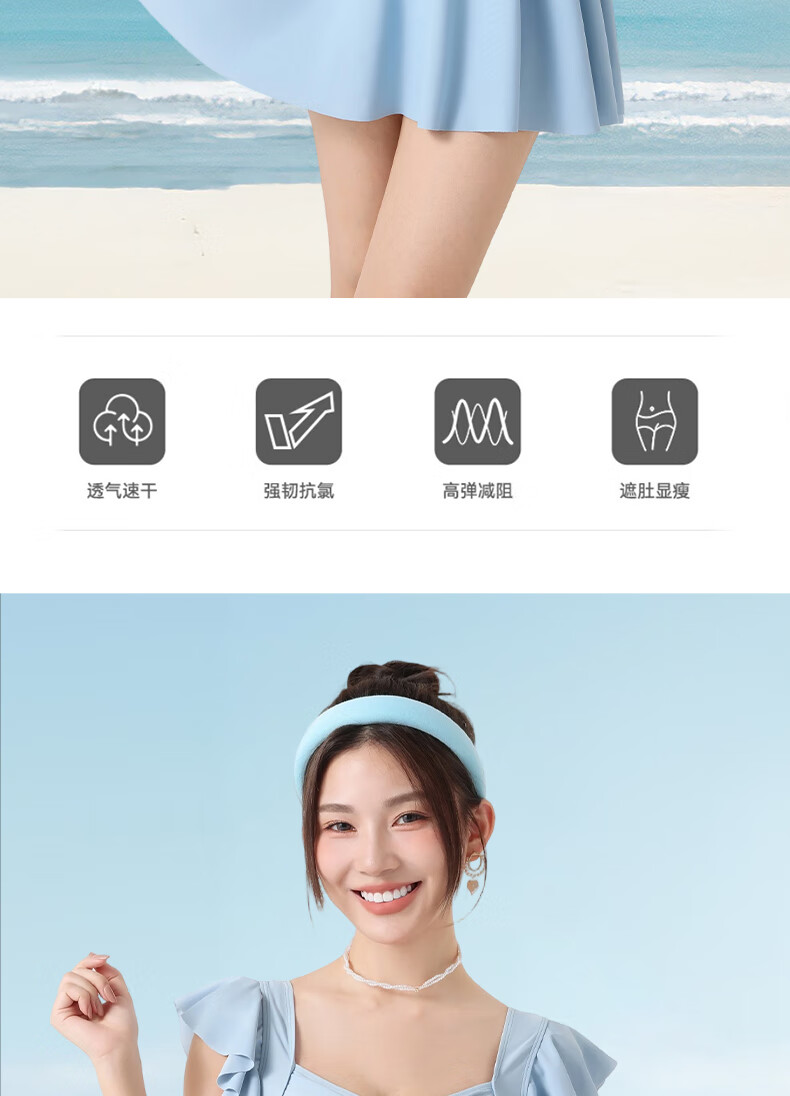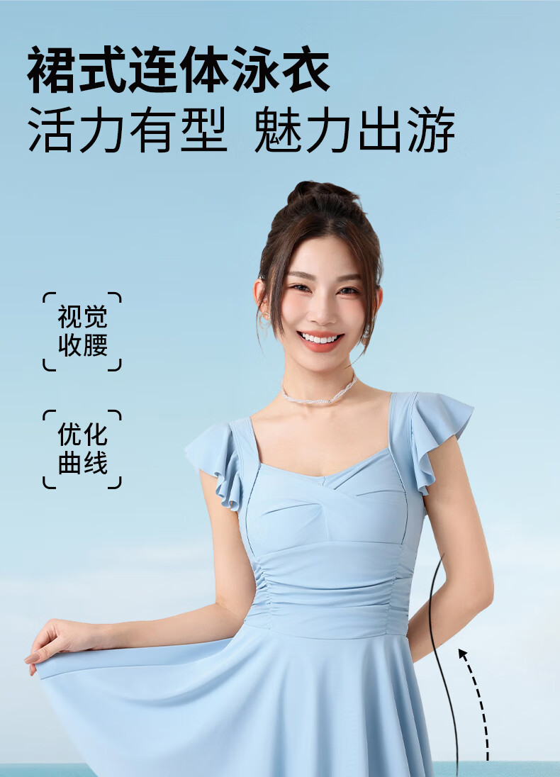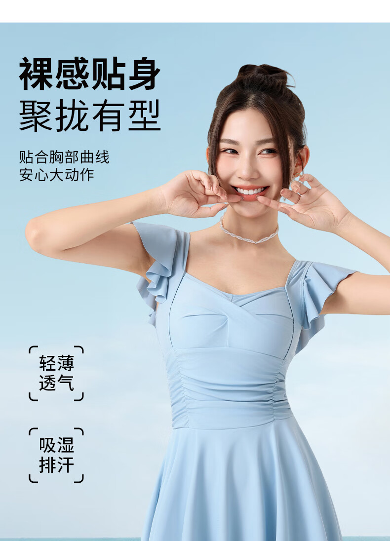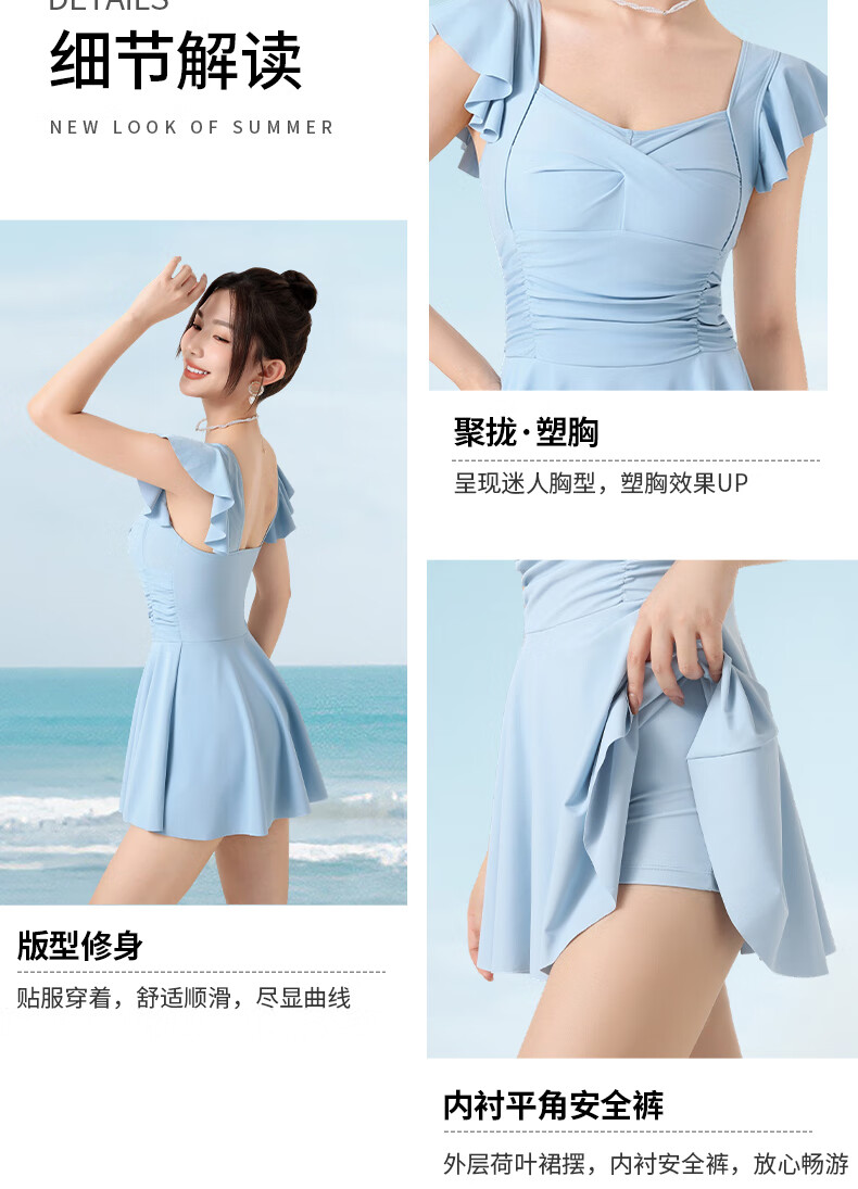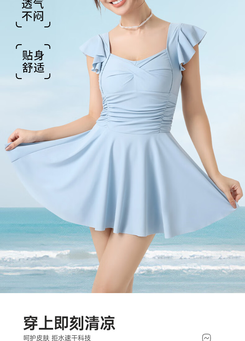 LangSha swimsuit for women, one-piece skirt, sexy, slim, belly-covering, slimming, conservative, anti-exposure, beach vacation, sweet, cool and gentle swimsuit
