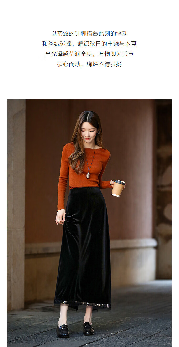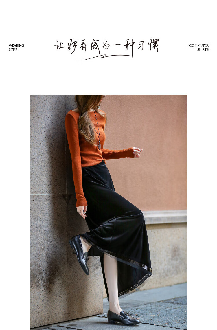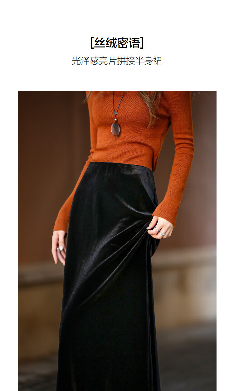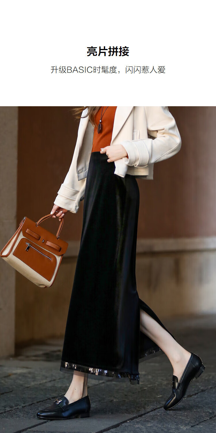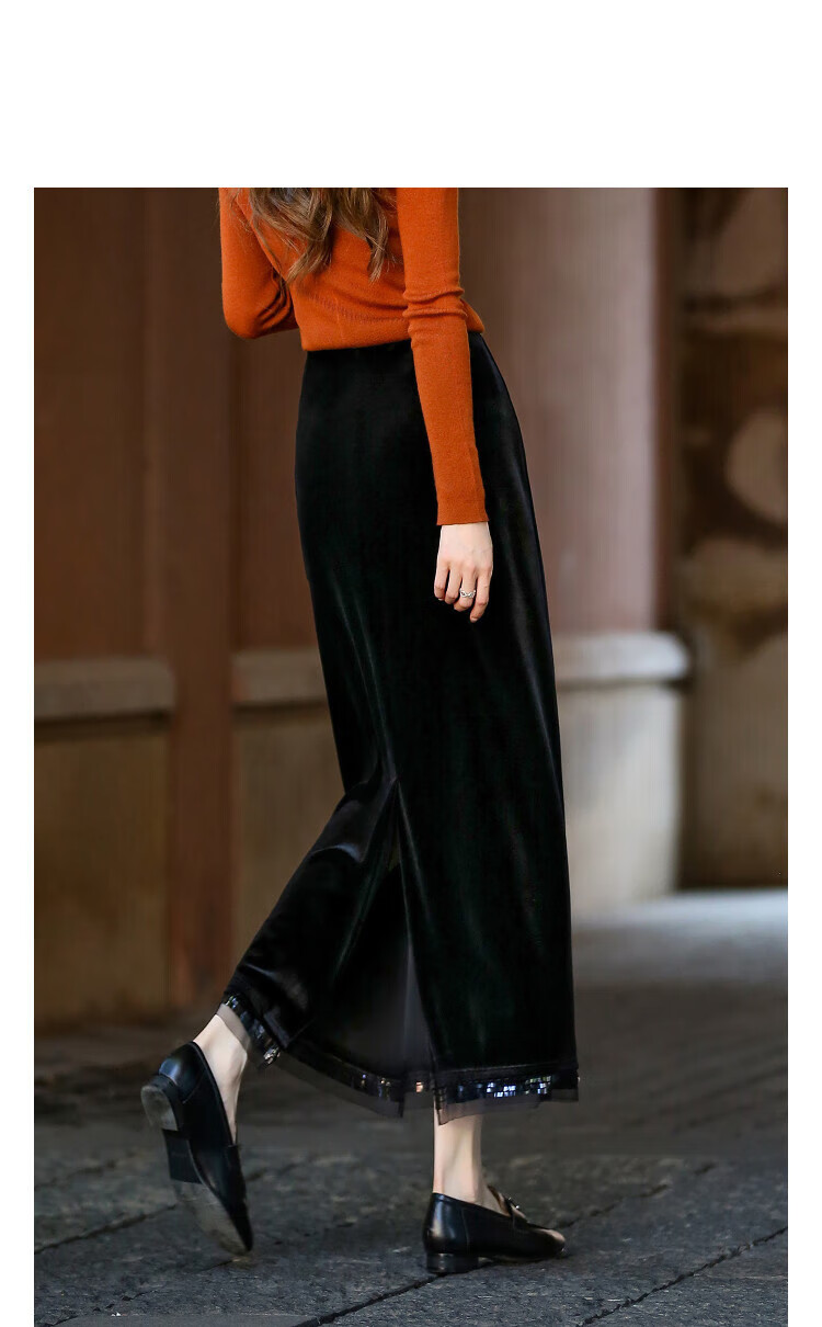 Demana Velvet Whisper Autumn Glossy Sequin Stitching Straight Tibetan Flesh Elastic Waist Small Women's Skirt