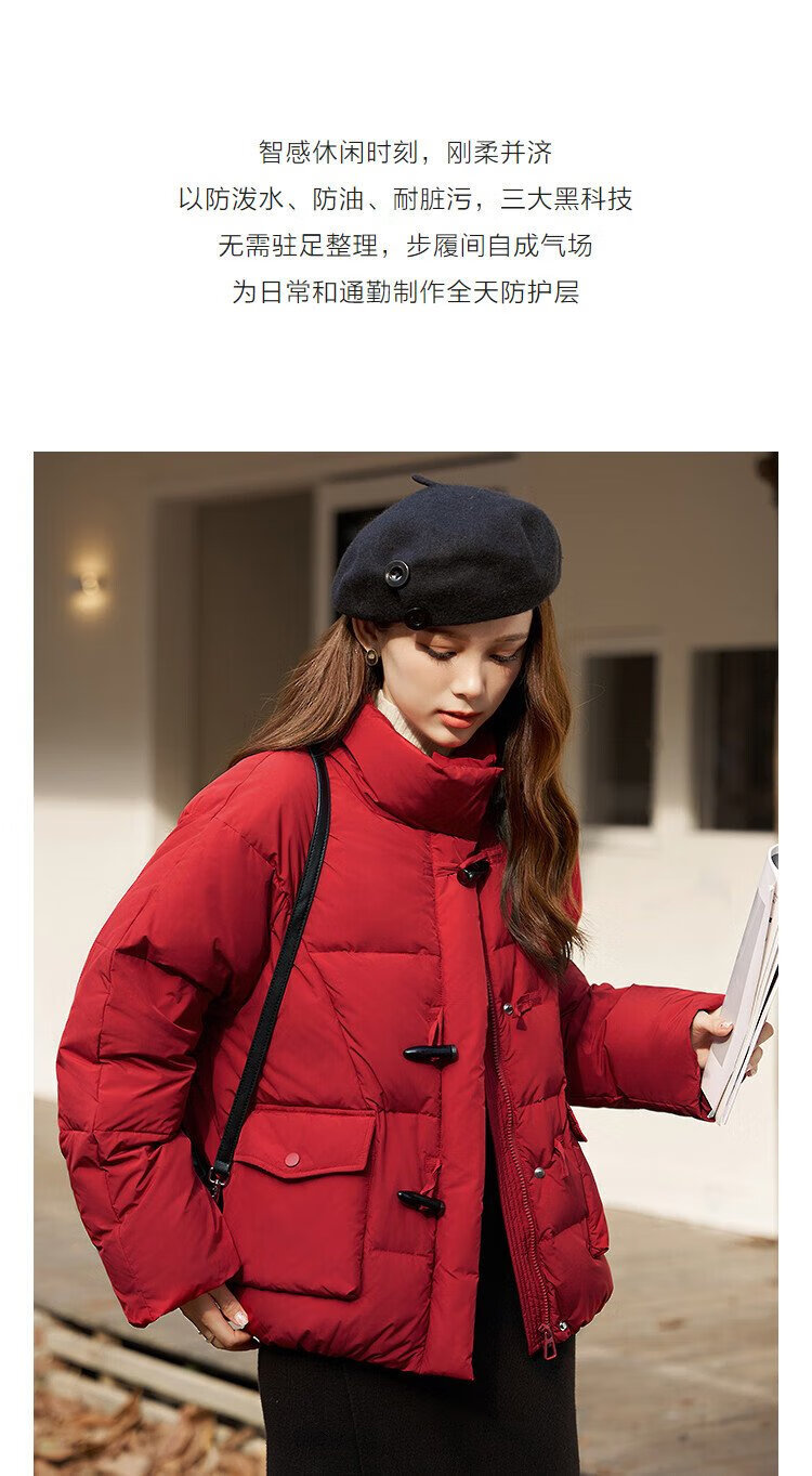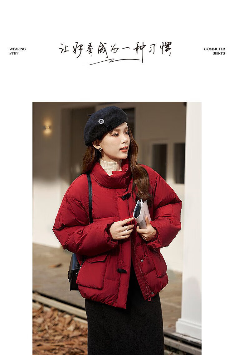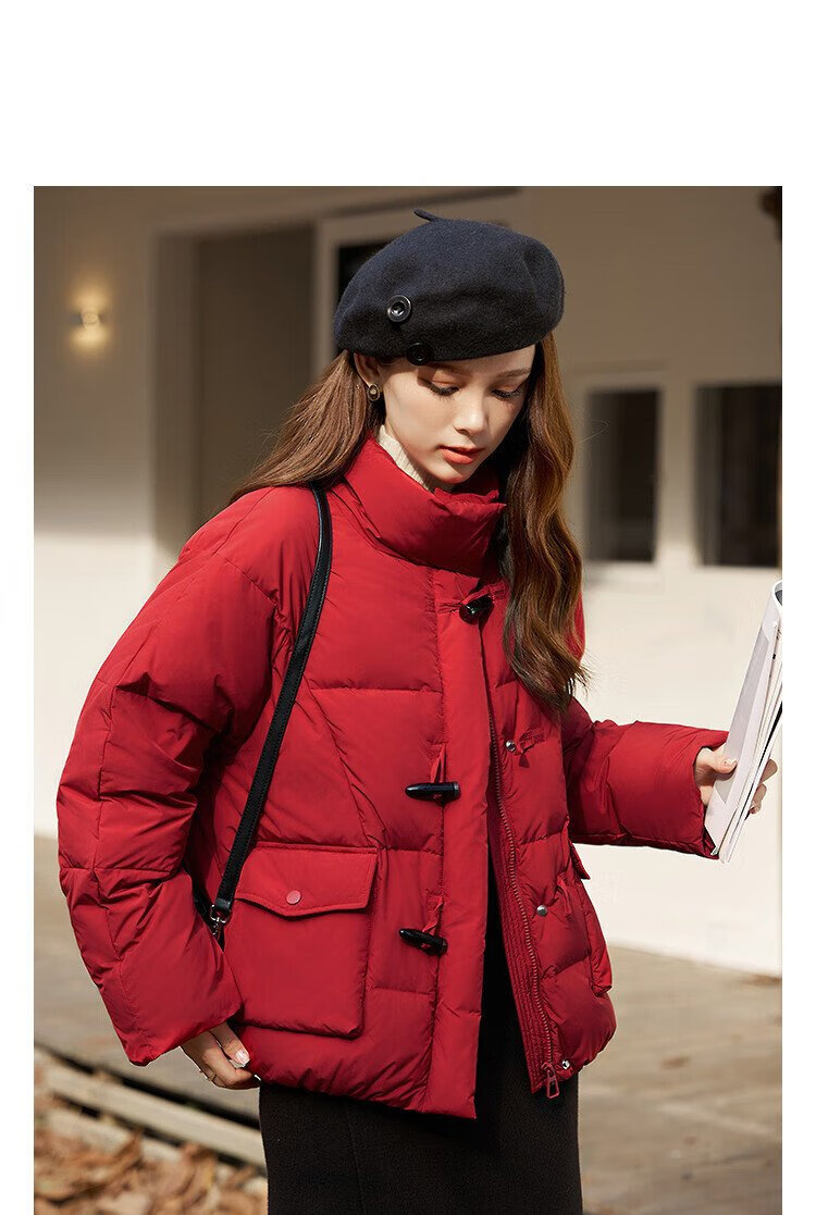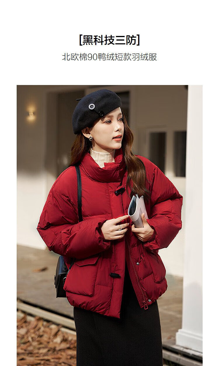 Demana Nordic cotton three-proof winter bread stand collar 90 duck down four-layer craft short horn button women's down jacket