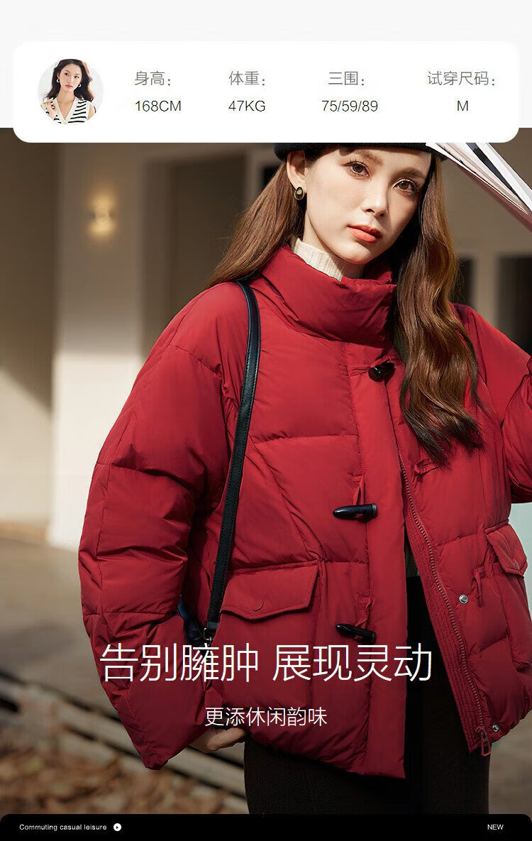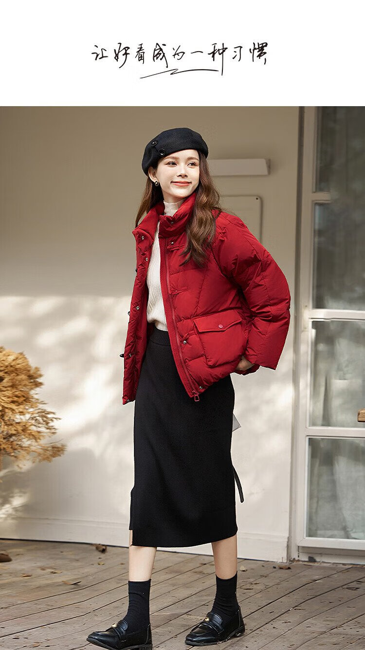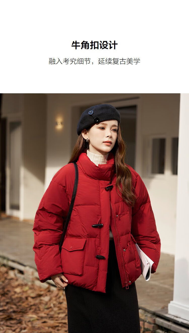 Demana Nordic cotton three-proof winter bread stand collar 90 duck down four-layer craft short horn button women's down jacket