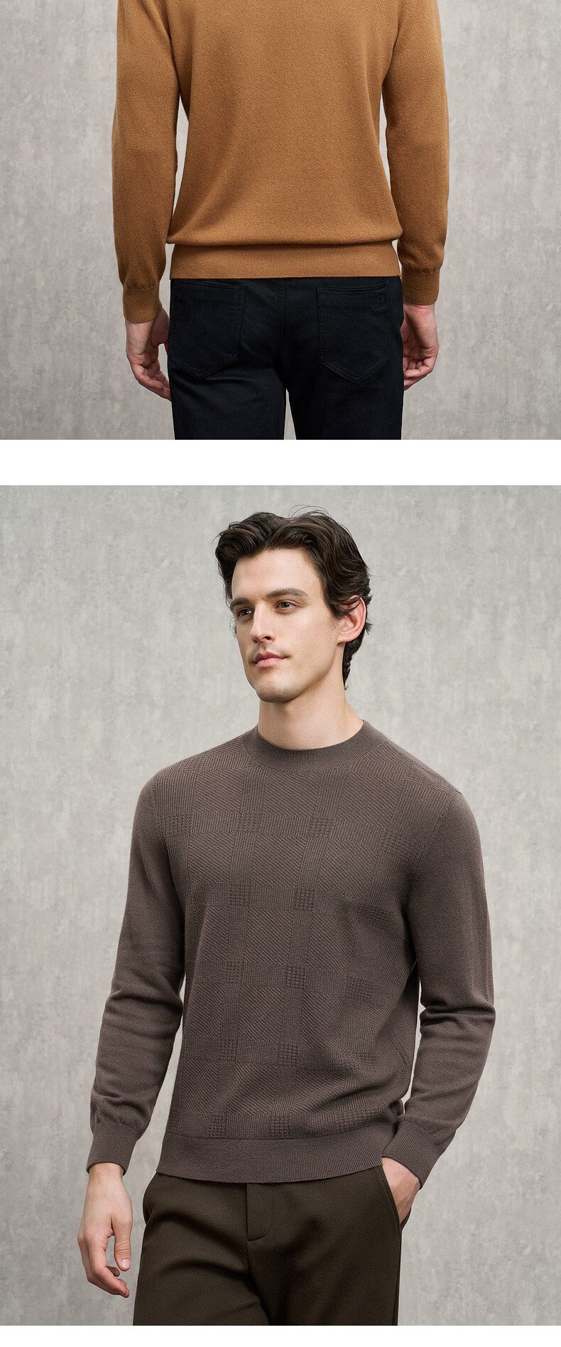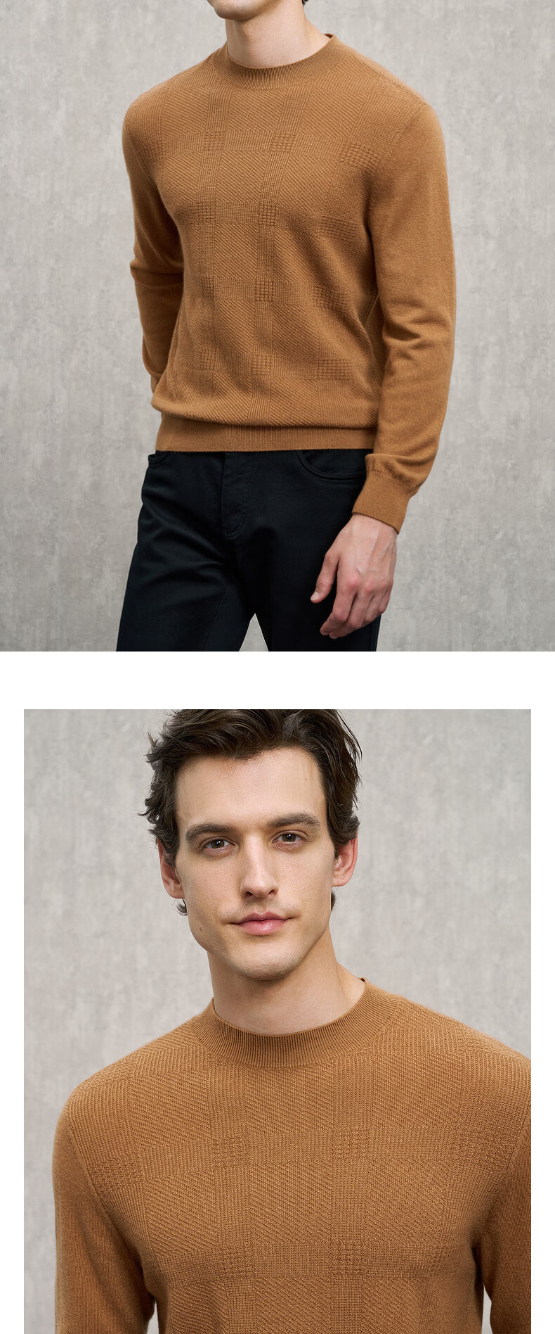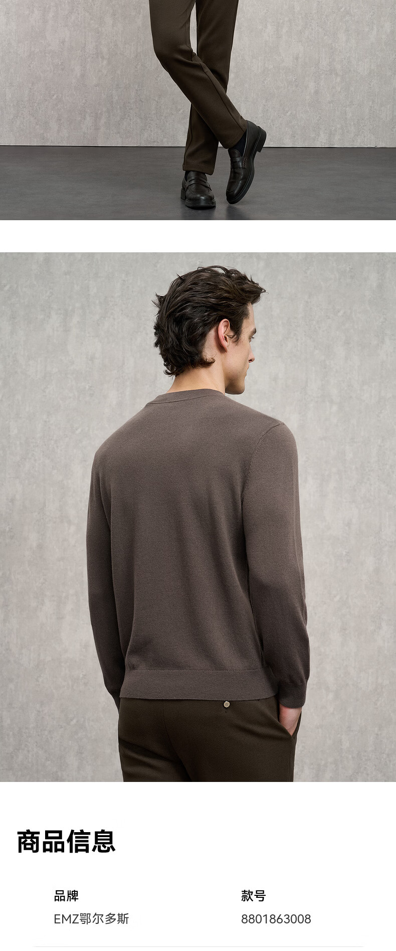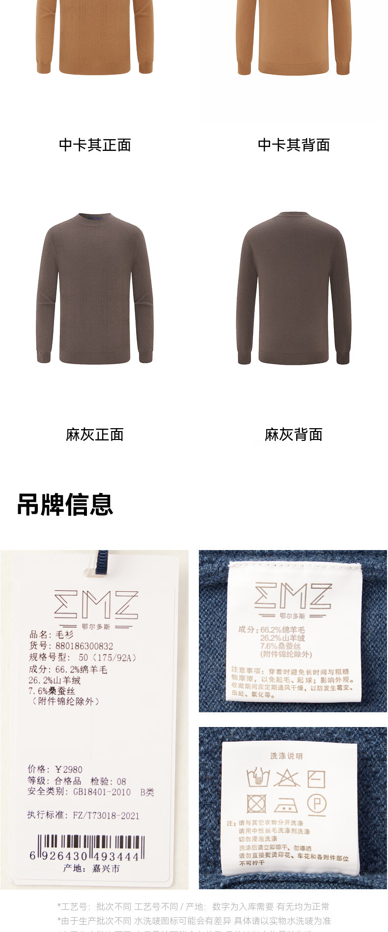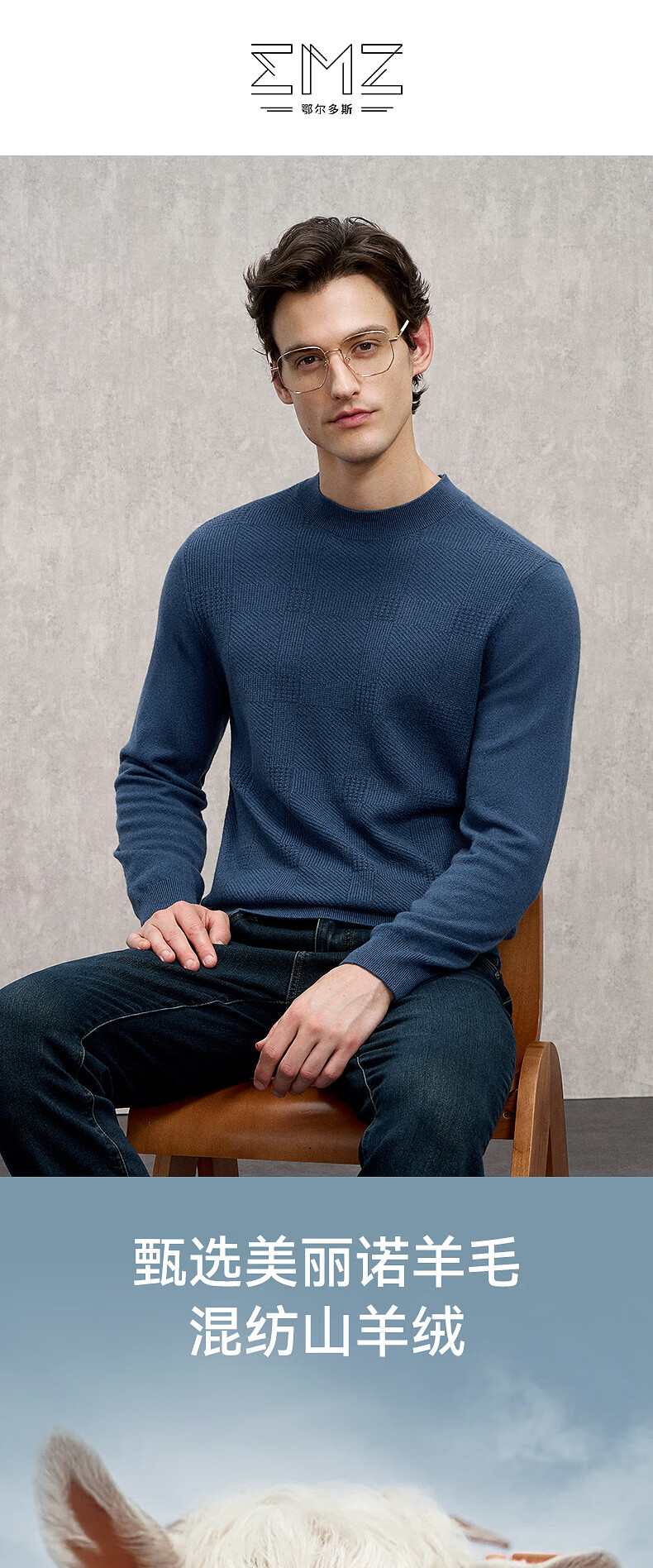 EMZ Ordos wool cashmere mulberry silk men's woolen sweater antibacterial and warm