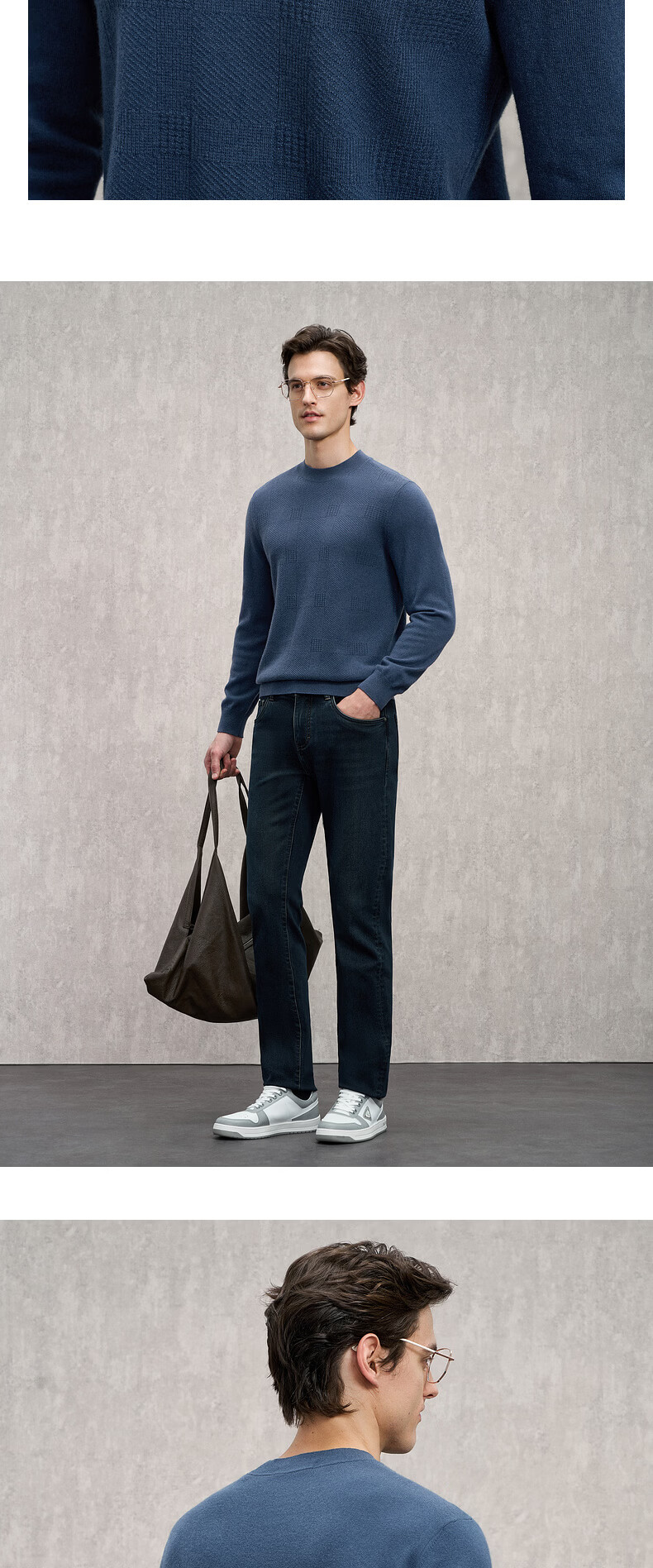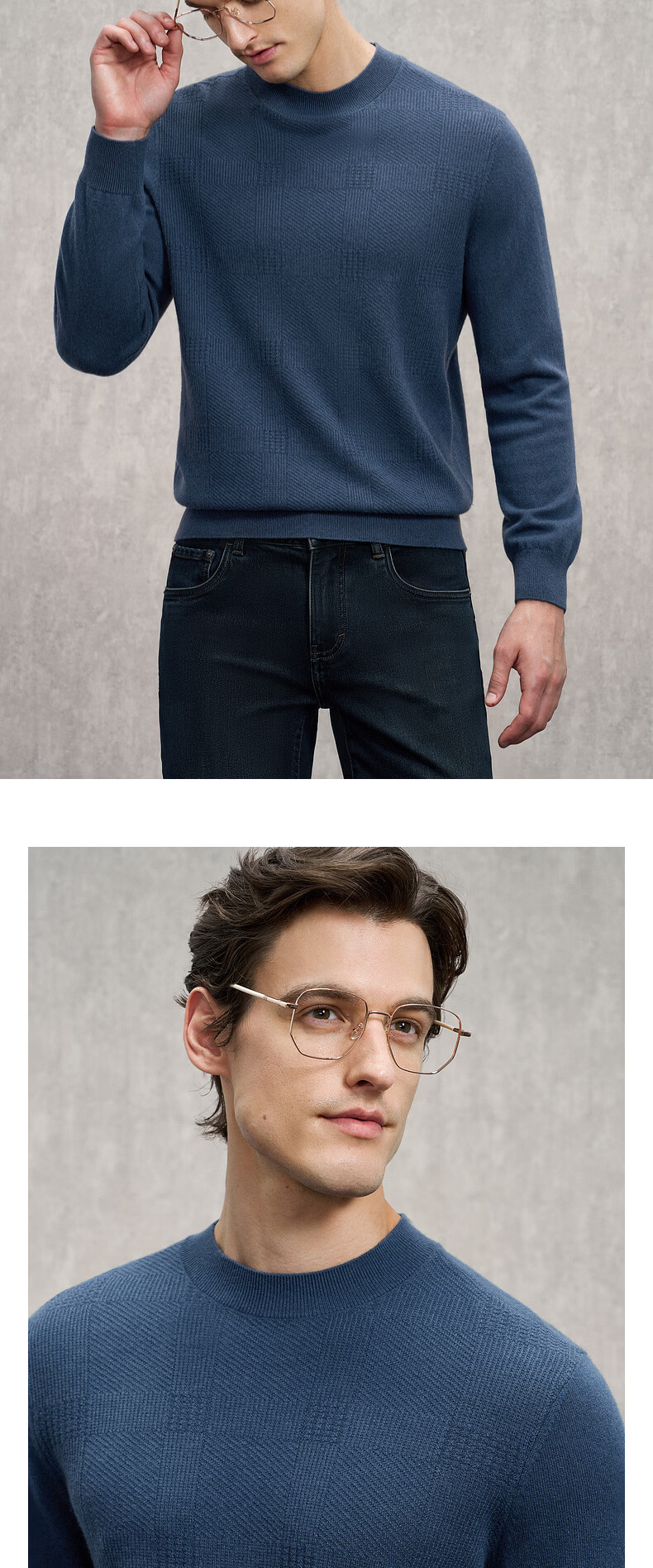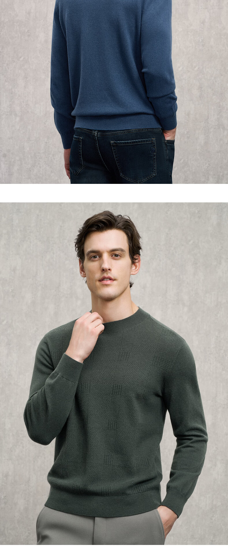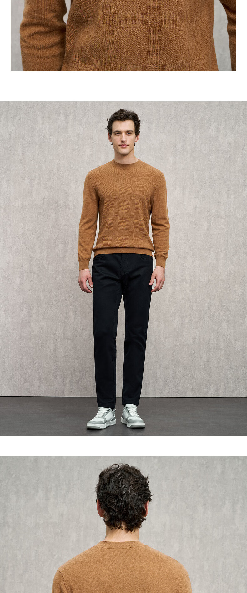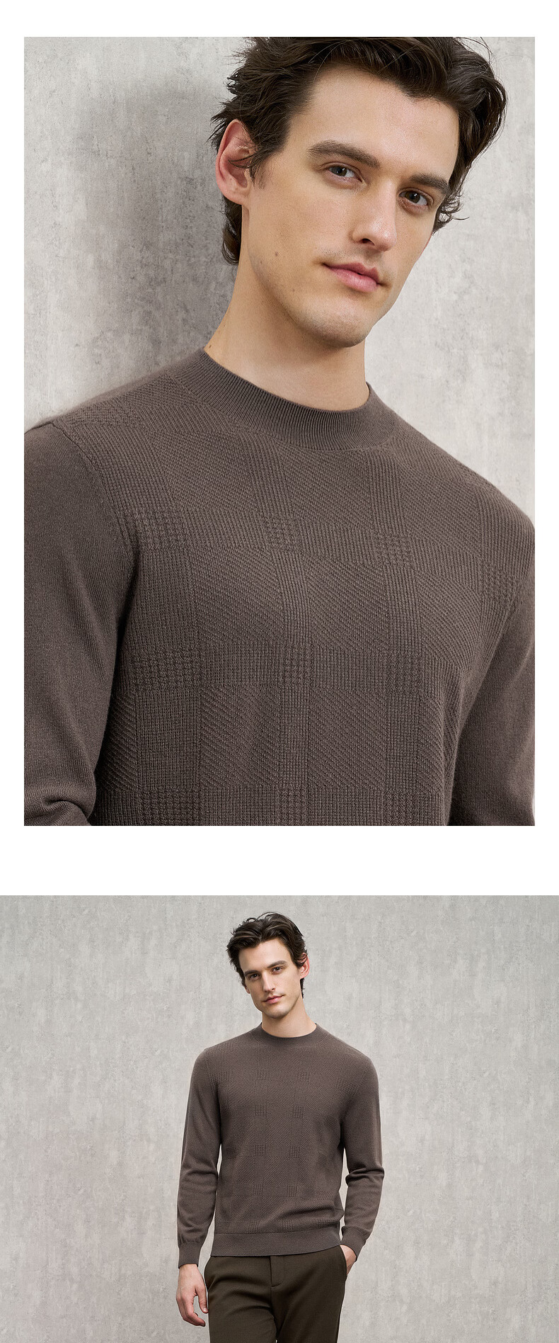 EMZ Ordos wool cashmere mulberry silk men's woolen sweater antibacterial and warm