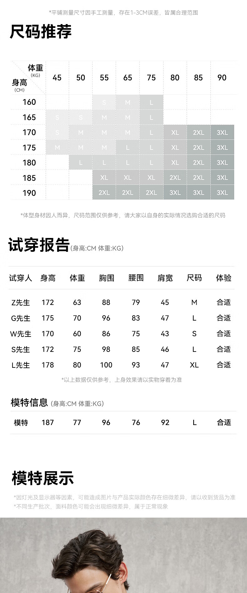 China (cm) 165 / 88-90 170 / 96-98 175 / 108-110 180 / 118-122 185 / 126-130
